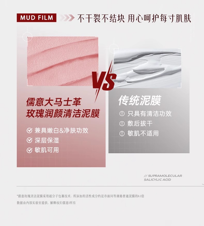 【给毛孔大扫除 大马士革玫瑰】儒意 大马士革玫瑰清洁泥膜 去黑头粉刺深层清洁收缩毛孔美白涂抹面膜 200g