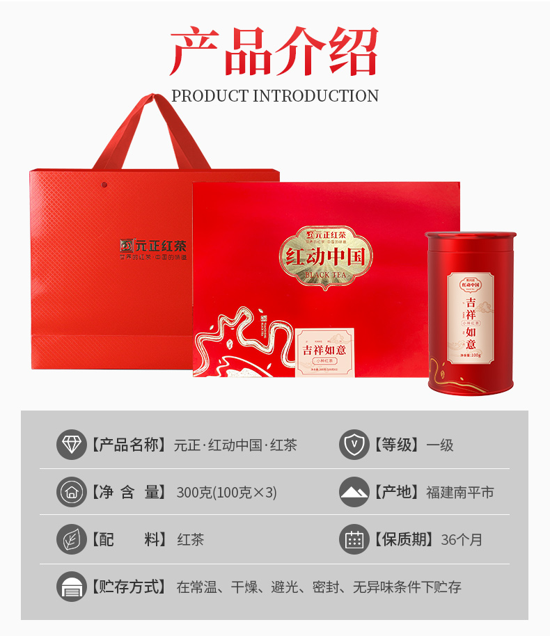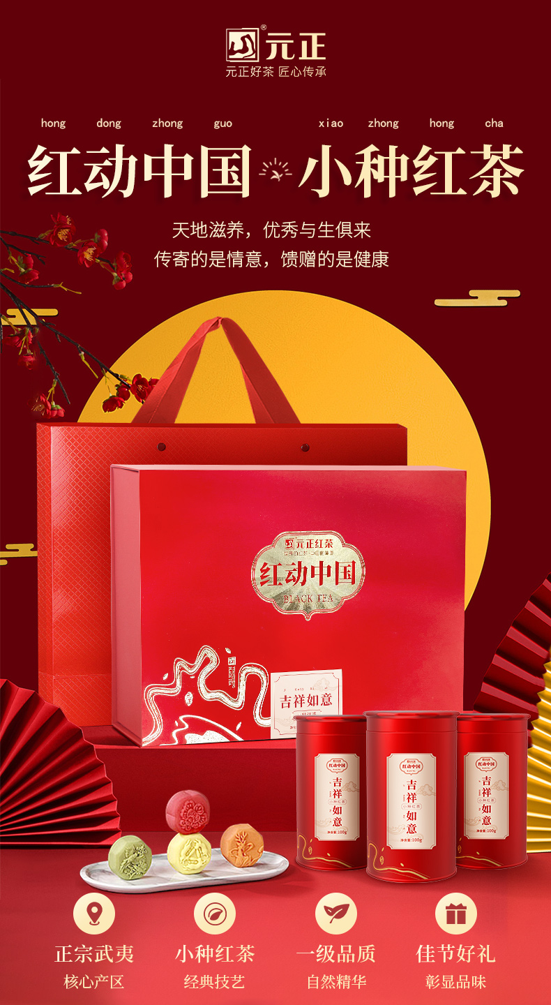 元正 红动中国吉祥如意正山小种红茶茶叶礼盒装300g