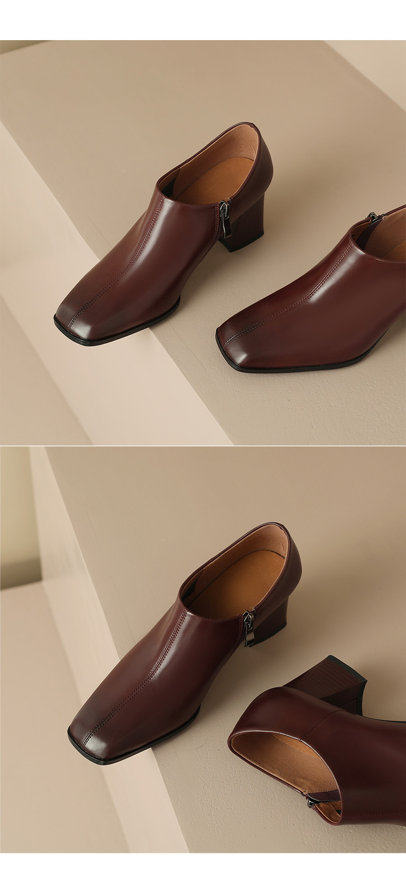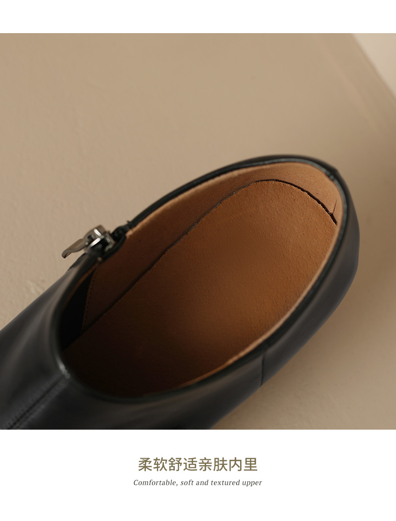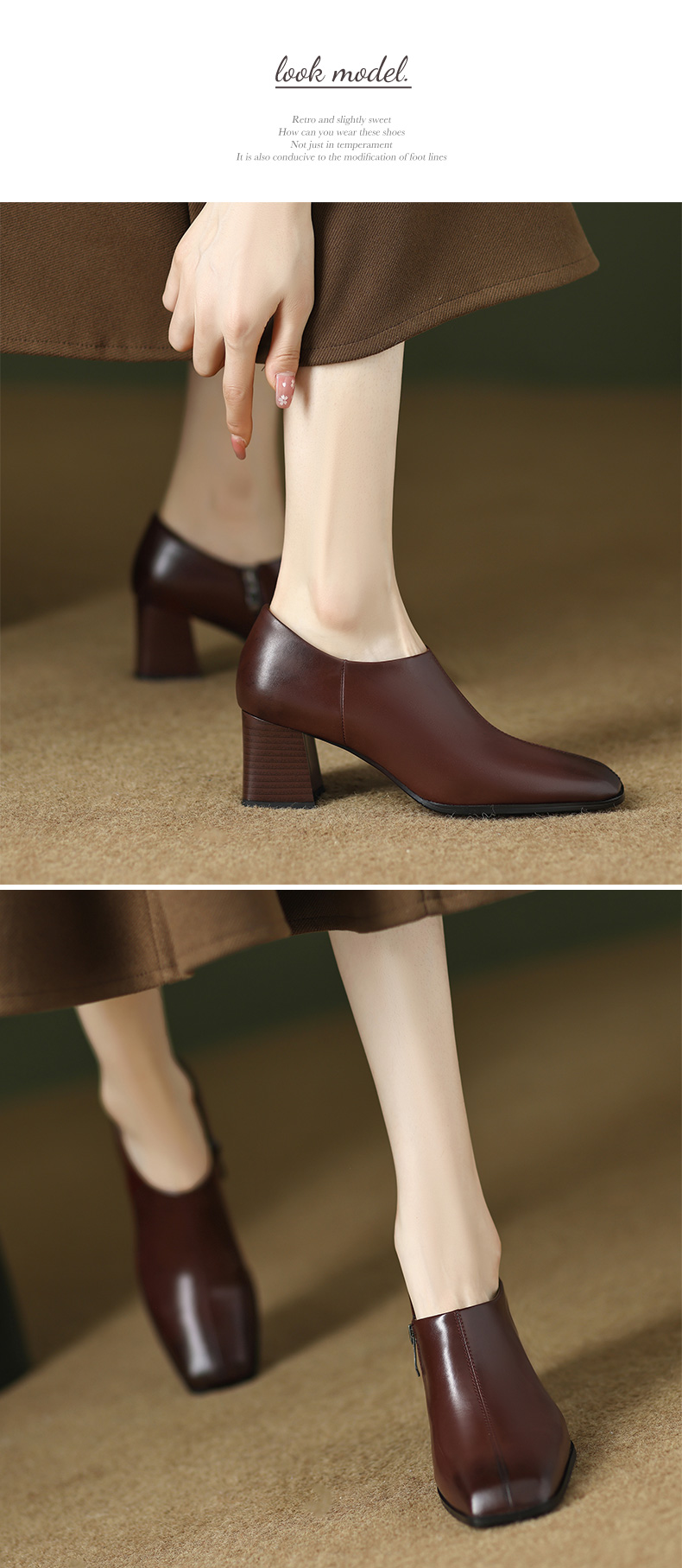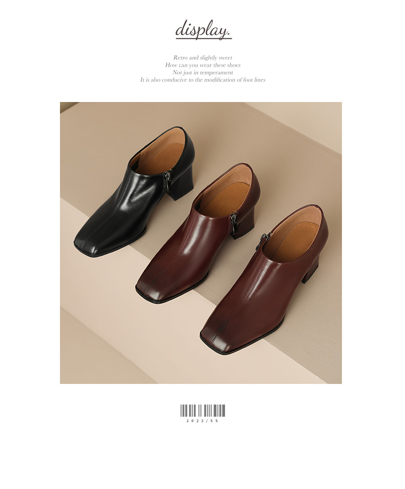 秋冬复古,内侧拉链好进脚里外全皮方头粗跟裸靴【预售7天】DB-M5372