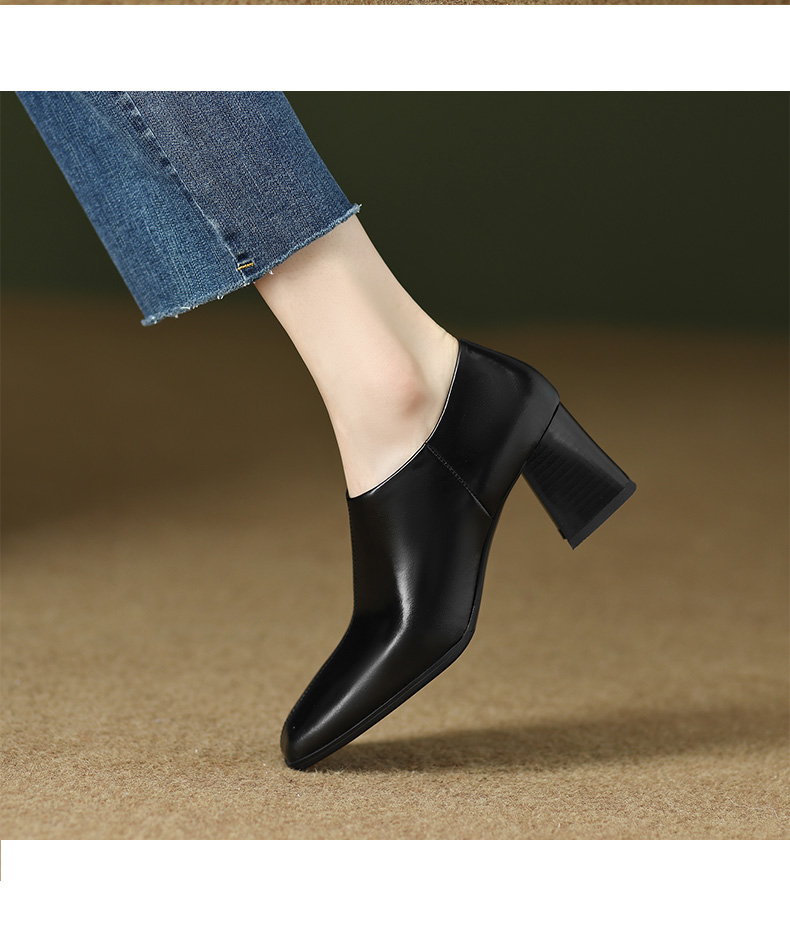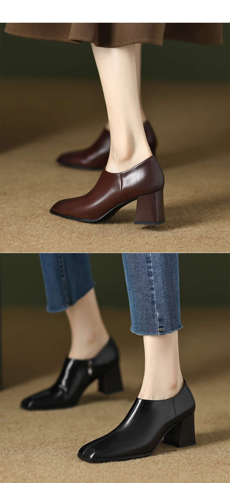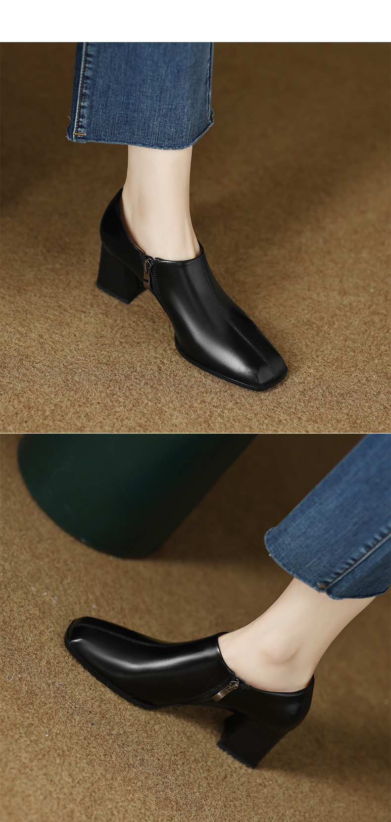 秋冬复古,内侧拉链好进脚里外全皮方头粗跟裸靴【预售7天】DB-M5372
