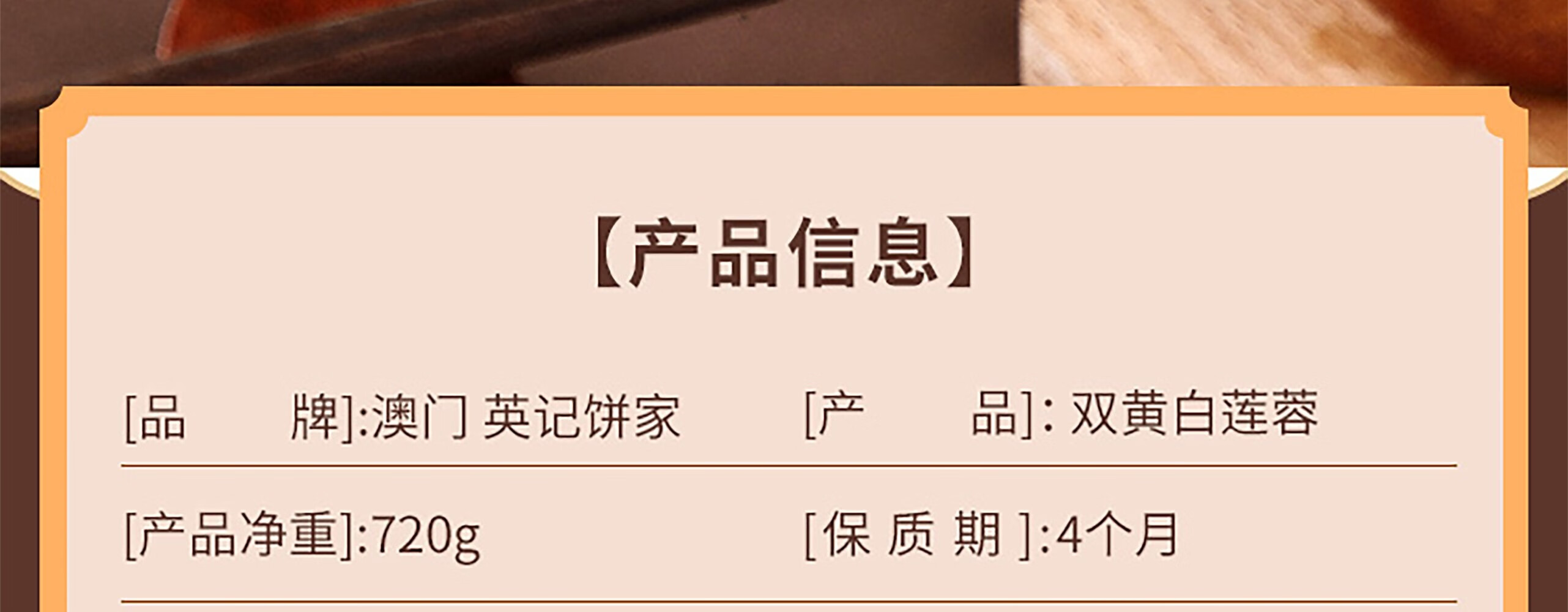 【一件包邮】澳门英记双黄白莲蓉月饼720g一盒四块满满中秋祝福 甘肃/青海/内蒙古/新疆/西藏/宁夏/海南/港澳台不发货
