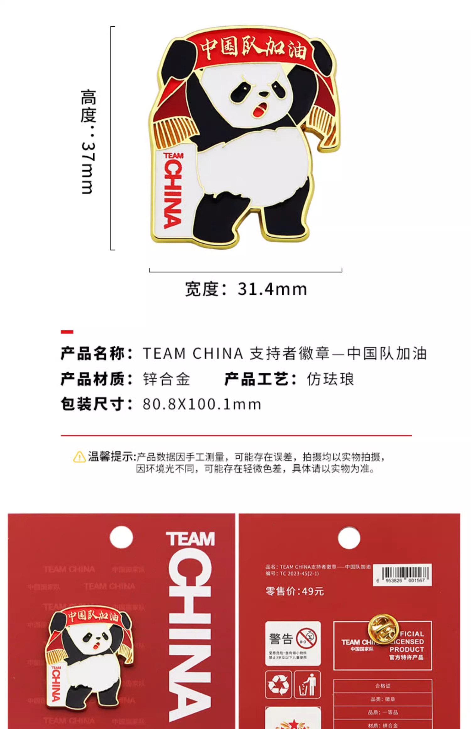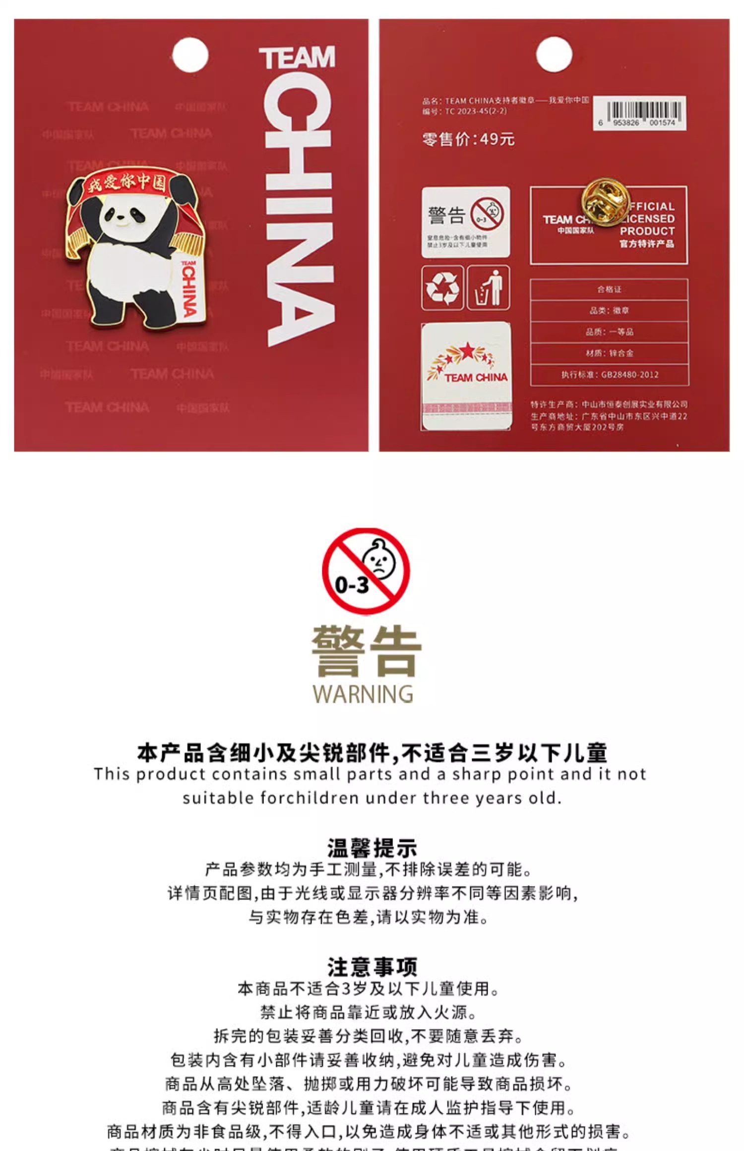【正版授权】中国国家队·加油/我爱你中国纪念徽章(明星同款)·金属徽章