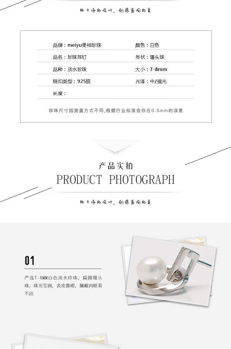 美裕 【镜中水月】银925淡水珍珠耳钉7-8mm白101781
