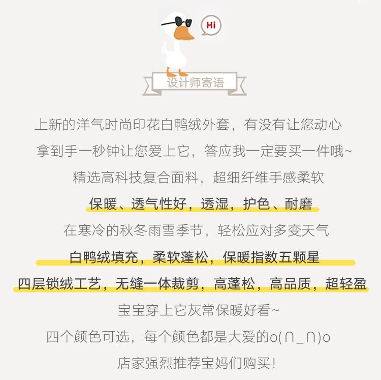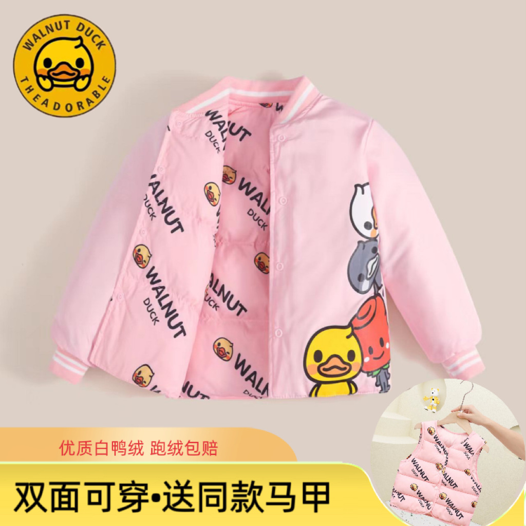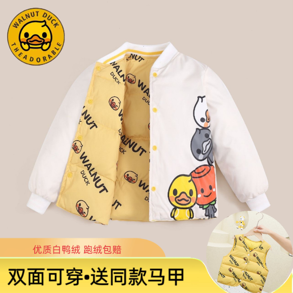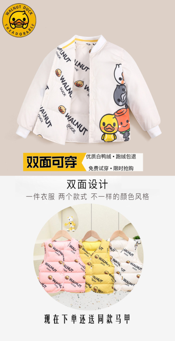 秋冬新款【小黄鸭儿童羽绒服】双面穿白鸭绒宝宝外套 加厚保暖休闲外套 3色可选