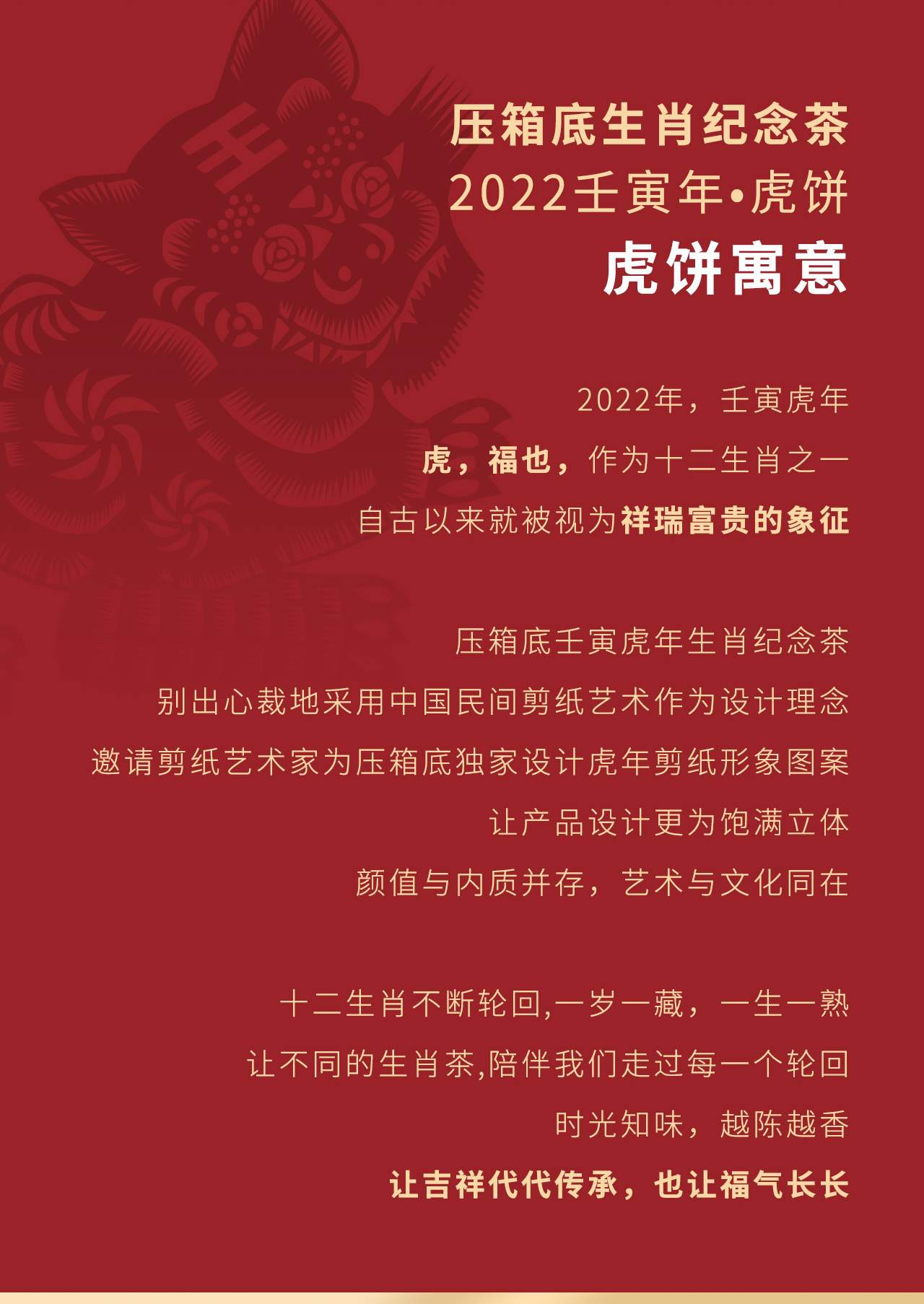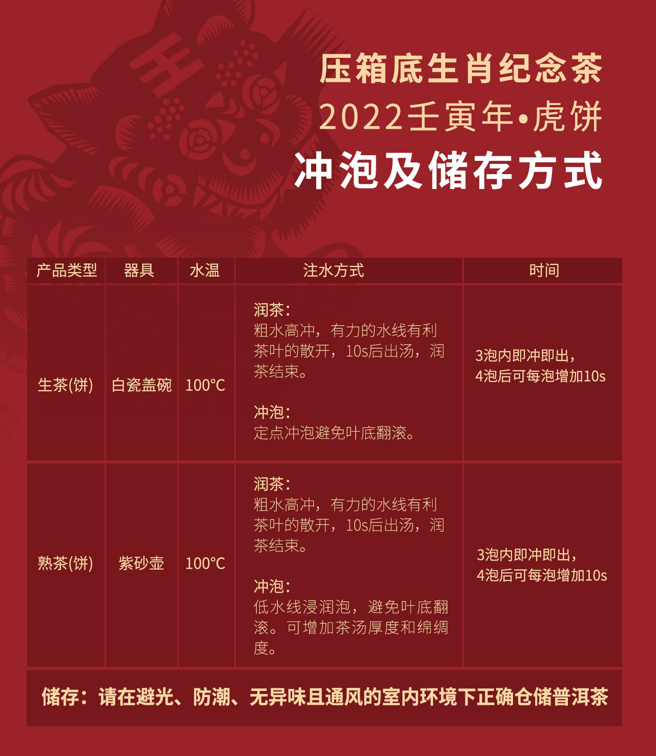 压箱底 2022壬寅虎年纪念茶 普洱熟茶 饼茶