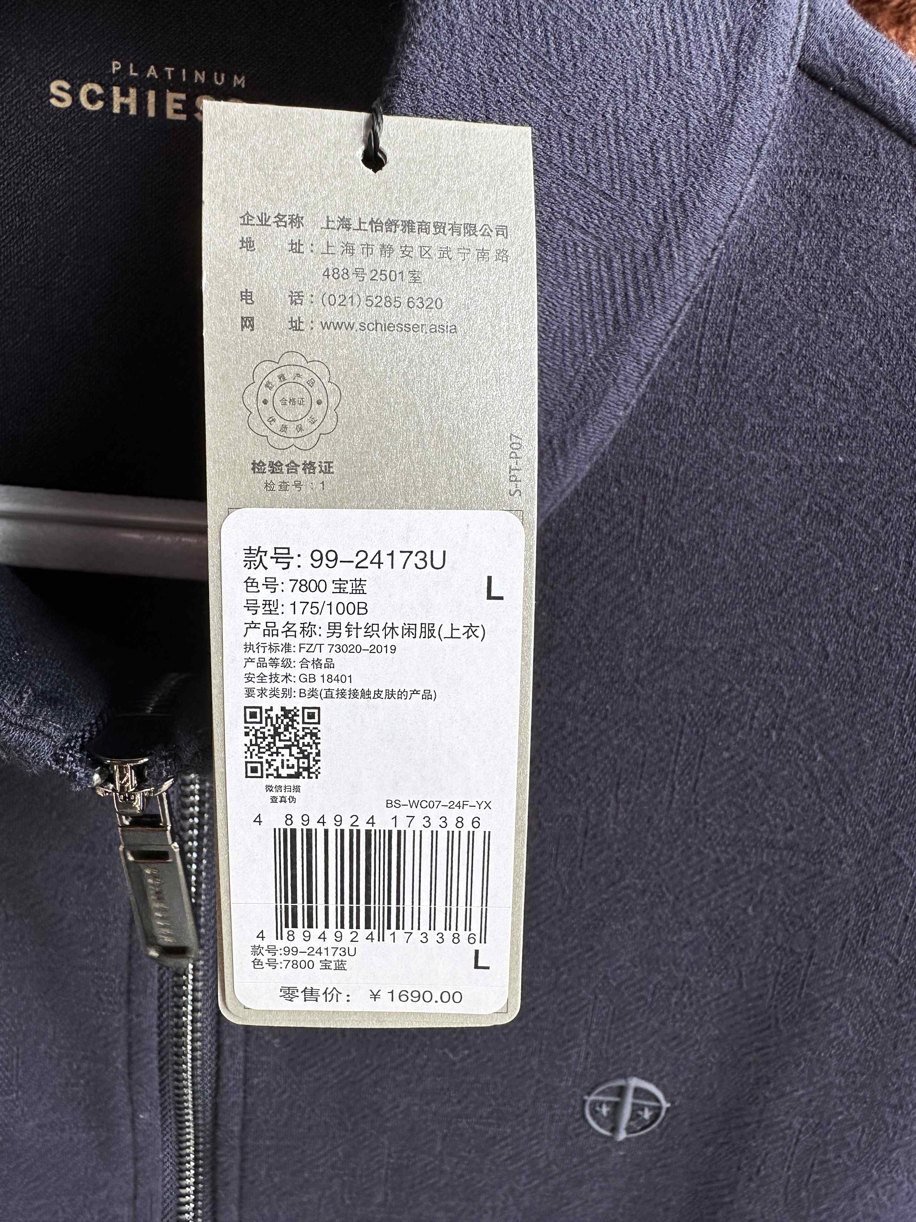 【棉混纺】SCHIESSER德国舒雅高端铂雅男士立领外套99/24173U9可点击详情页最下方链接选择配套裤子)