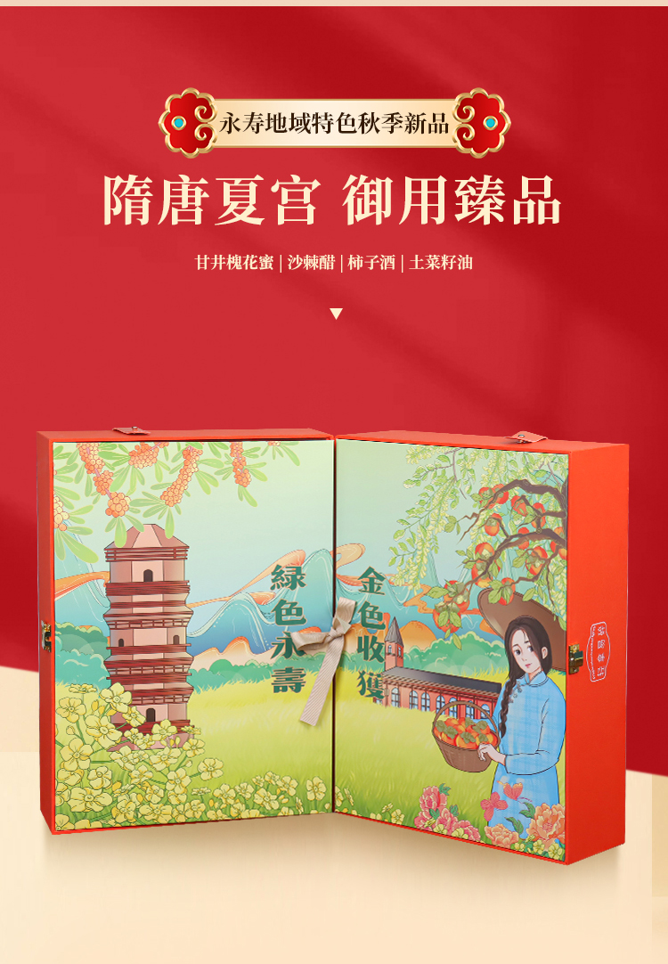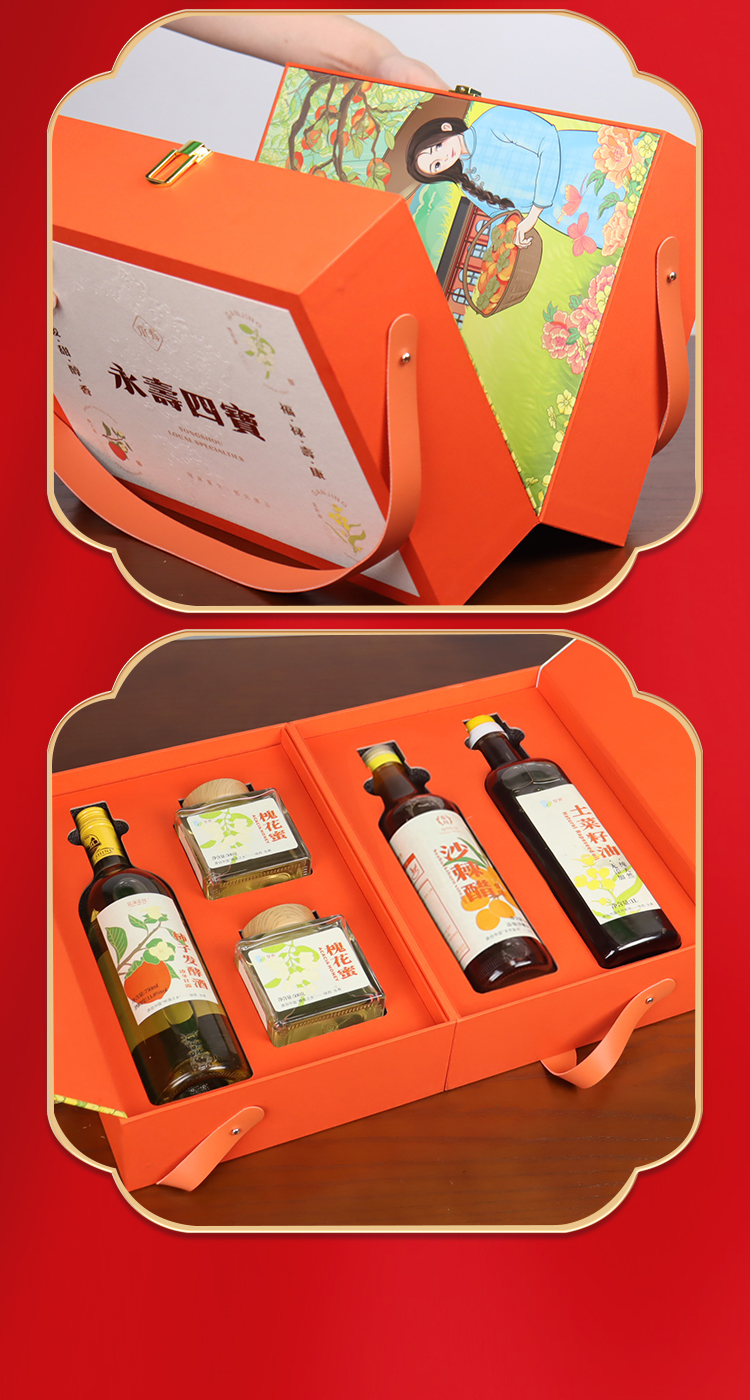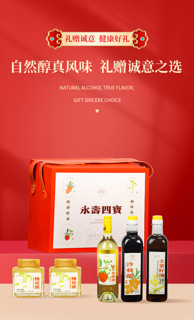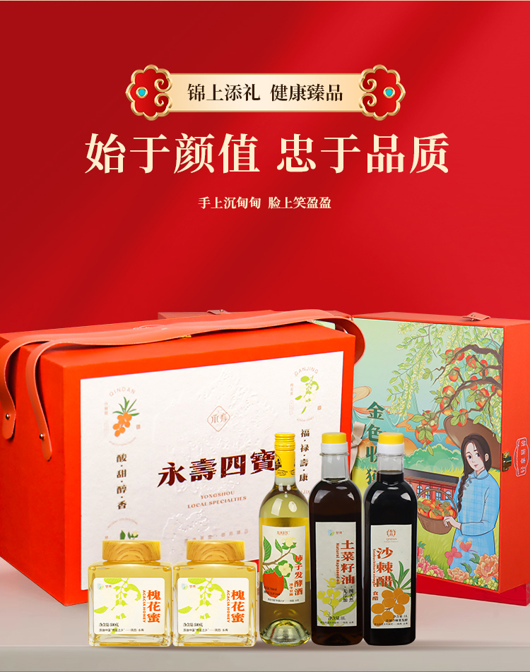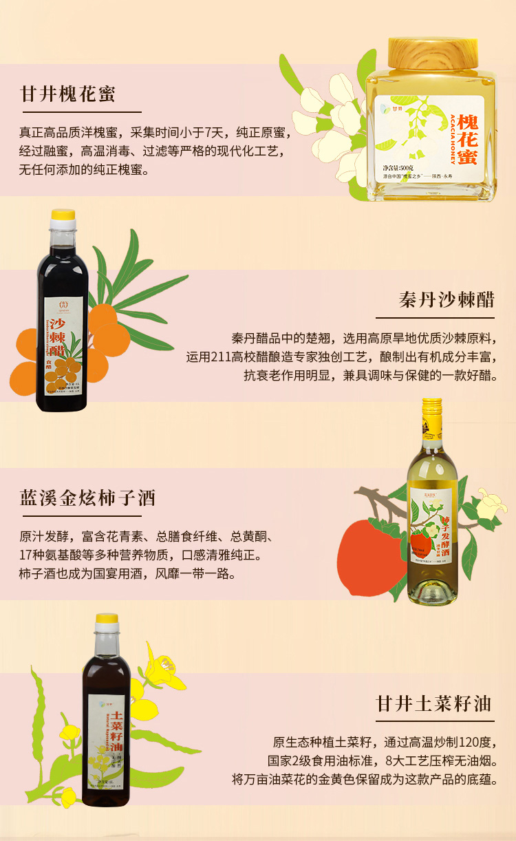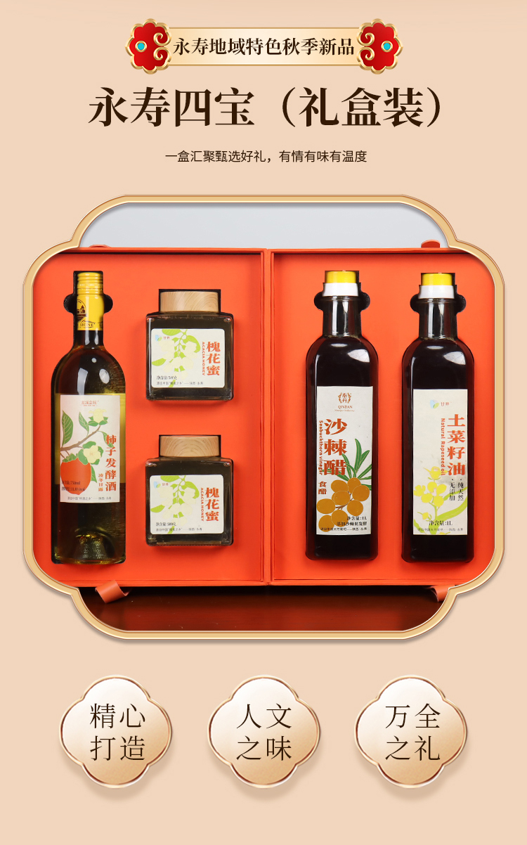 【永寿四宝】永寿四宝蓝溪金炫柿子酒750ml槐花蜜500g*2沙棘醋1L土菜籽油1L
