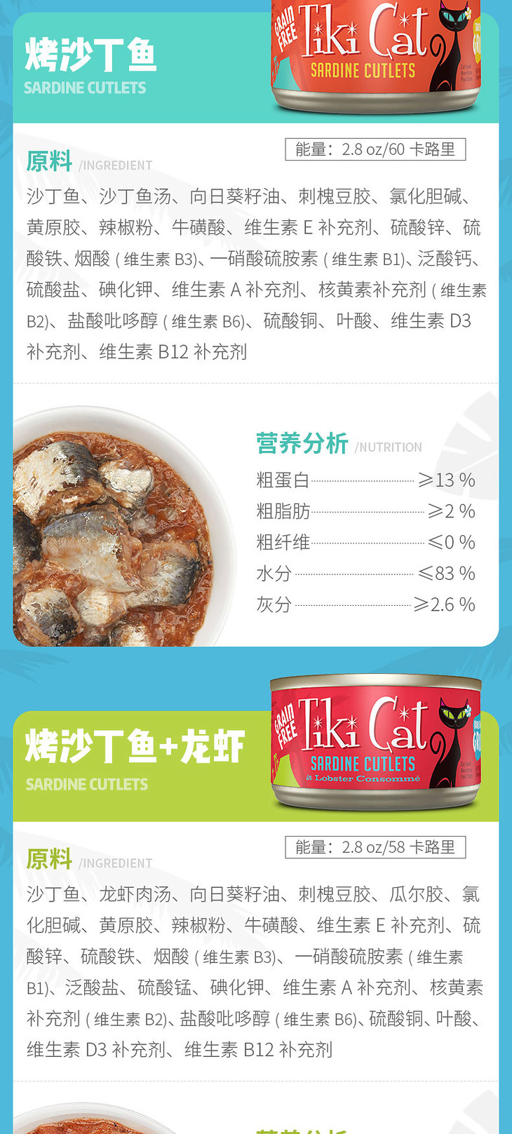 TikiCat 烧烤系列无谷全猫主食罐 80g×6罐