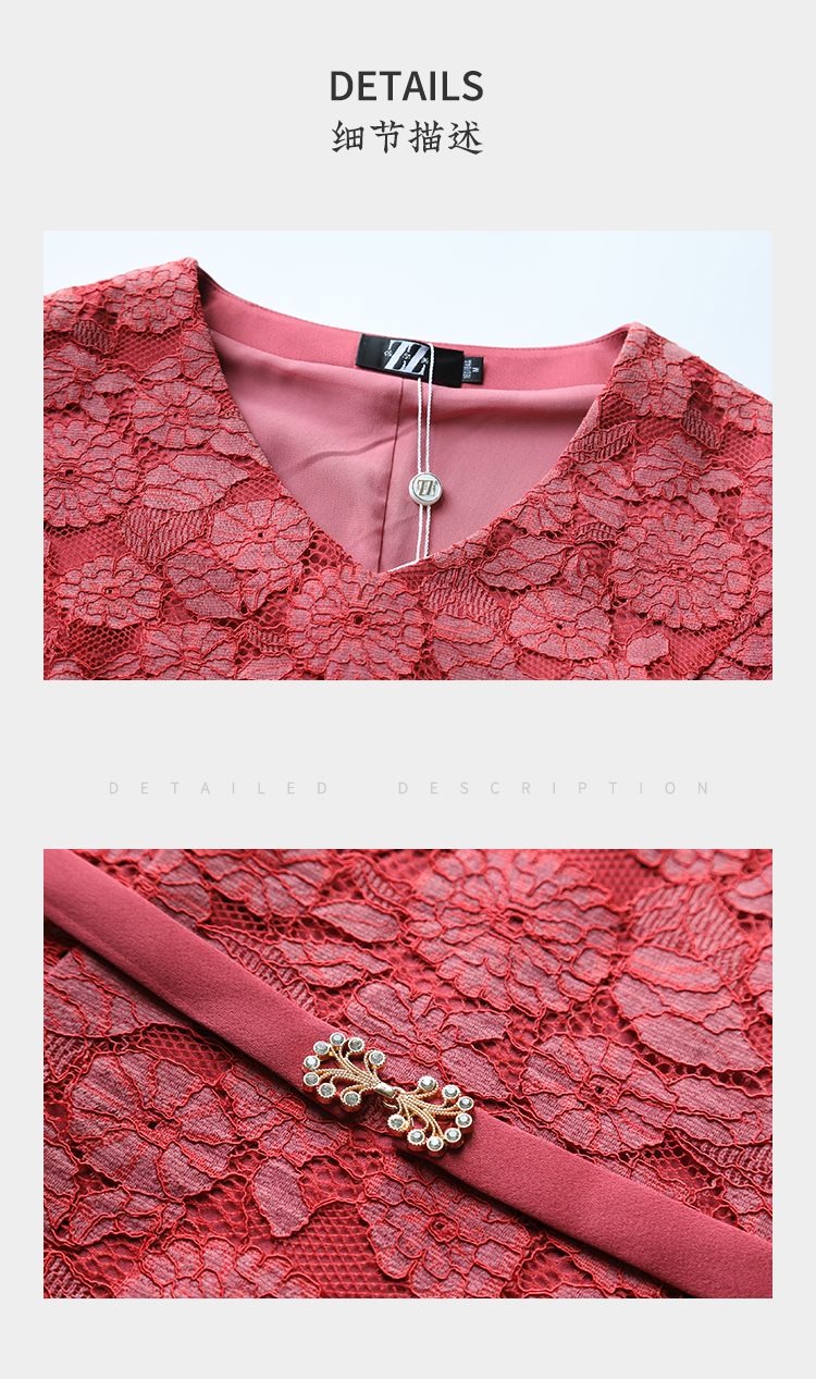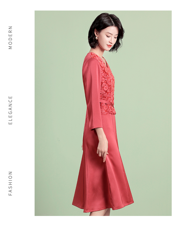 佐尔美佐尔美秋装女新款假两件蕾丝碎花修身连衣裙E73LL22