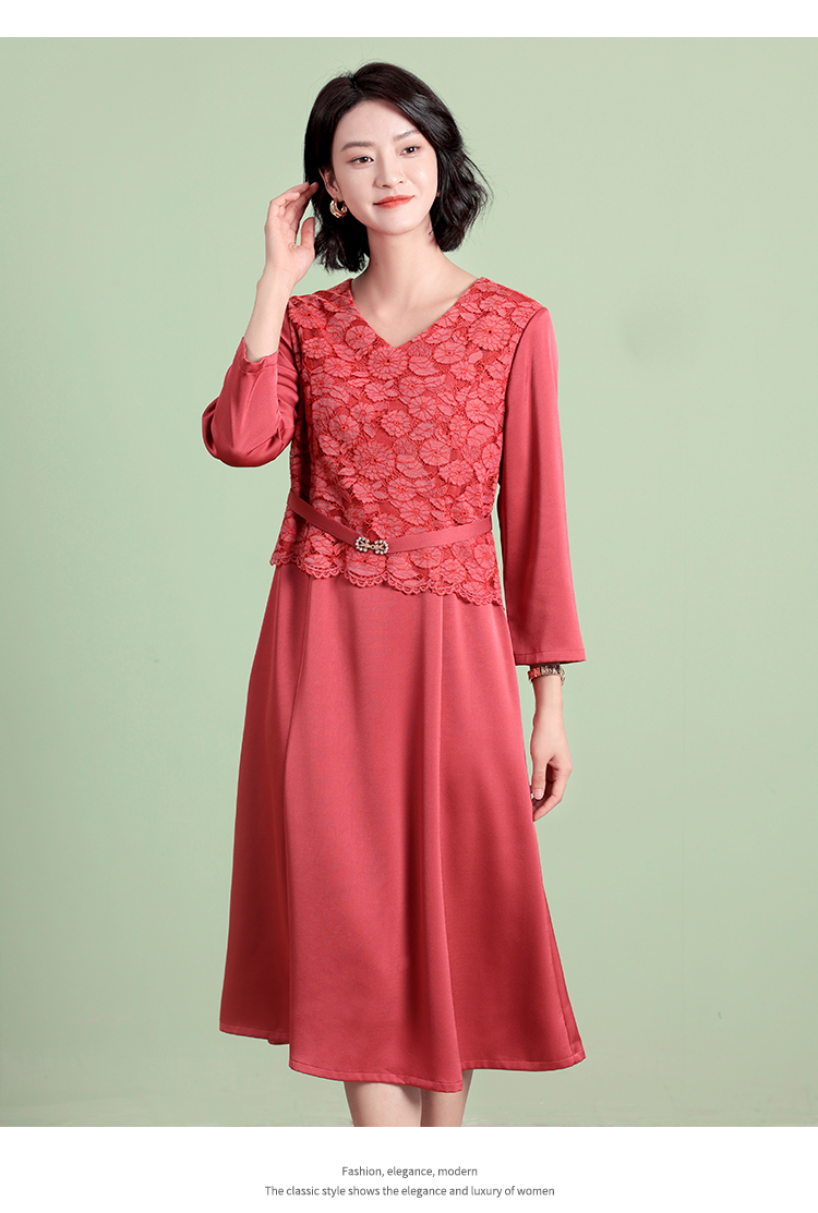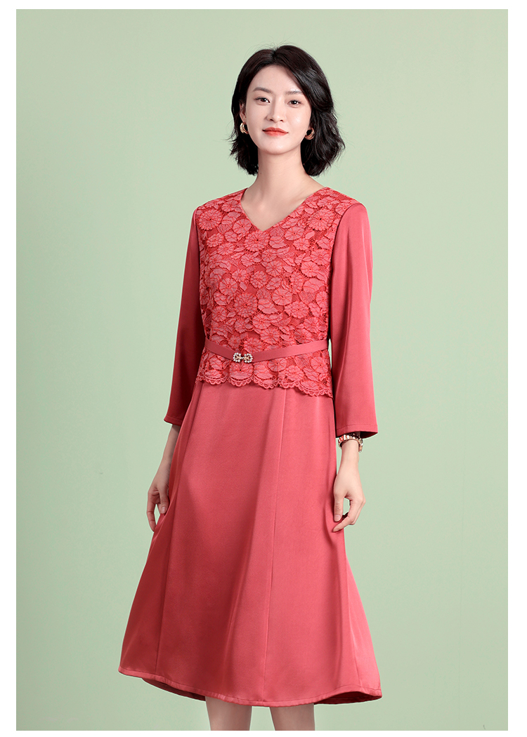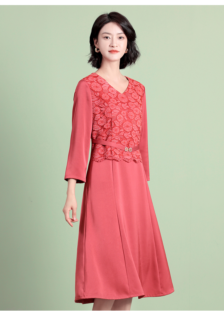 佐尔美秋季新款 优雅气质V领蕾丝连衣裙女E23LL31