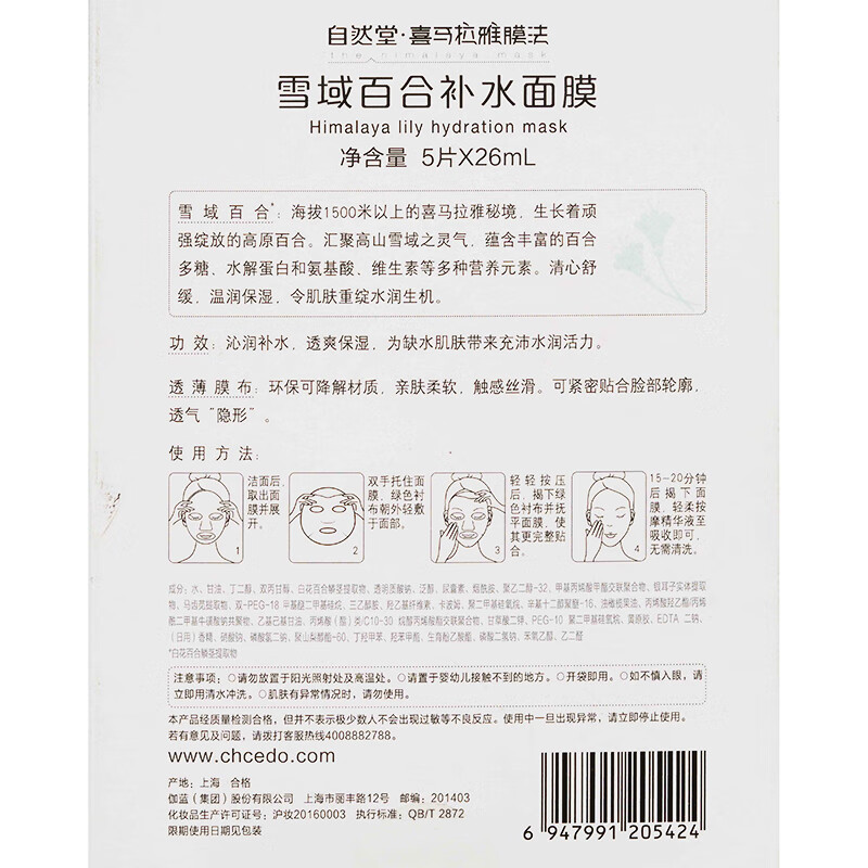 自然堂喜马拉雅雪域百合补水面膜26ml*5片/盒*3