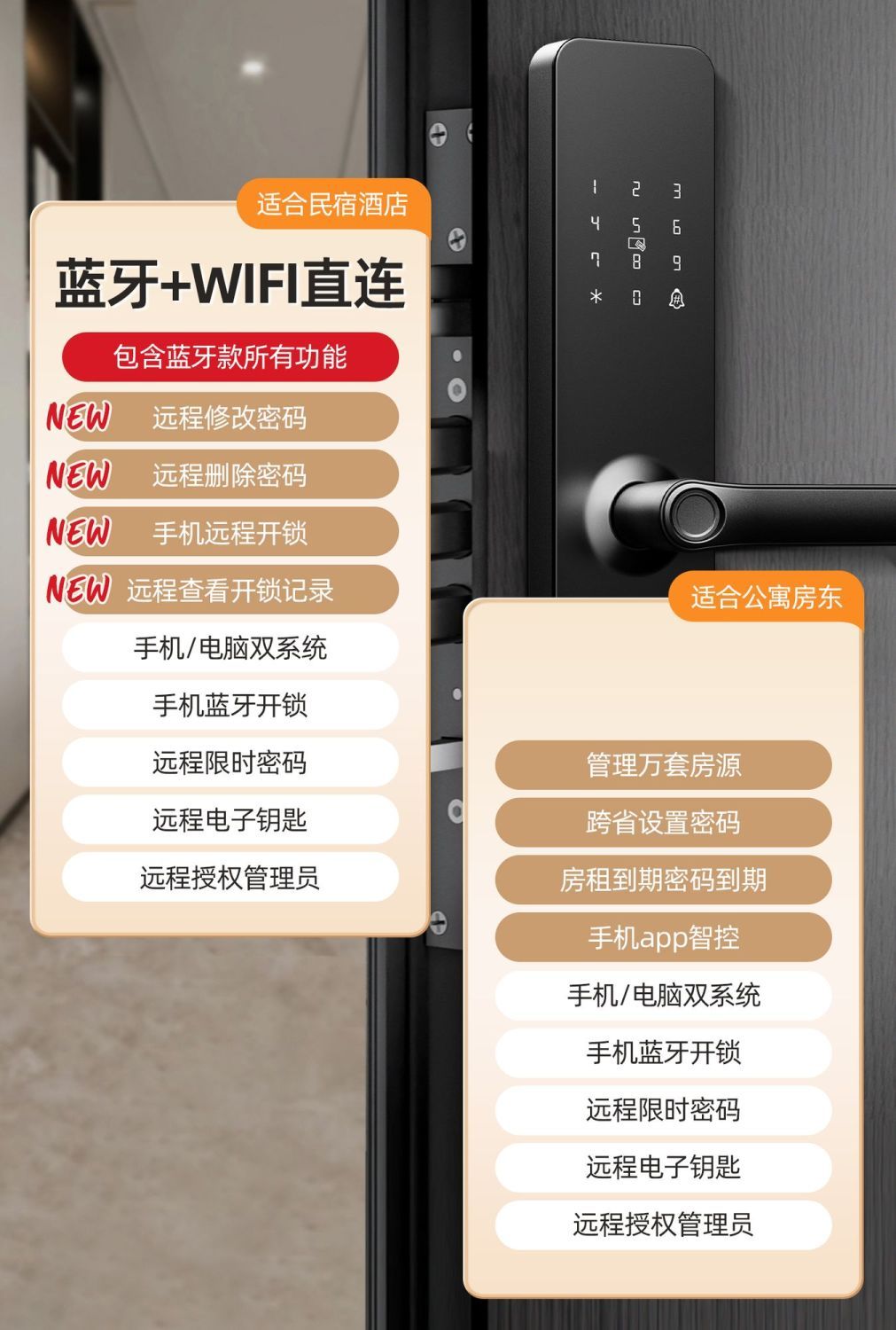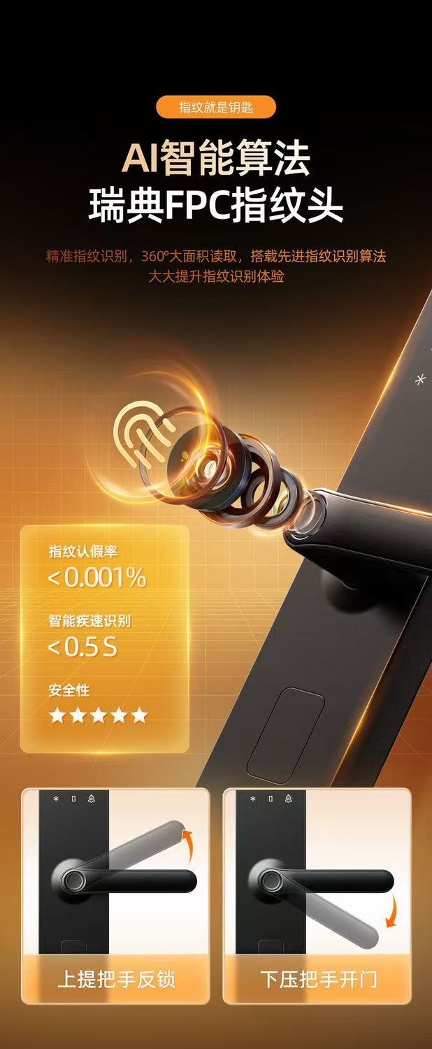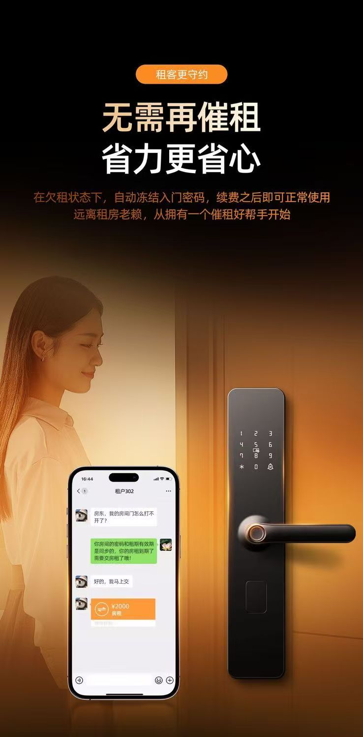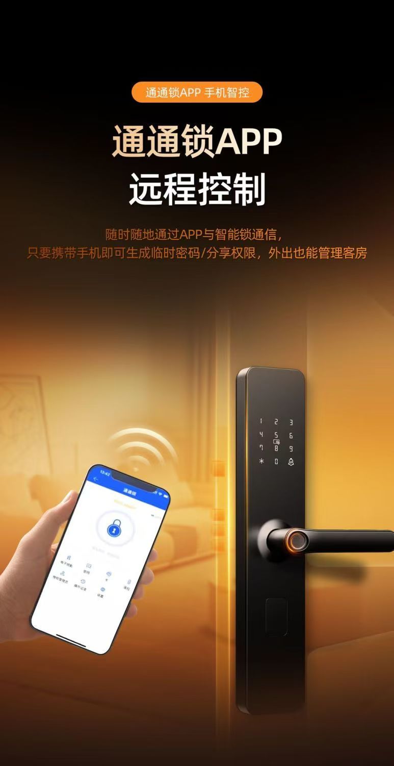 云漫民宿酒店智能锁指纹远程密码锁门锁宾馆出租房防盗木门电子通通锁 公寓蓝牙WiFi款带指纹 一部手机即可