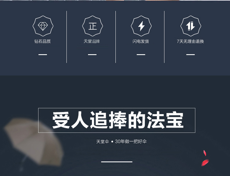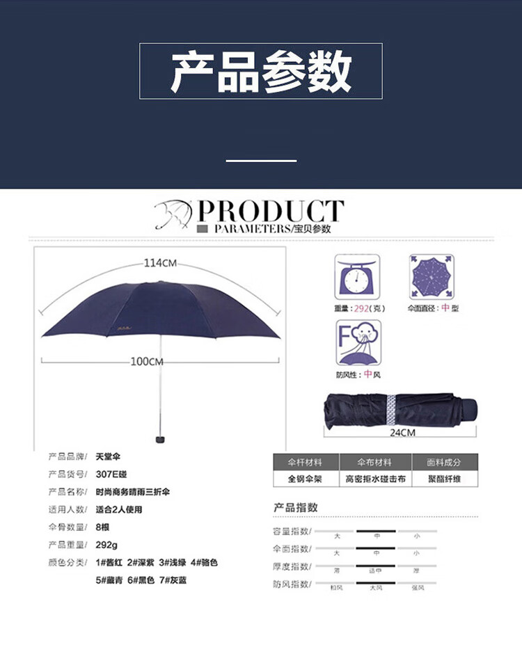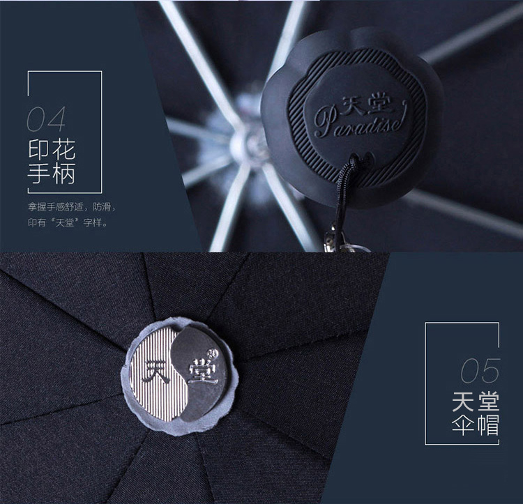 天堂伞 307E碰,时尚商务三折8骨晴雨两用伞
