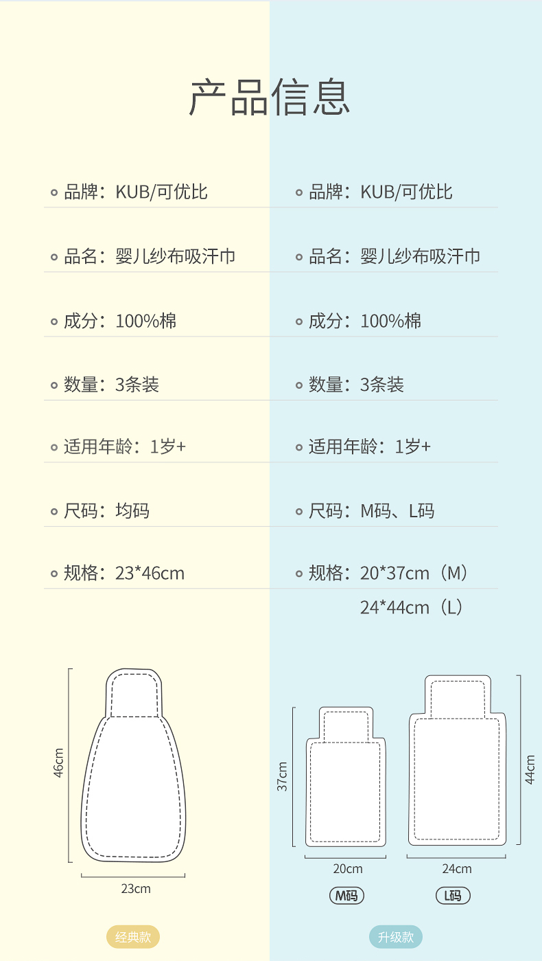 【49选5专区】可优比 汗巾儿童纯棉 隔汗巾婴儿宝宝汗巾垫背全棉幼儿园吸汗巾