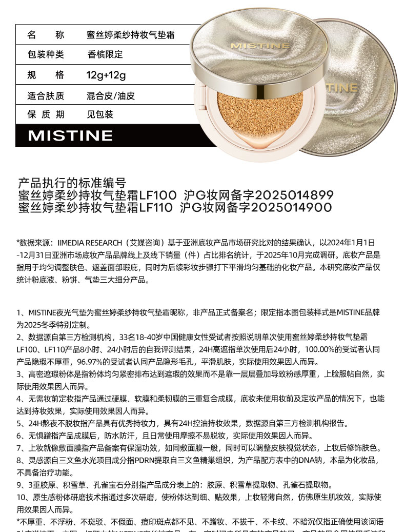 蜜丝婷柔纱持妆气垫霜(香槟限定)气垫-纪念日百货门店同款169394017