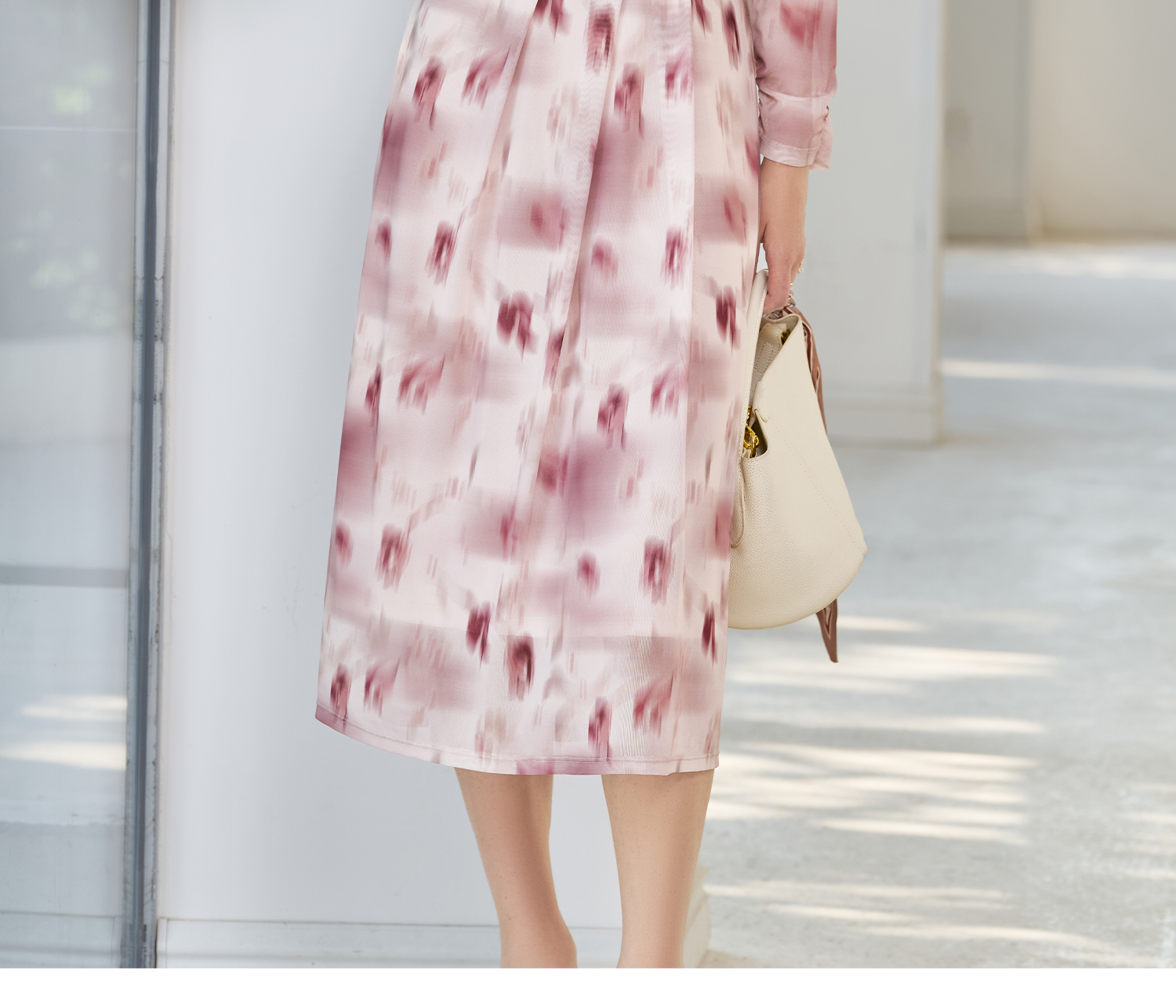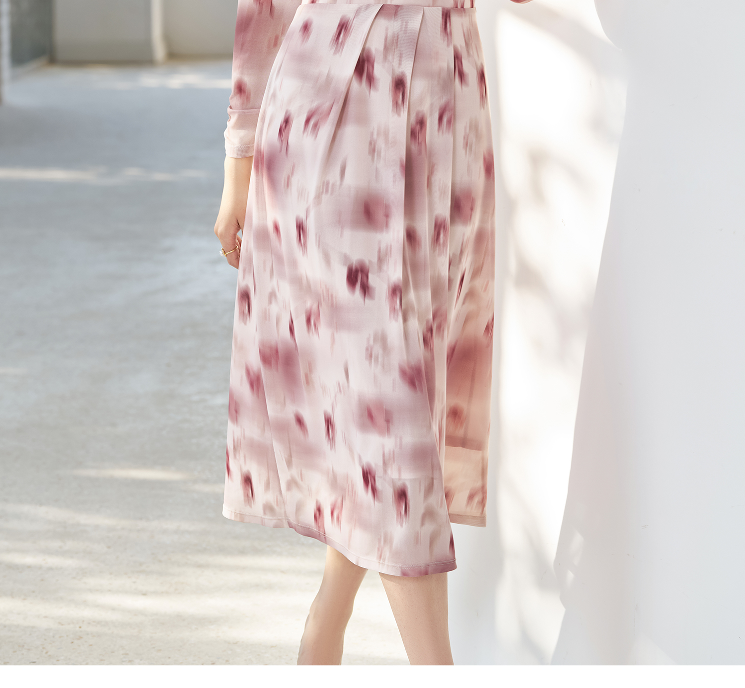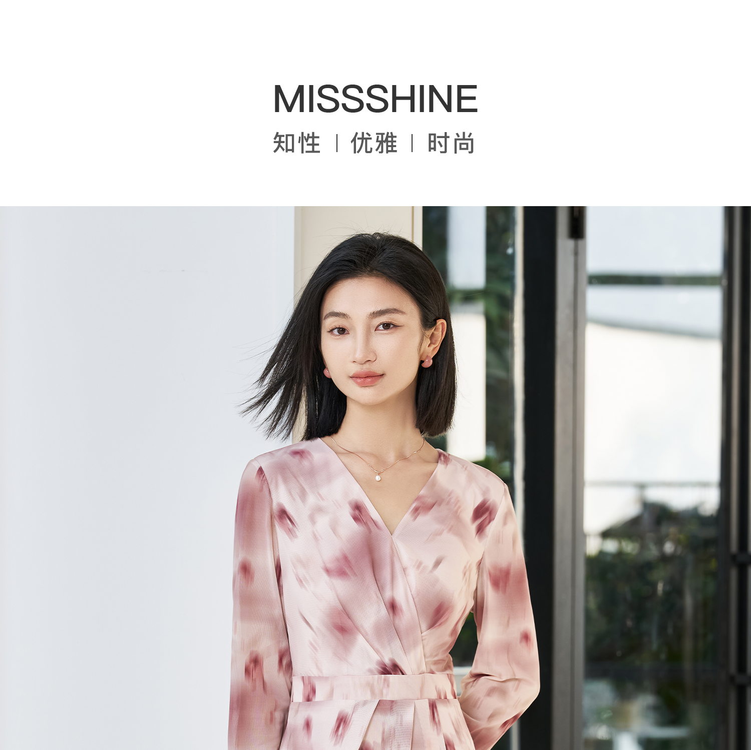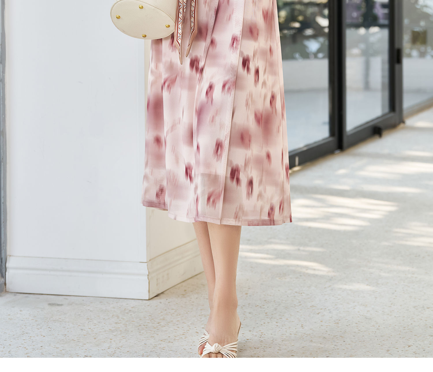 米思阳2026春季新款知性优雅气质玫瑰粉印花透气舒适连衣裙4932