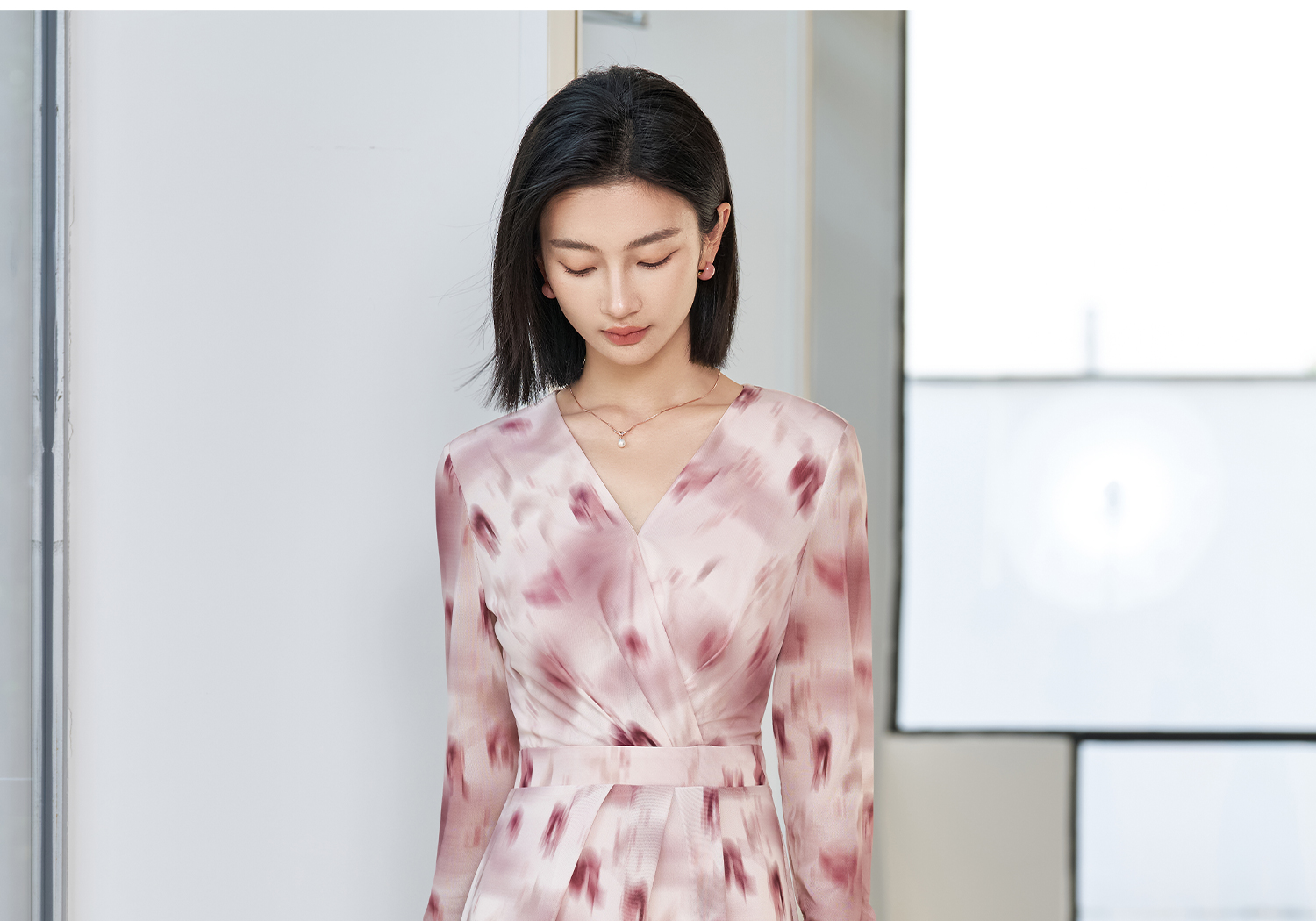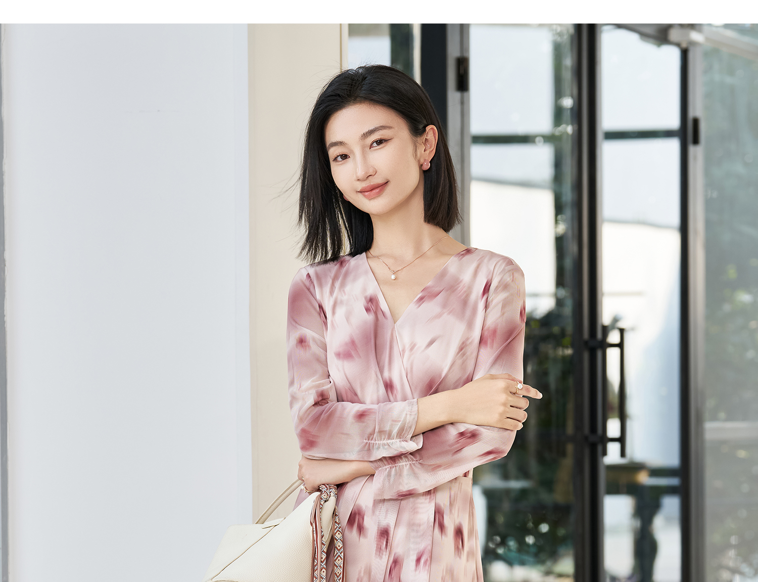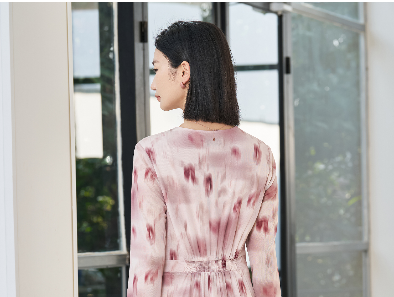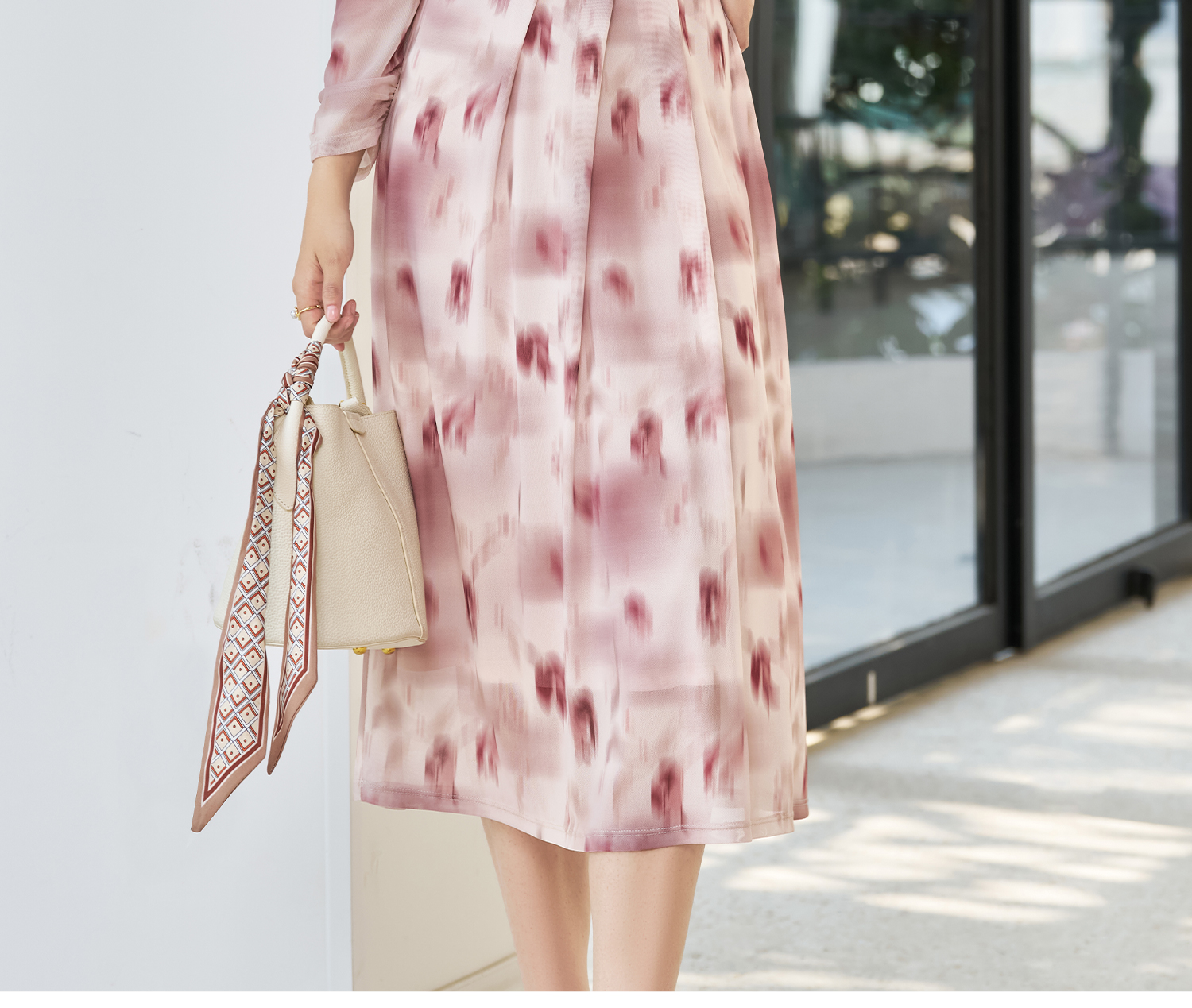米思阳2026春季新款知性优雅气质玫瑰粉印花透气舒适连衣裙4932
