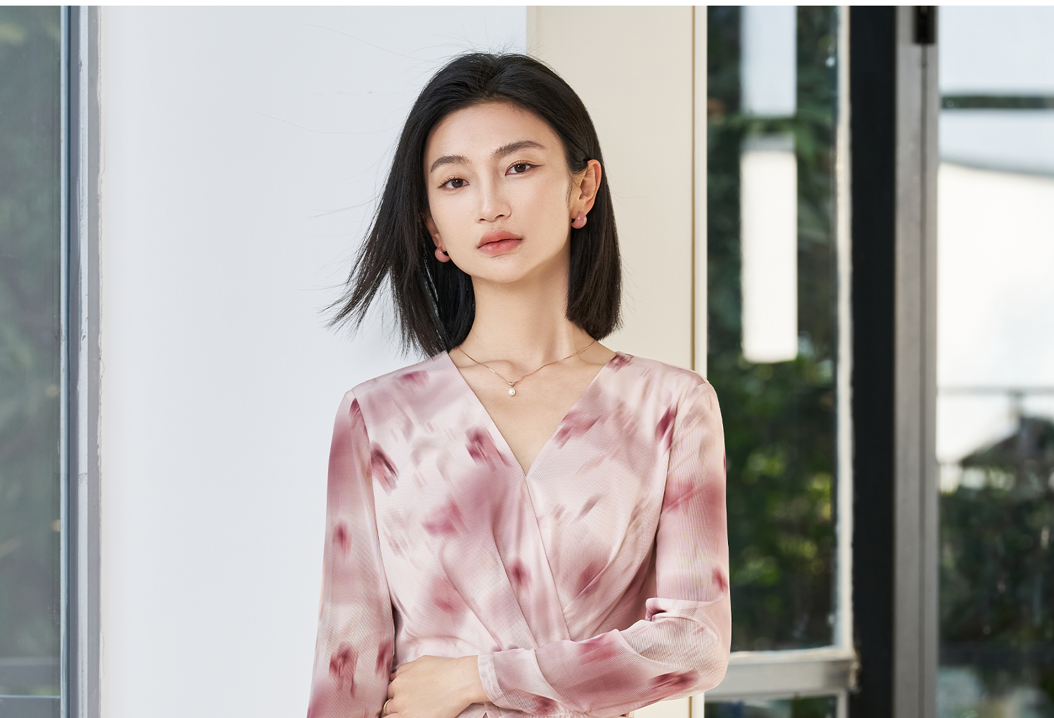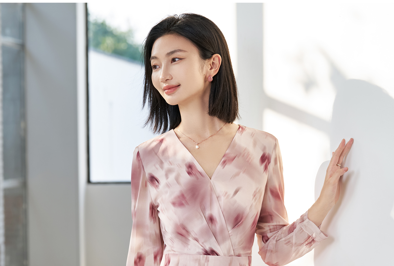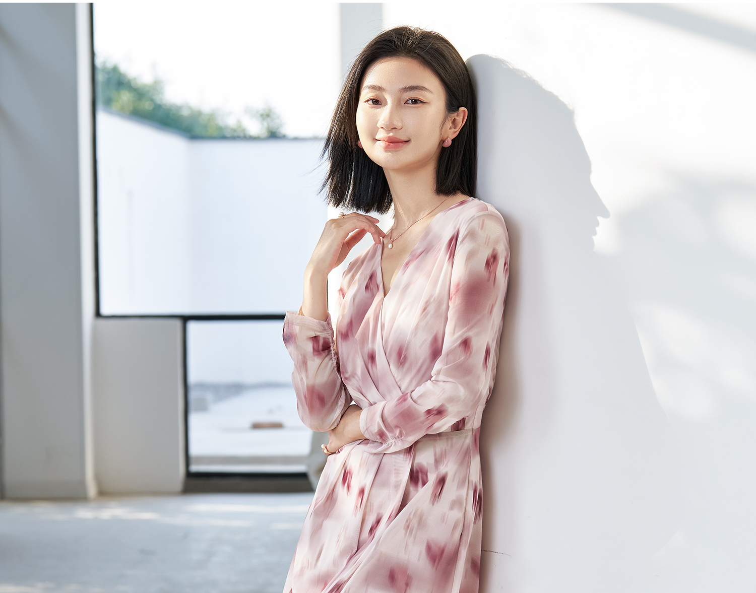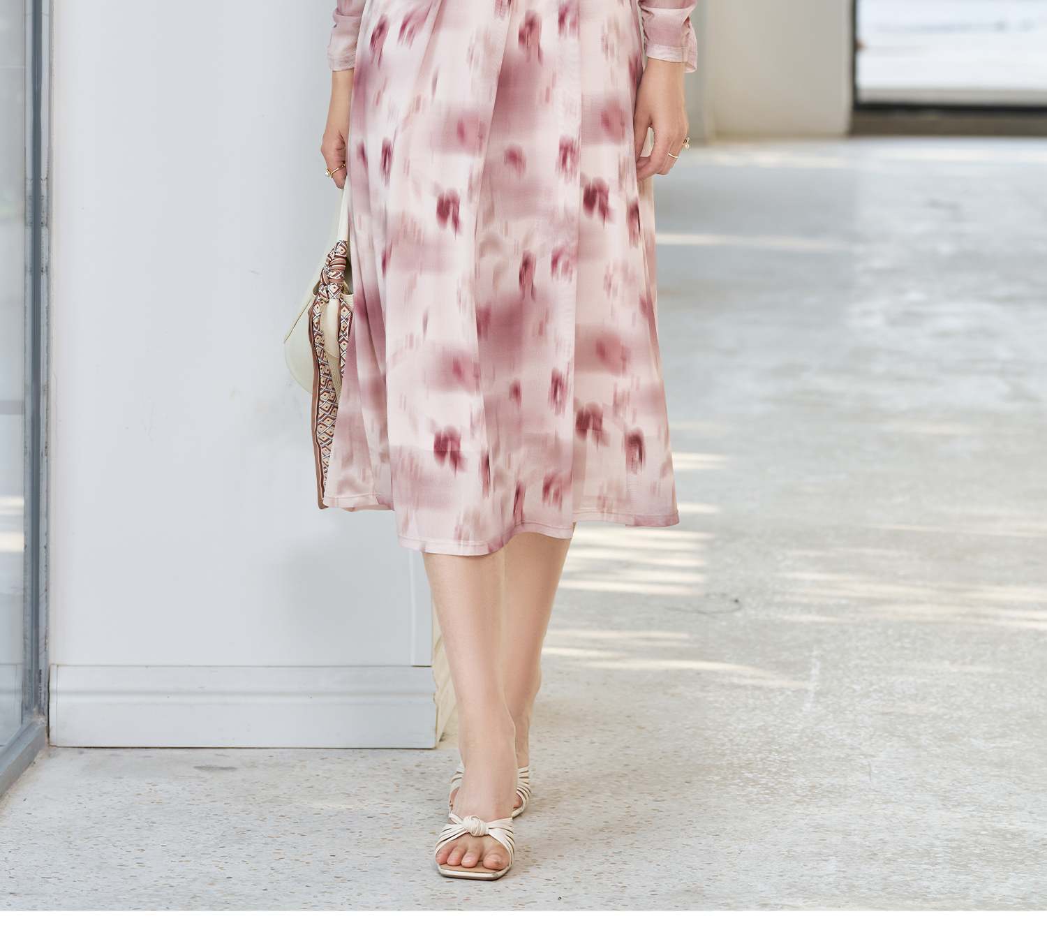 米思阳2026春季新款知性优雅气质玫瑰粉印花透气舒适连衣裙4932