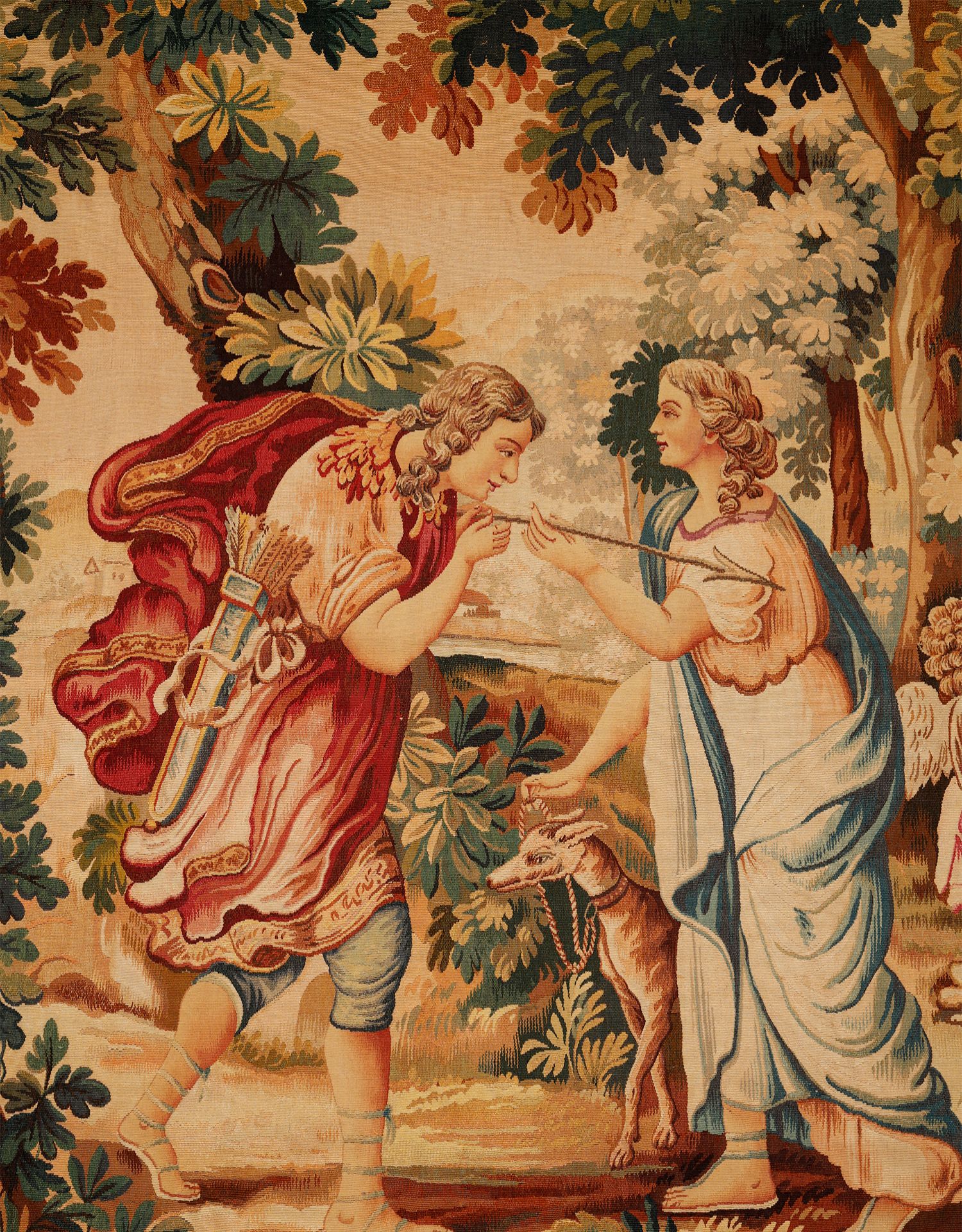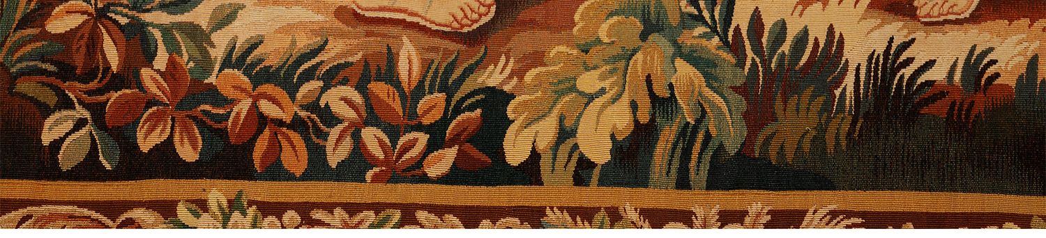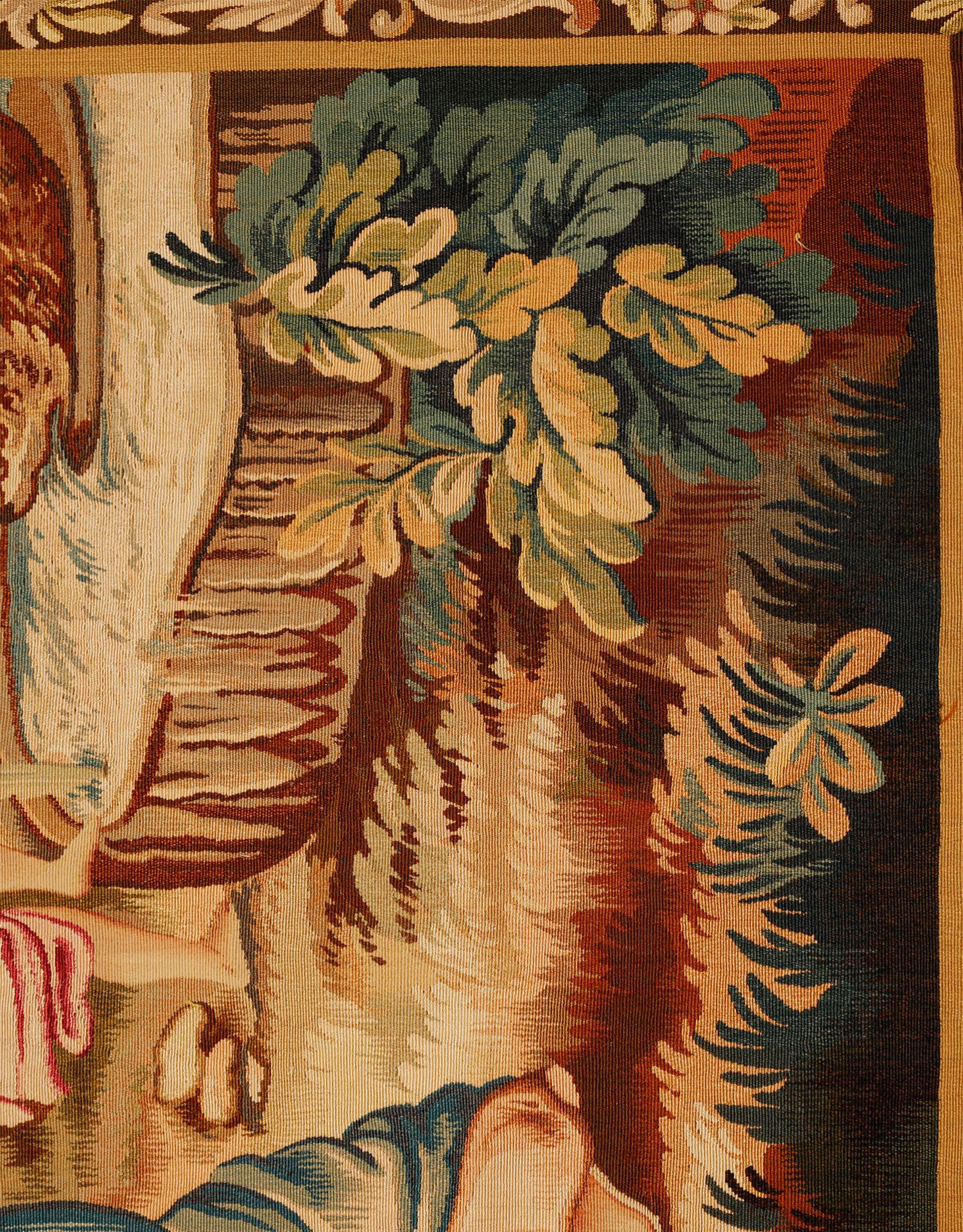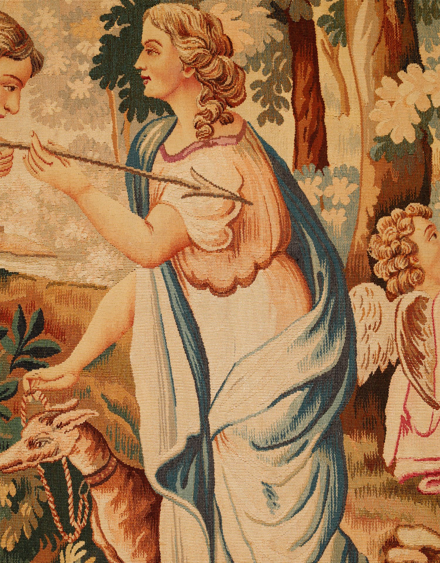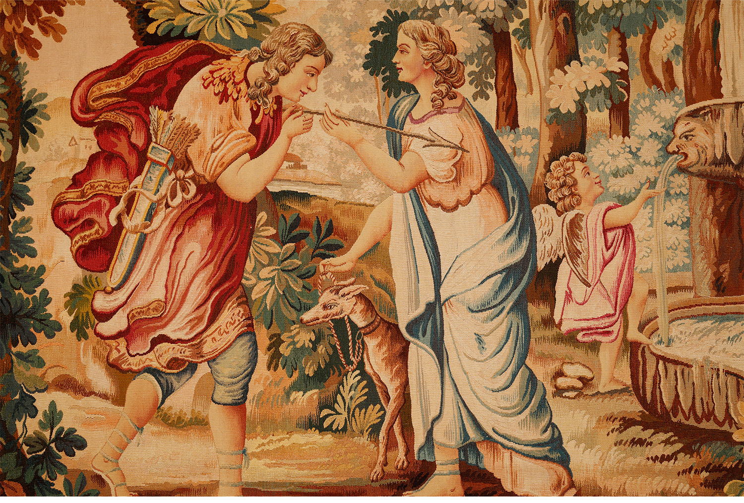 独角鹿西洋古董法国奥布松织造工坊爱之甘泉主题羊毛丝绸挂毯