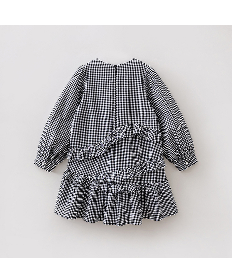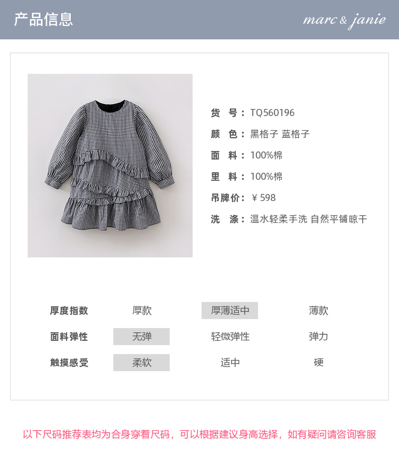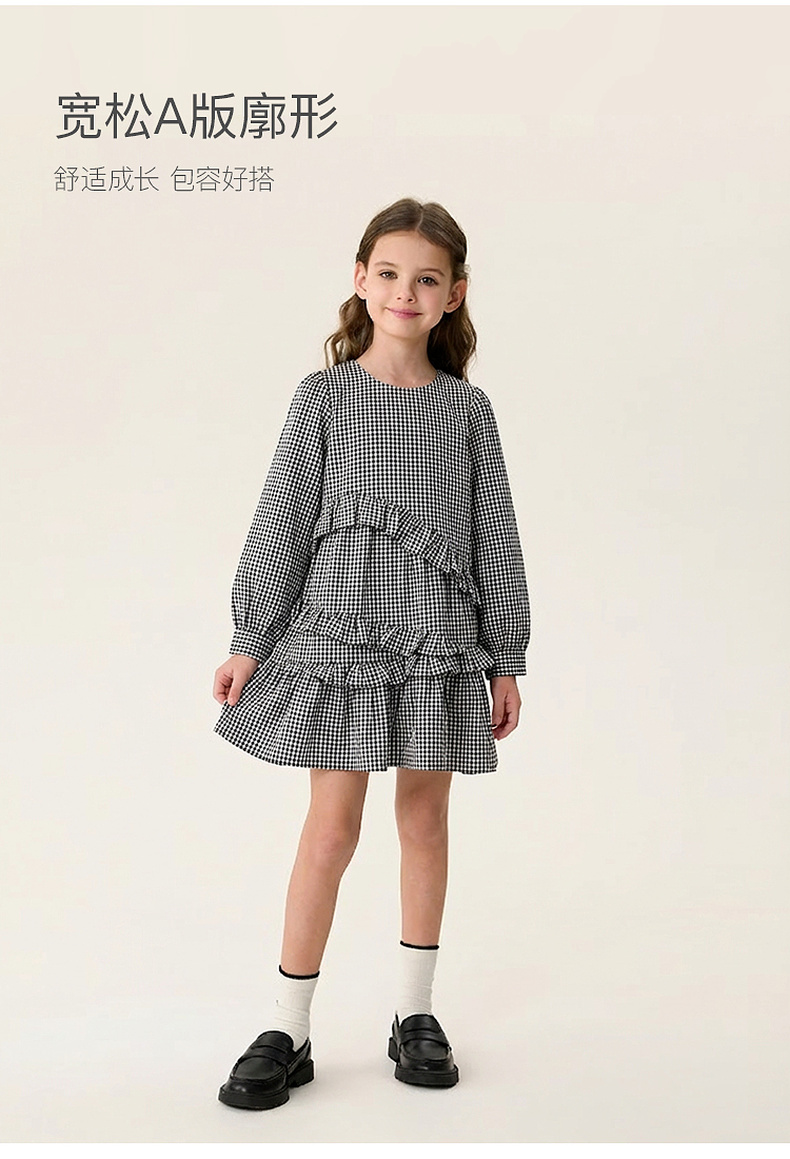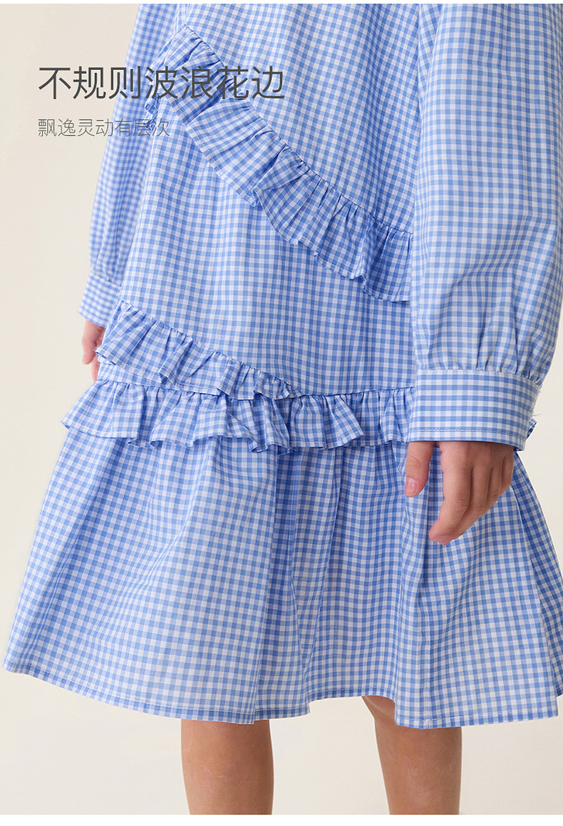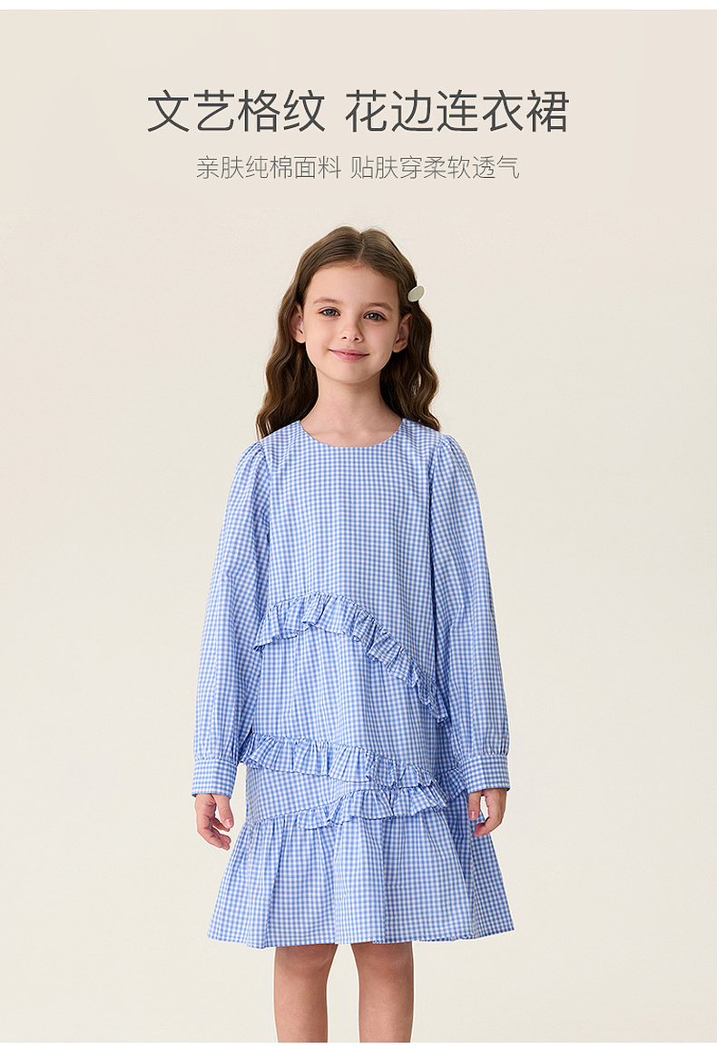 马克珍妮文艺格纹女童花边连衣裙2026年春装新款560196