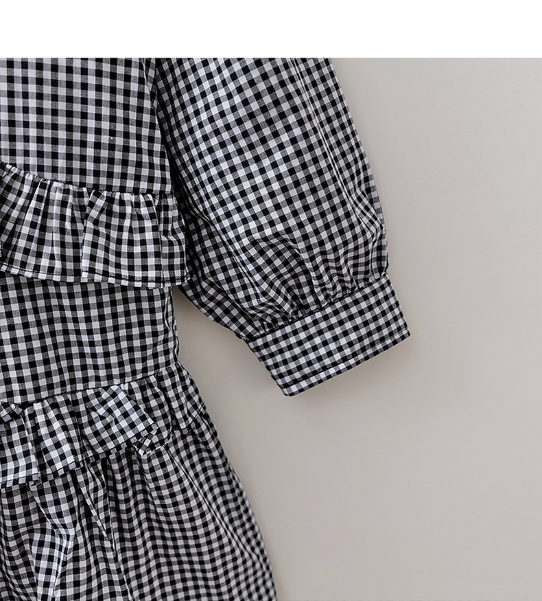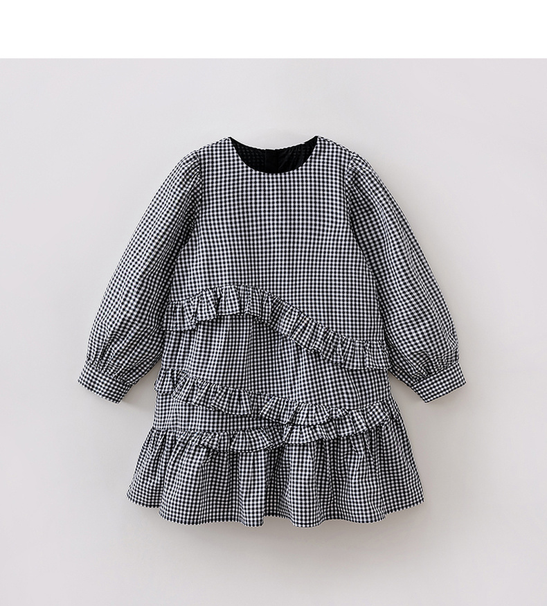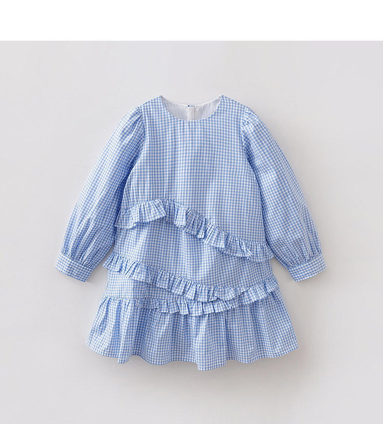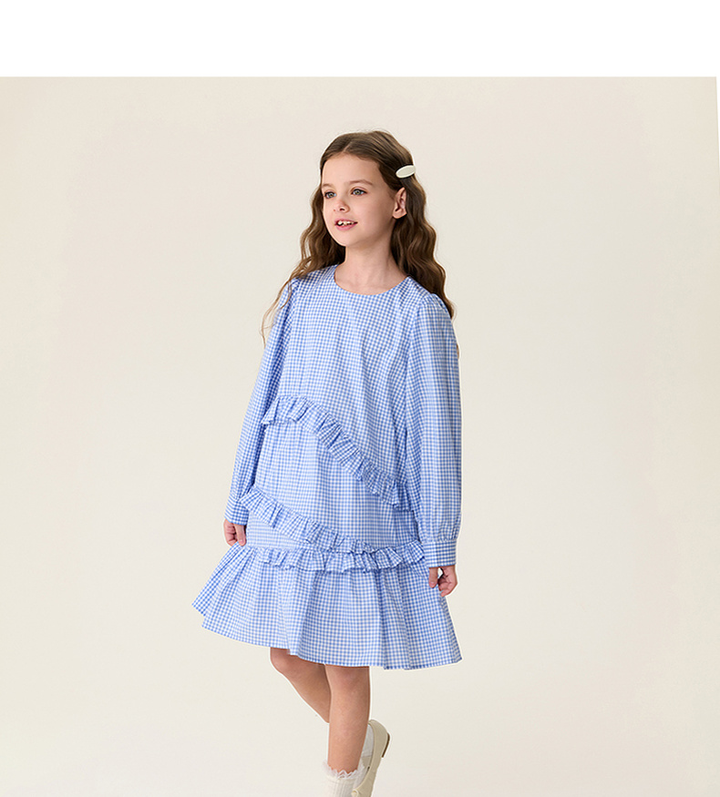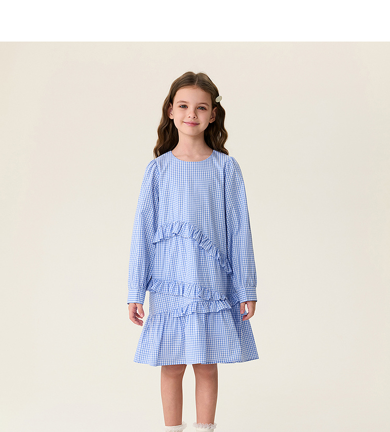 马克珍妮文艺格纹女童花边连衣裙2026年春装新款560196