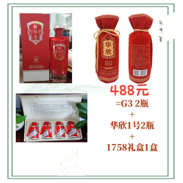 488元=G3 2瓶+华欣1号2瓶 +1758礼盒1盒