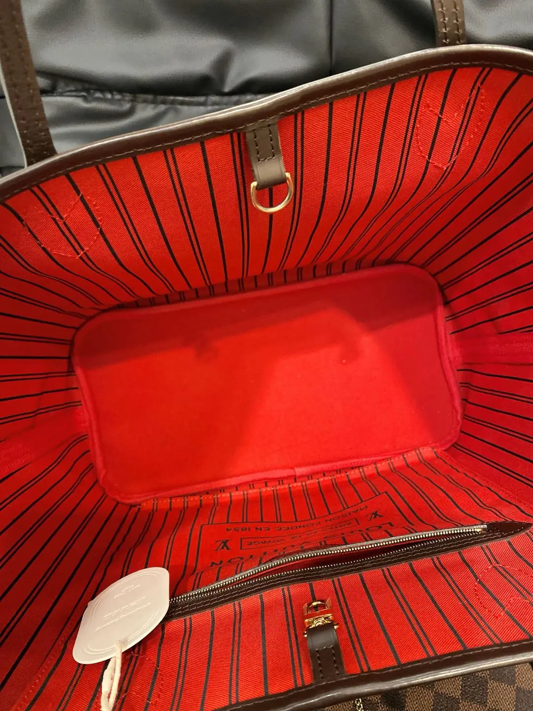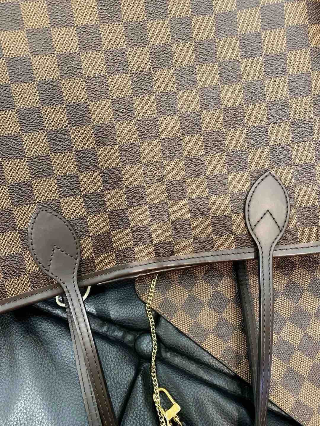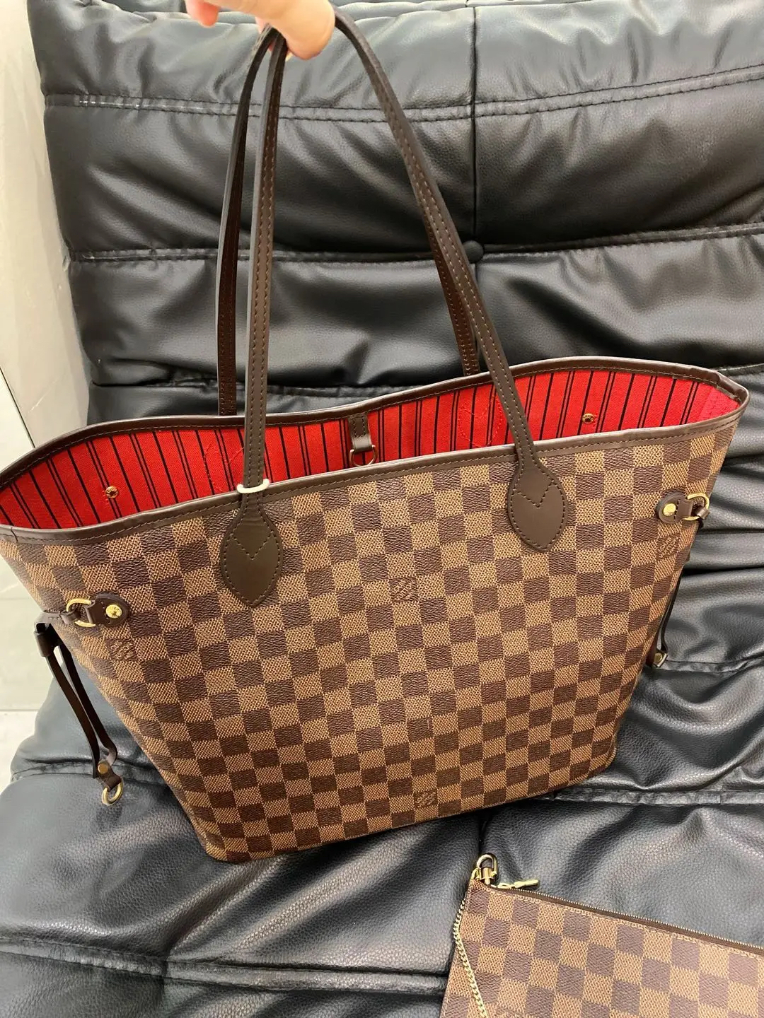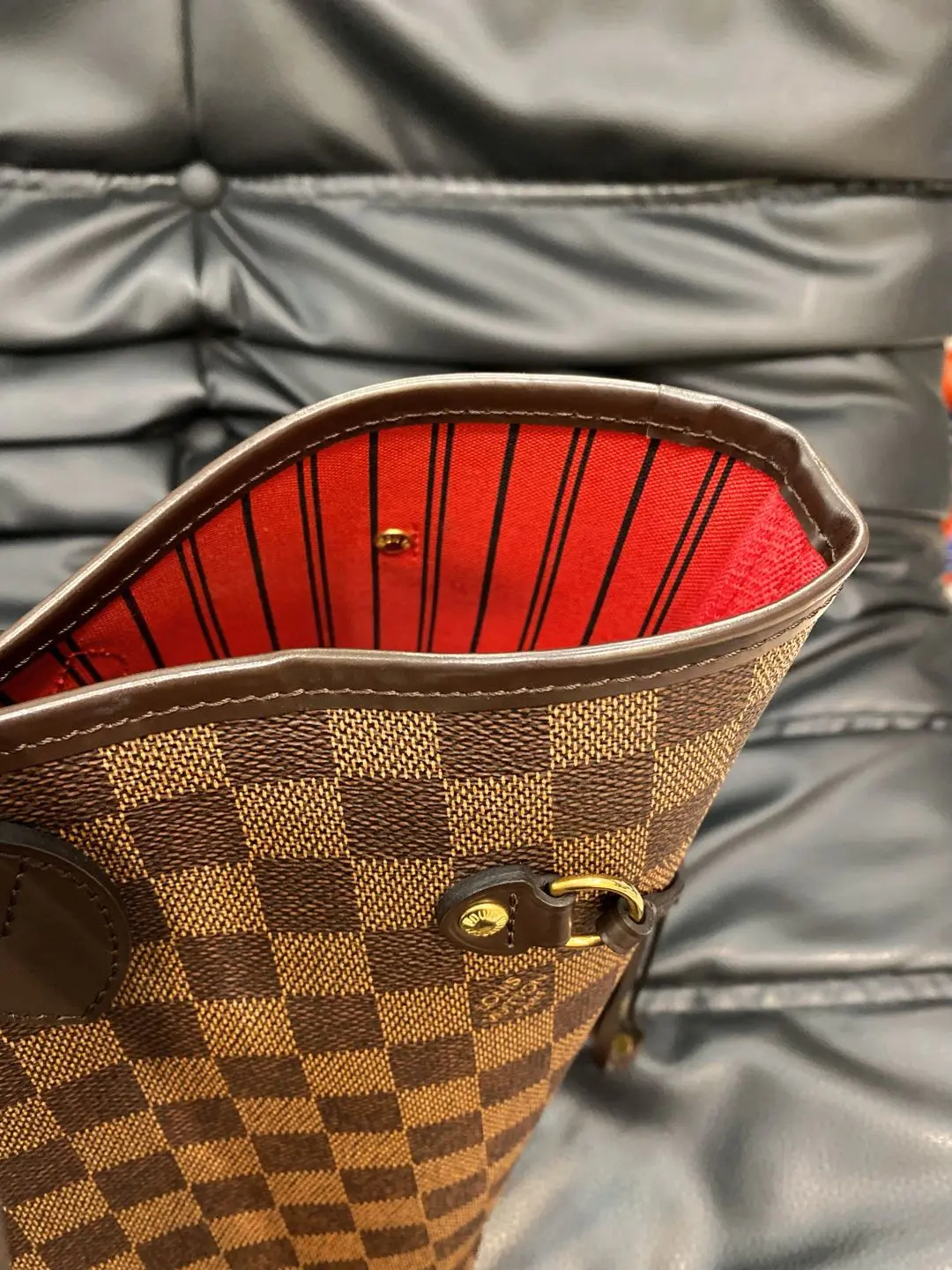 【商品详情】正品二手 Lv nf 中号 棕棋盘格 红条纹内里 托特包🛍️ 98新 32×29。配件:子袋。经典低调优雅随性 自重轻耐用