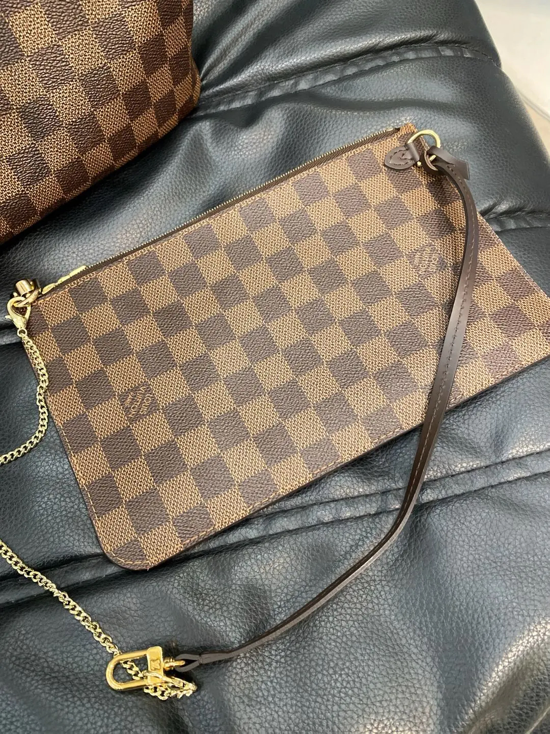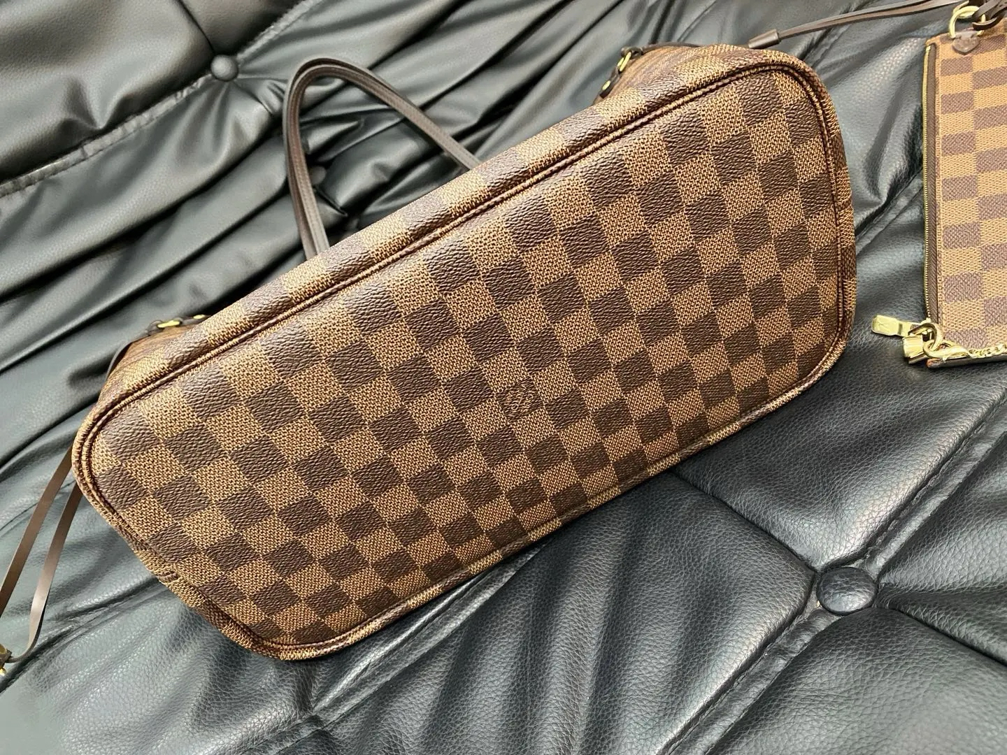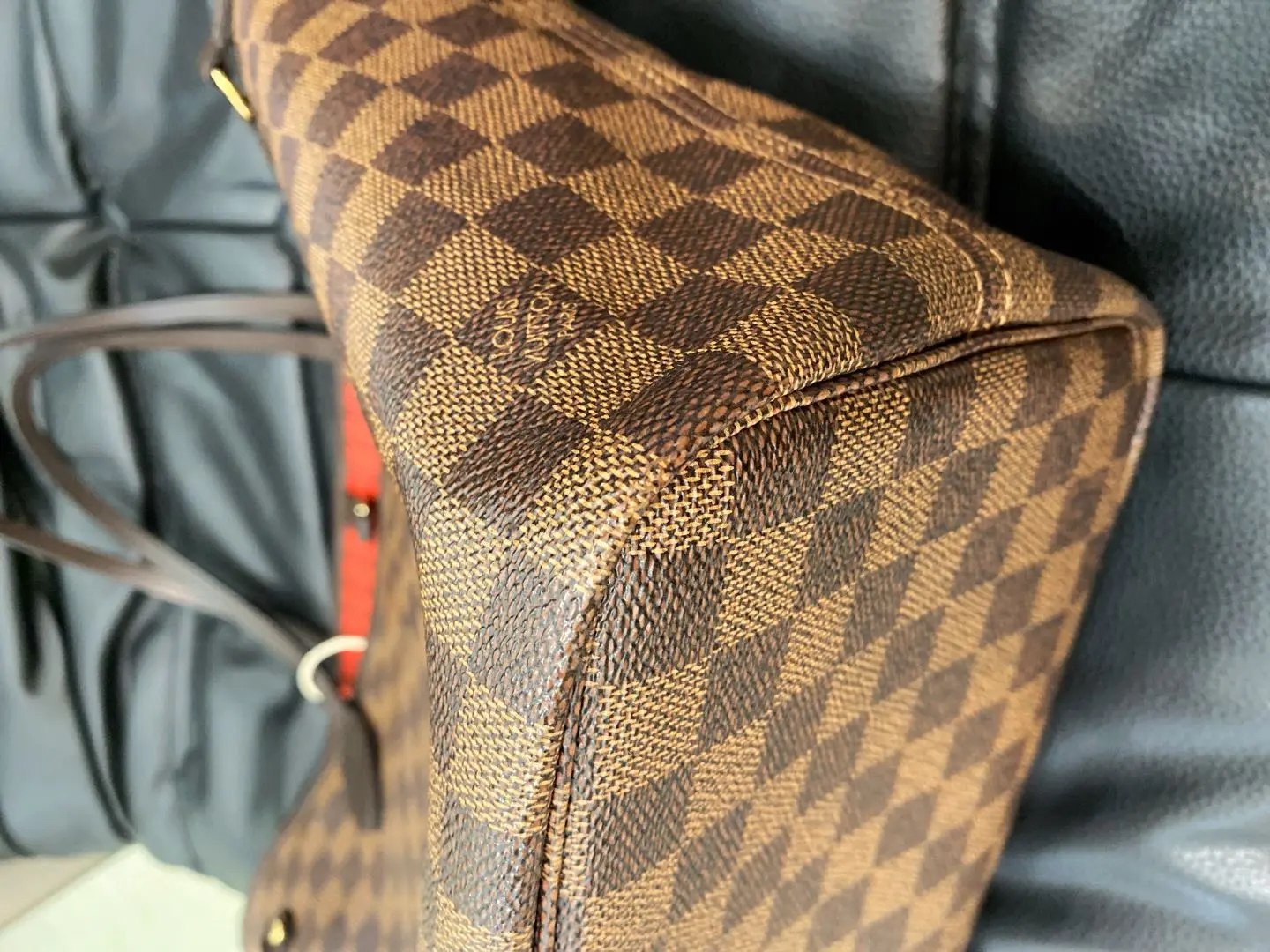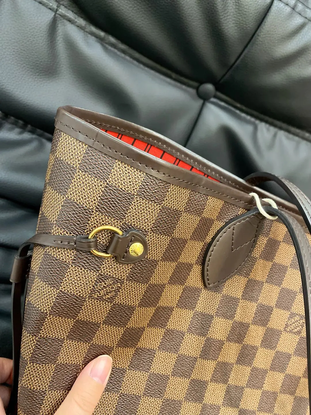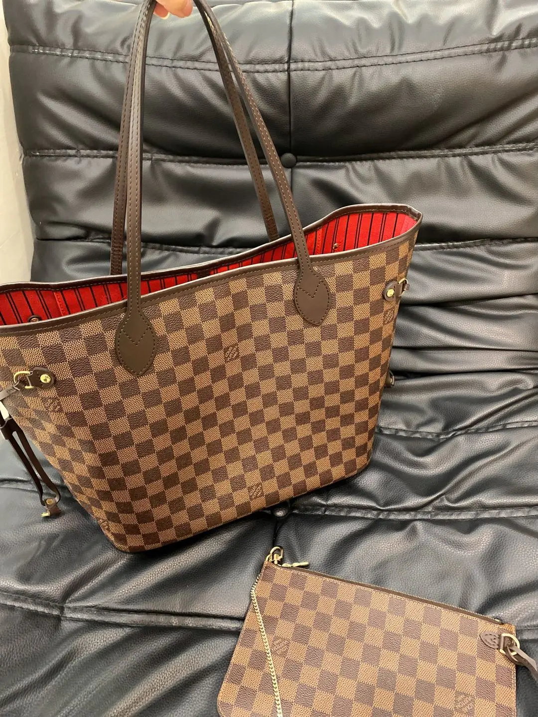 【商品详情】正品二手 Lv nf 中号 棕棋盘格 红条纹内里 托特包🛍️ 98新 32×29。配件:子袋。经典低调优雅随性 自重轻耐用