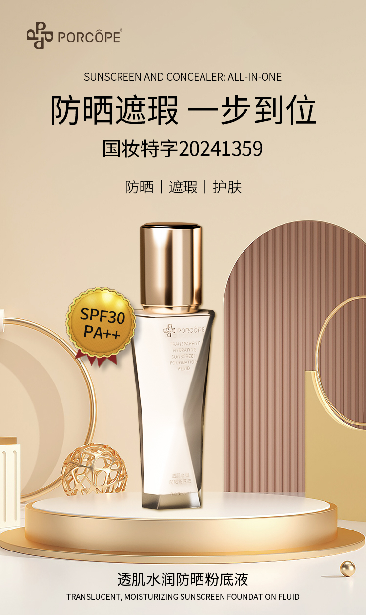 (新品限时优惠)广州药妆正品透肌水润防晒粉底液防敏体系清透防水防汗精致美丽