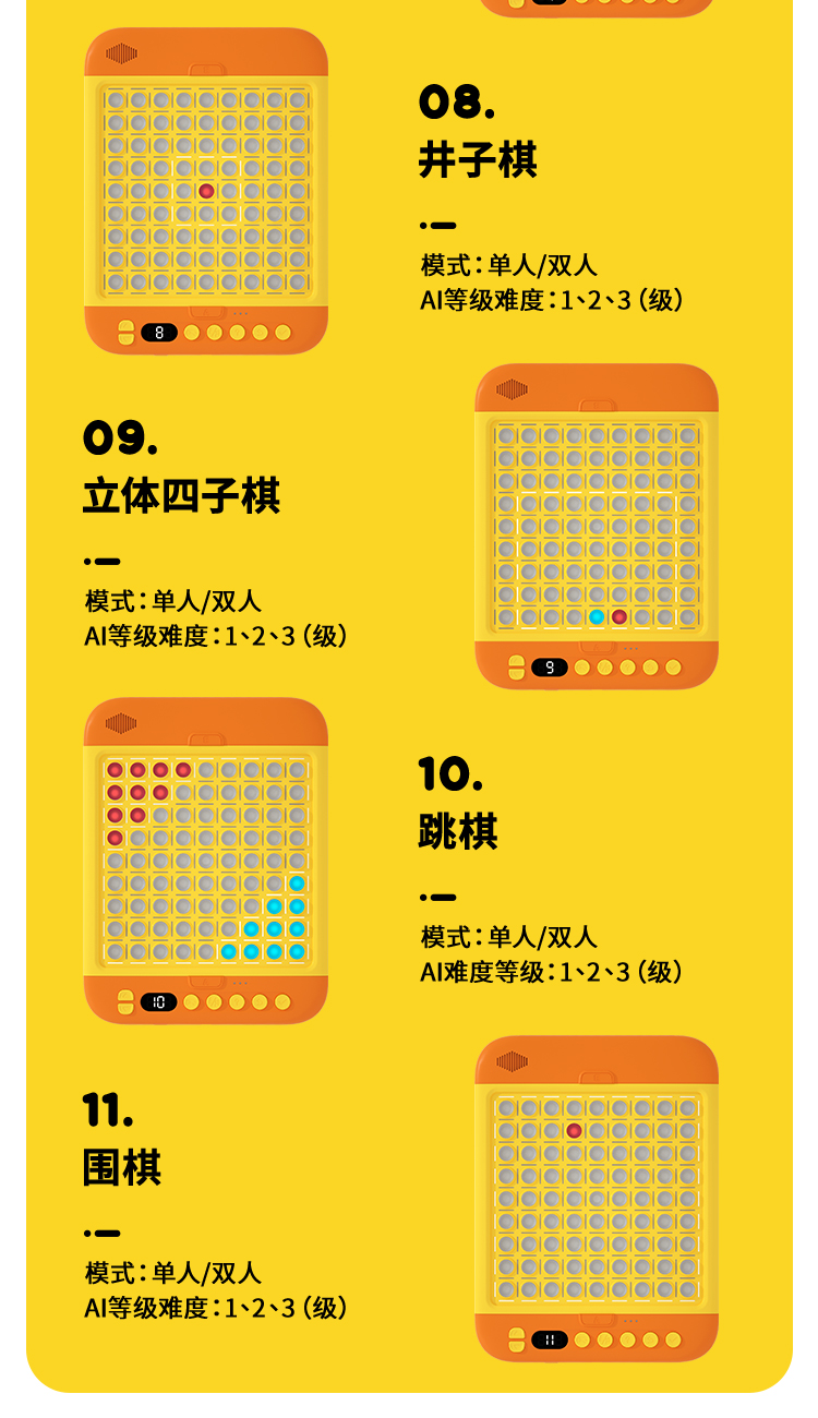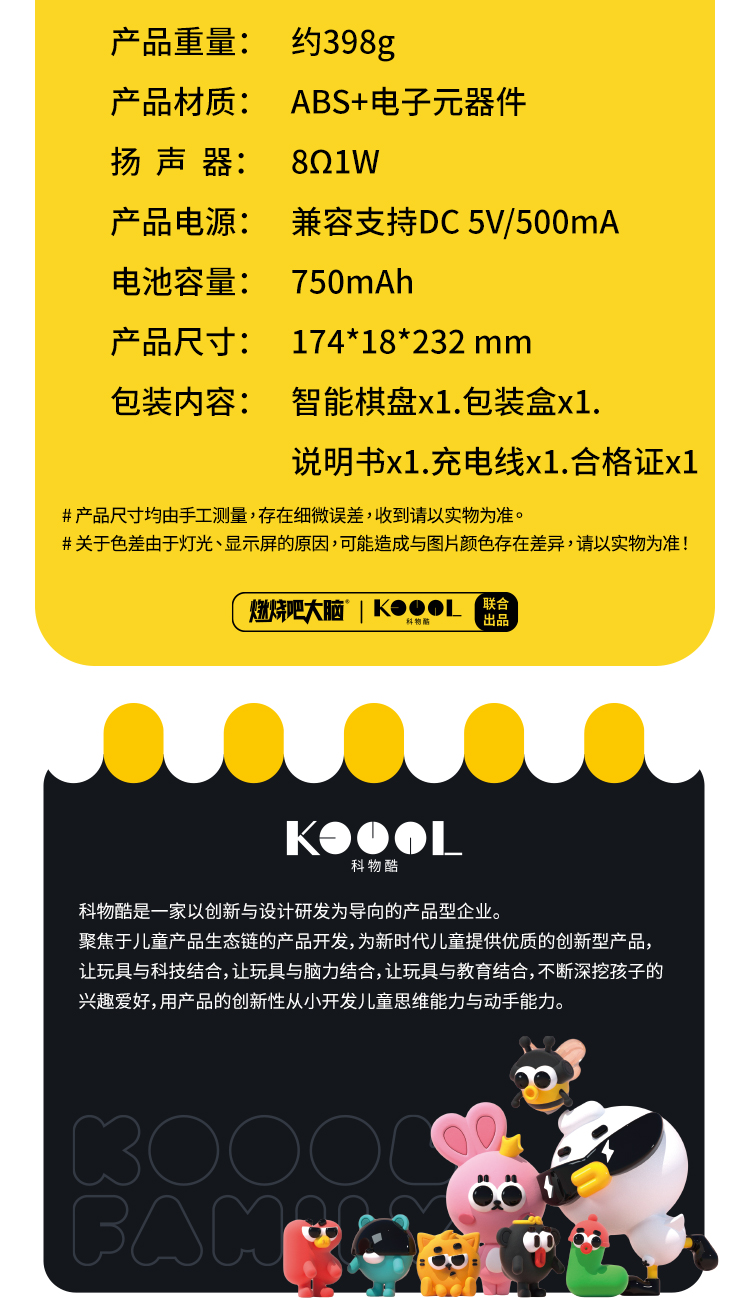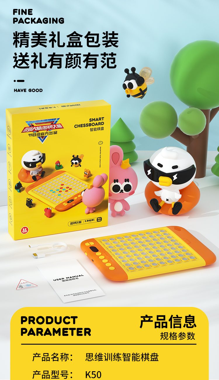 【多功能智能棋盘】培养逻辑思维 】KOOOL科物酷智能电子棋盘思维训练早教机 五子棋 华容道 消消乐跳棋 围棋等11种游戏 内置丰富游戏 一起玩转脑力风暴 桌游