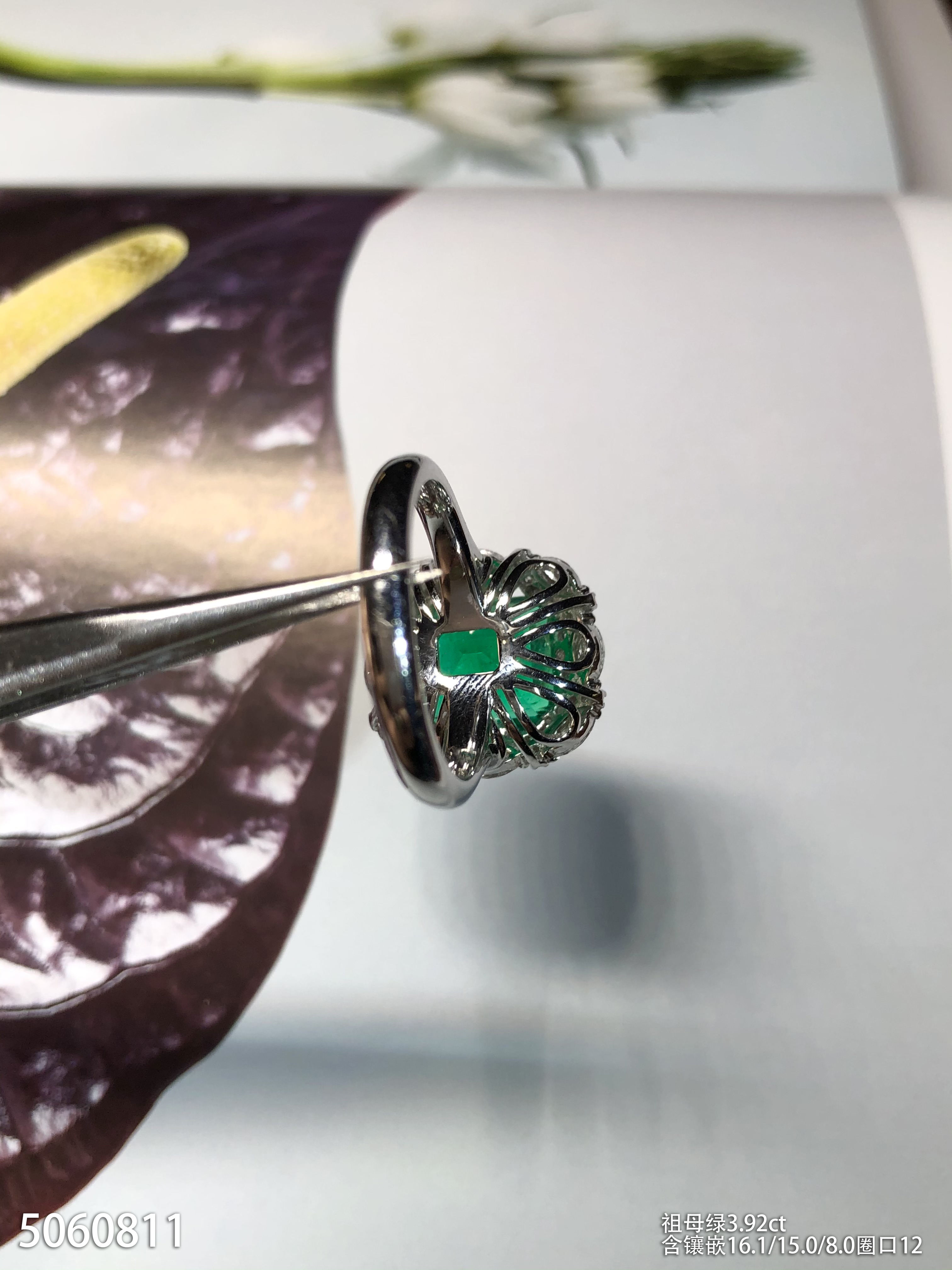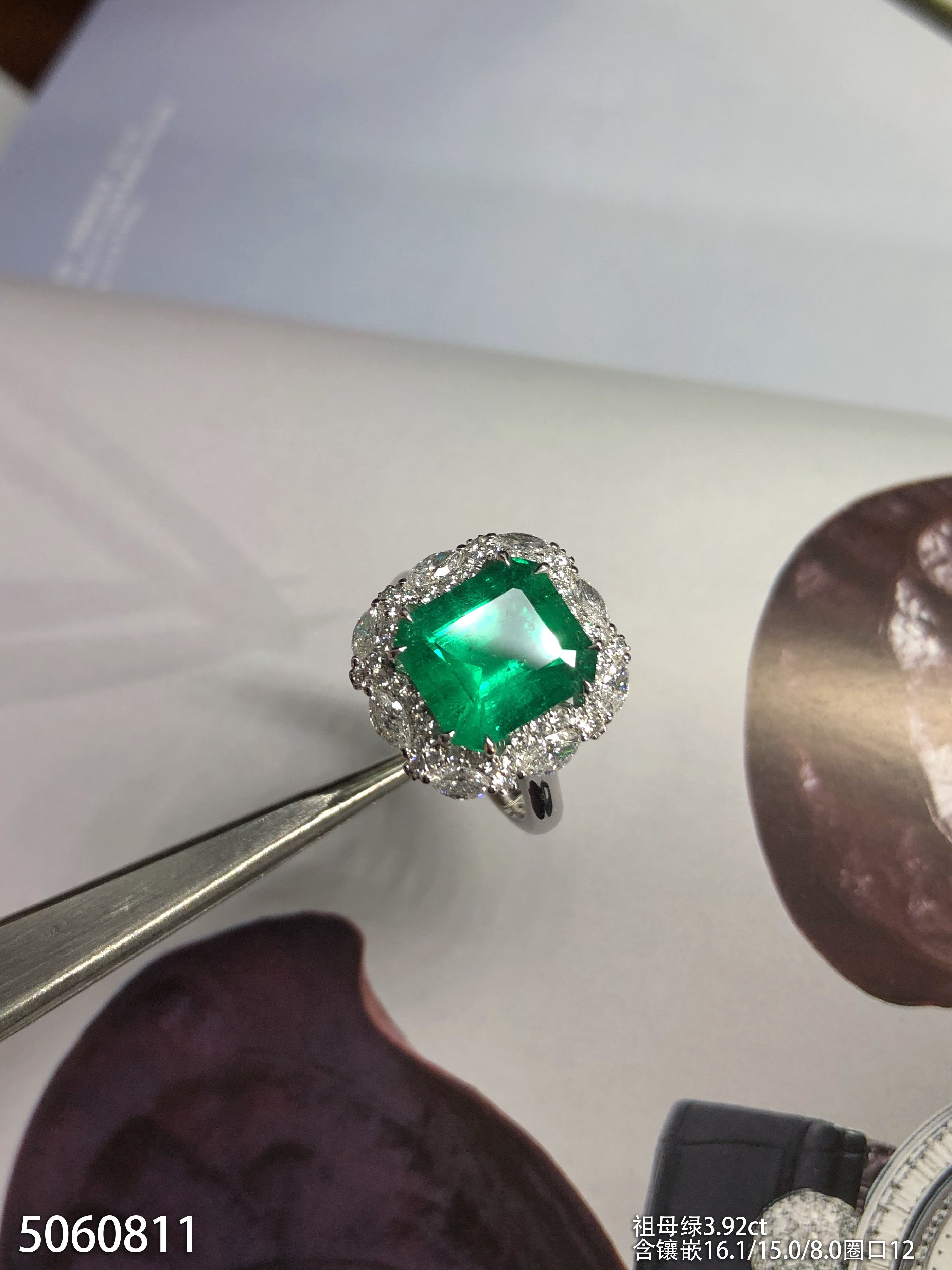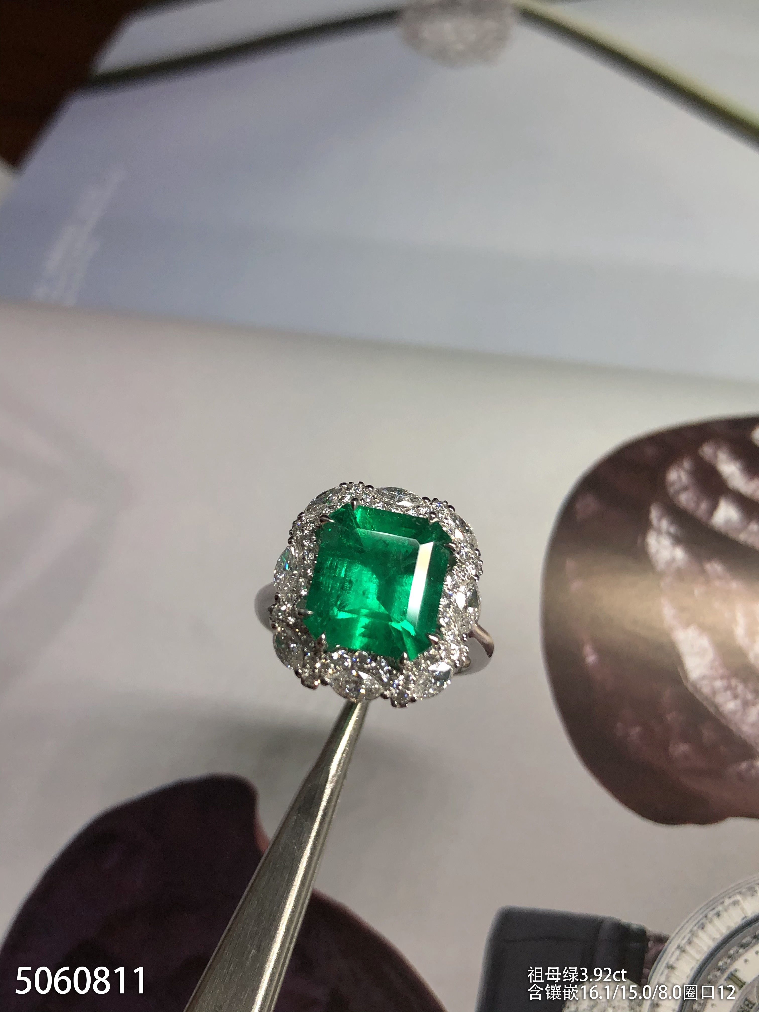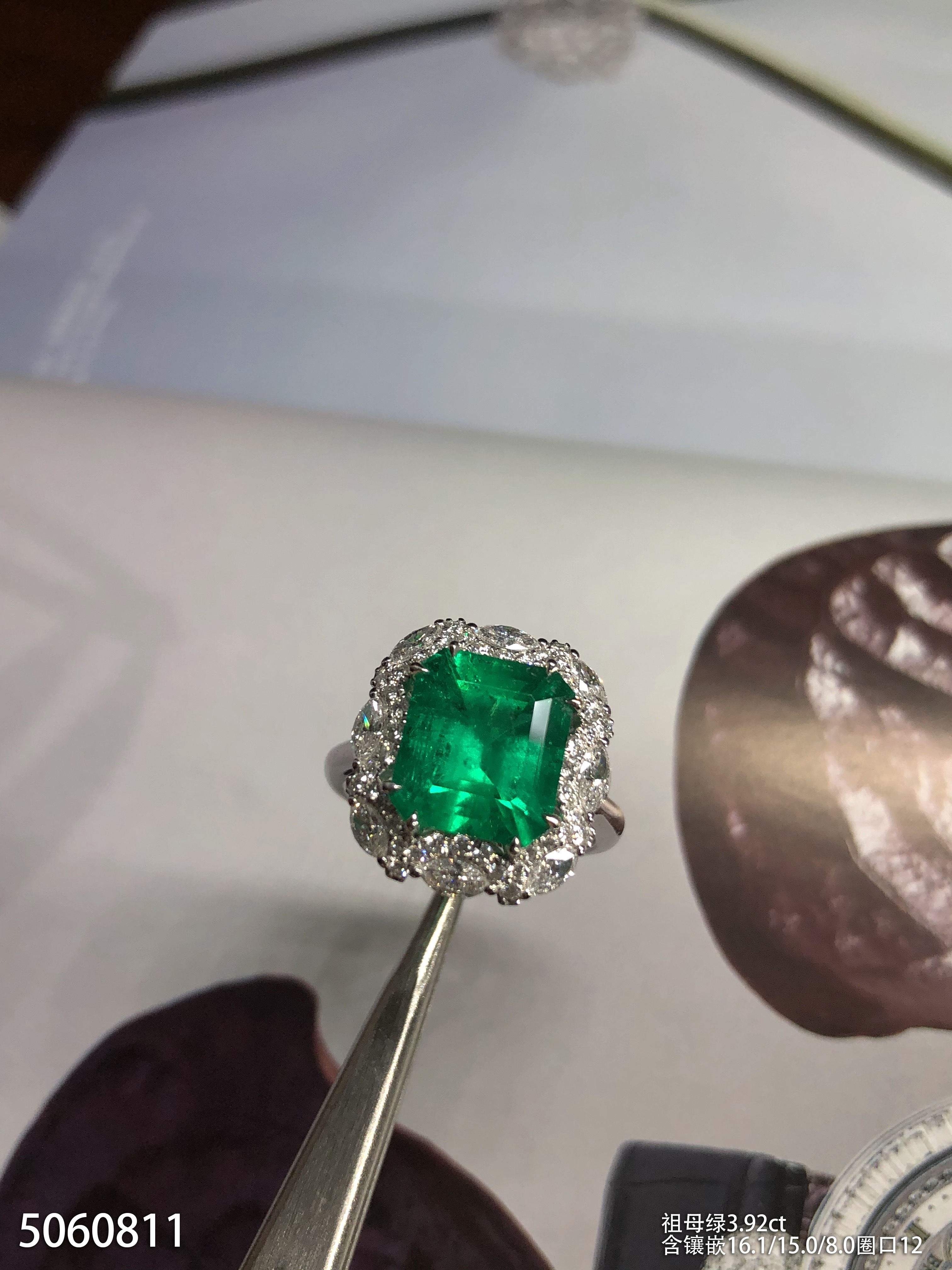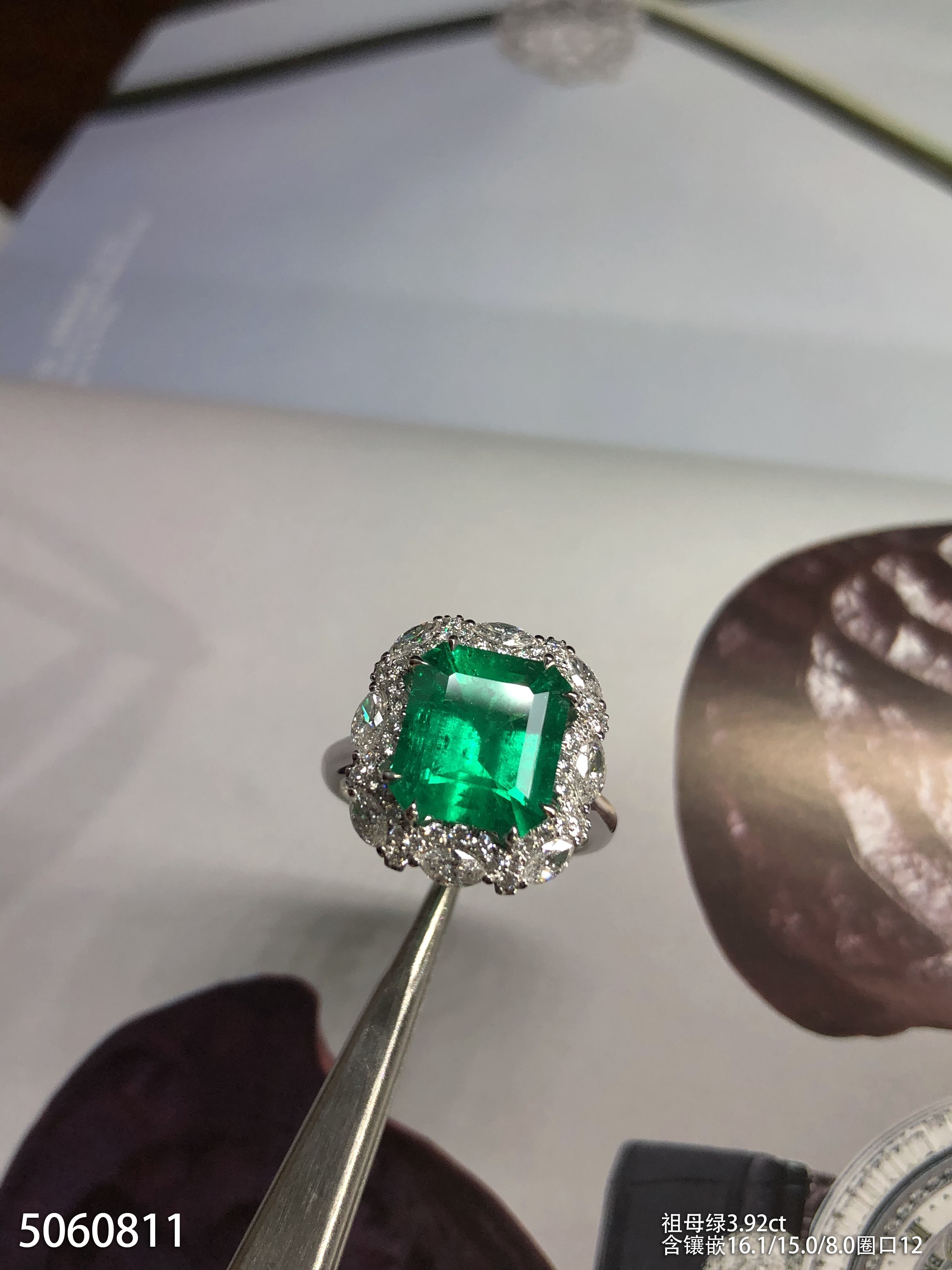 3.92ct祖母绿钻石戒指,产自哥伦比亚【5060811】具体价格微信咨询