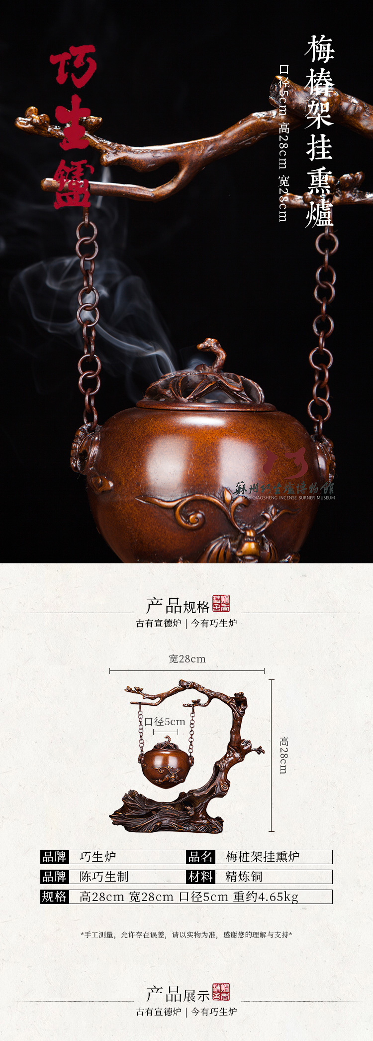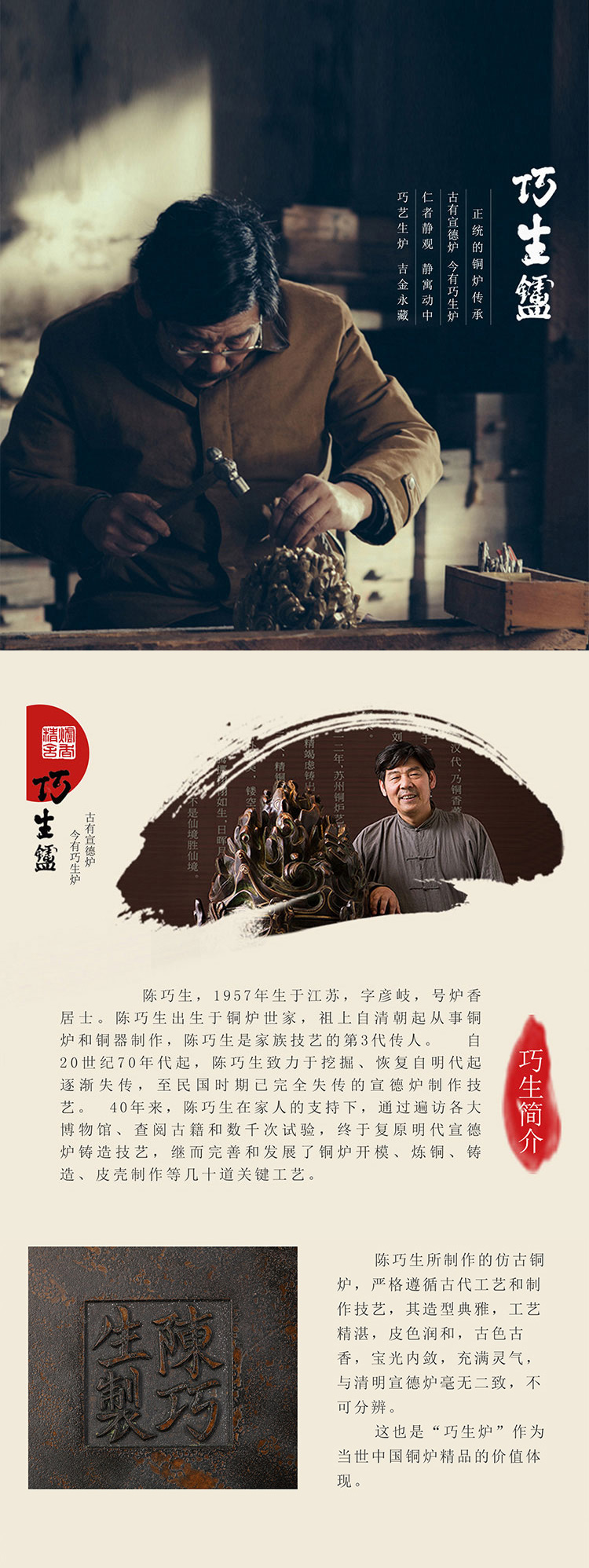 *巧生炉为古法手工铸造,炉身有轻微砂眼、足部轻微磨损等均为正常现象,非质量问题不同批次尺寸、重量、皮色、底款等可能略有差异