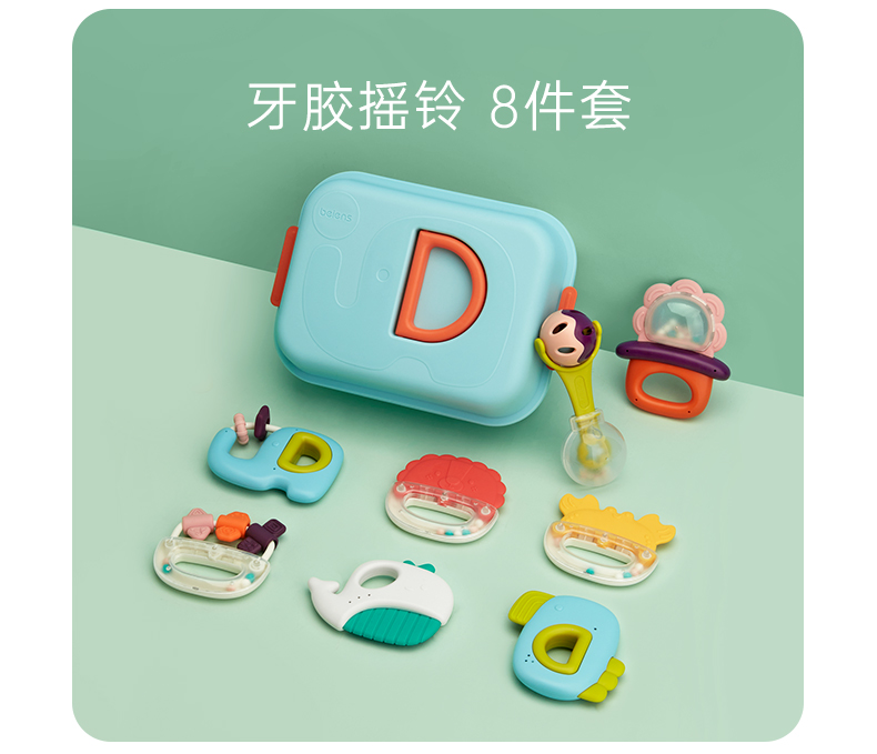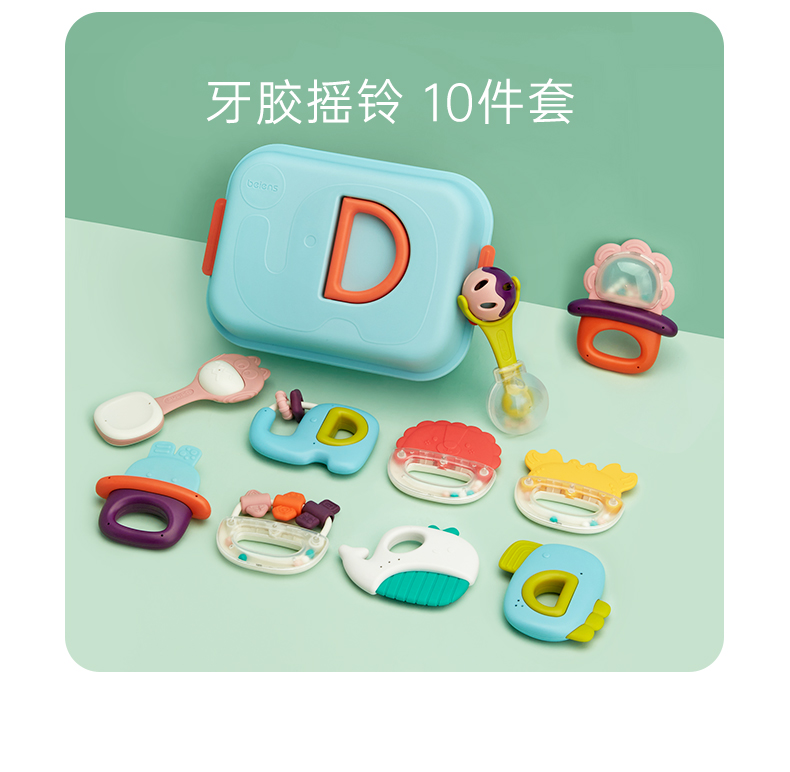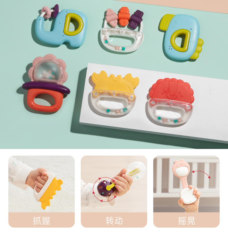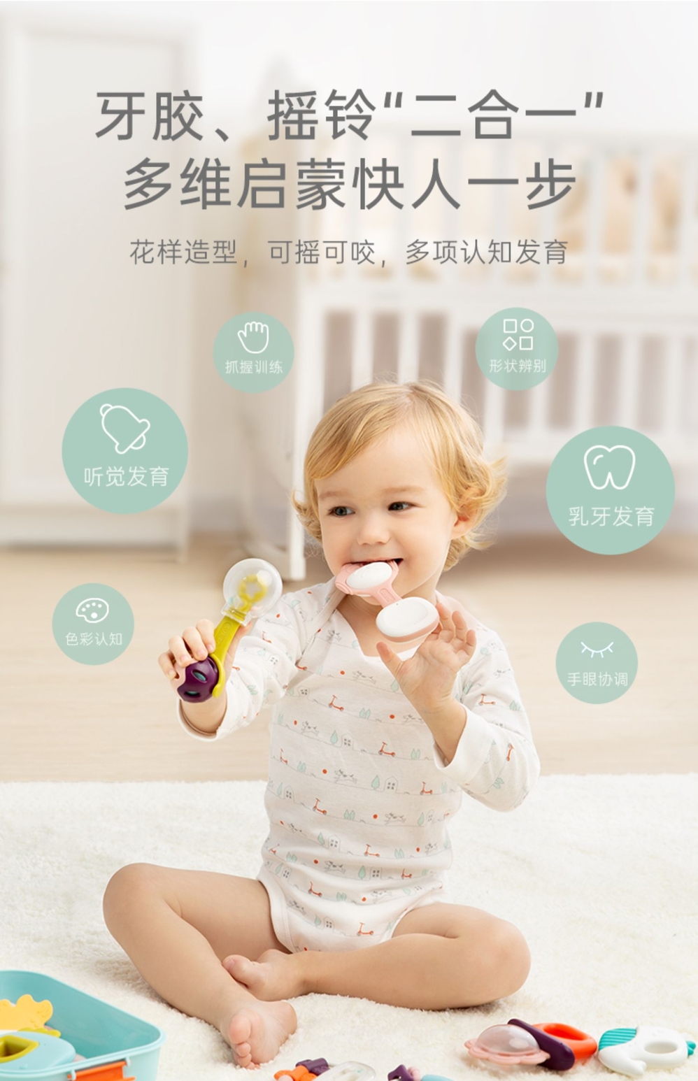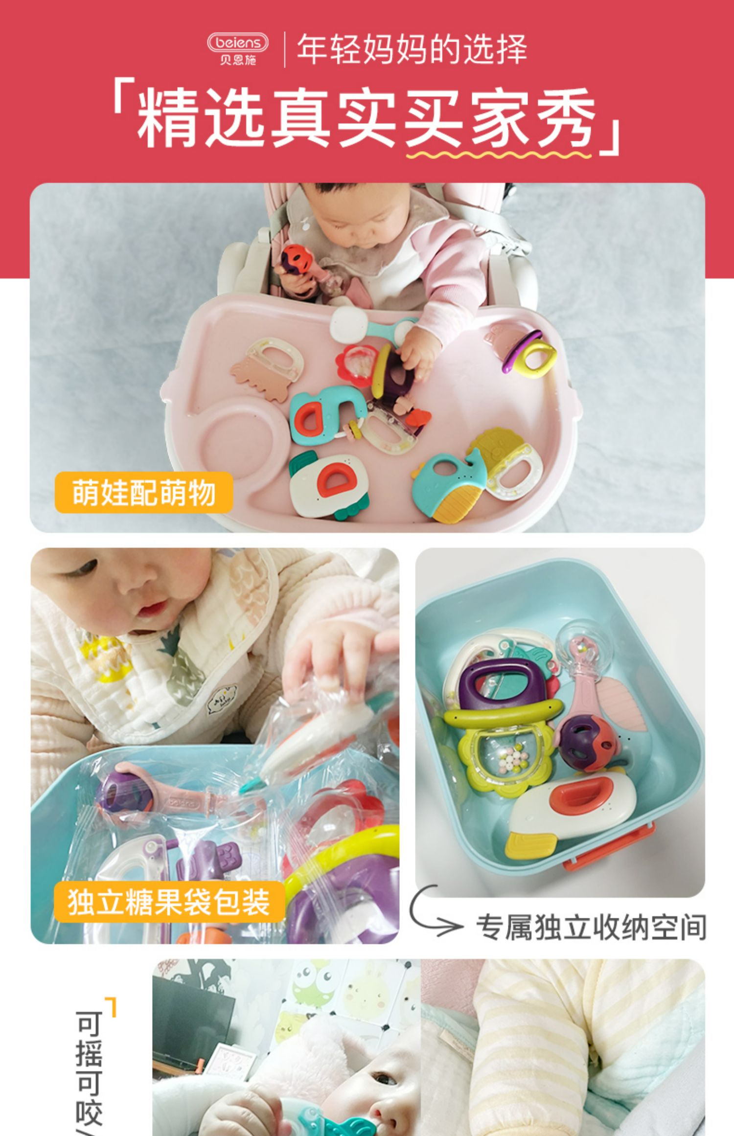 贝恩施摇铃婴儿玩具益智早教新生儿可啃咬牙胶宝宝0-3-6个月1岁一