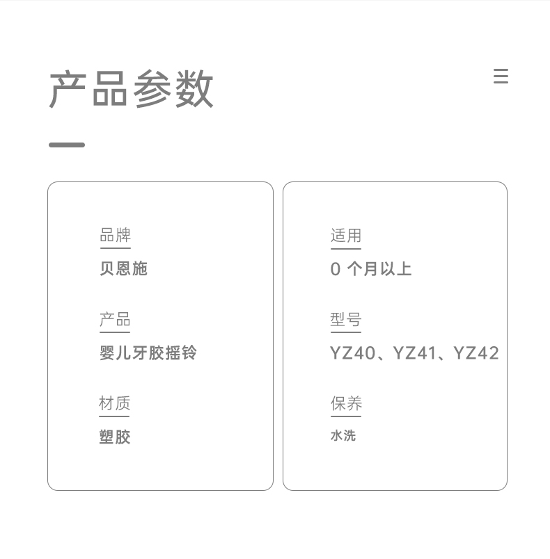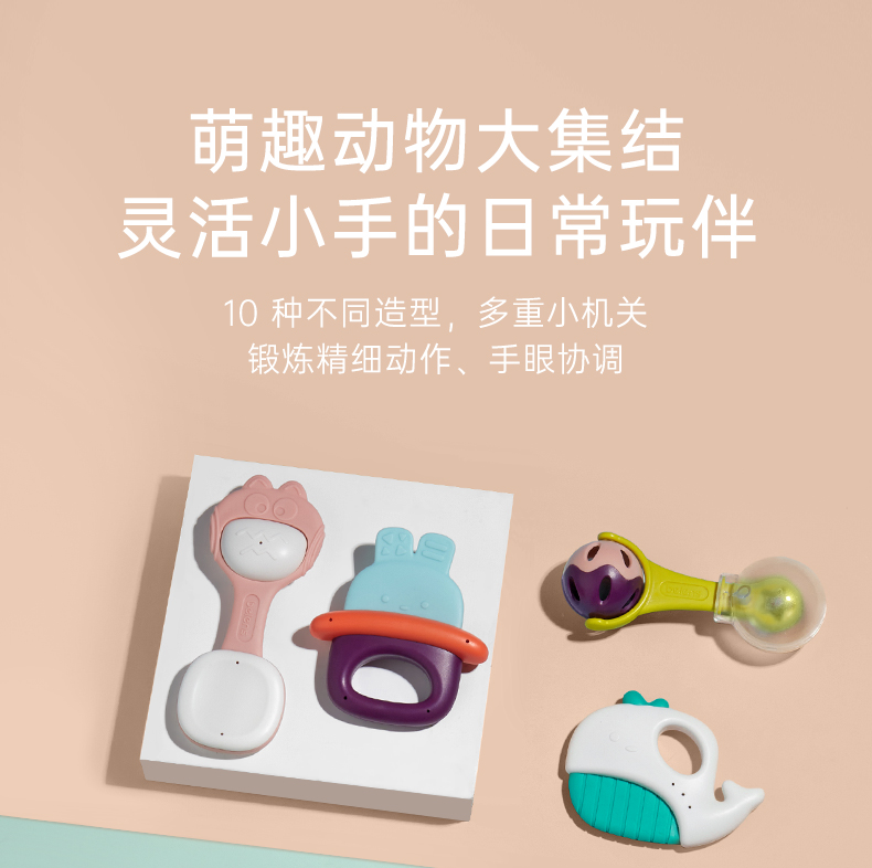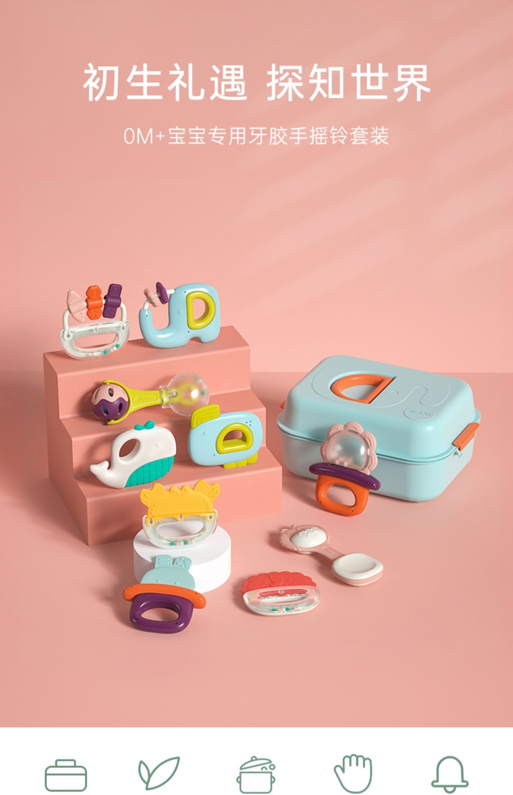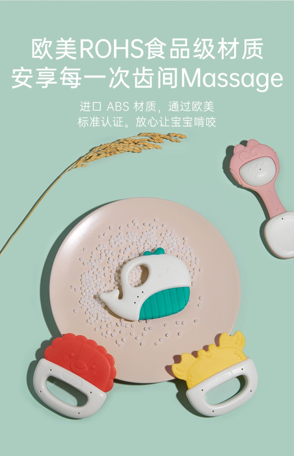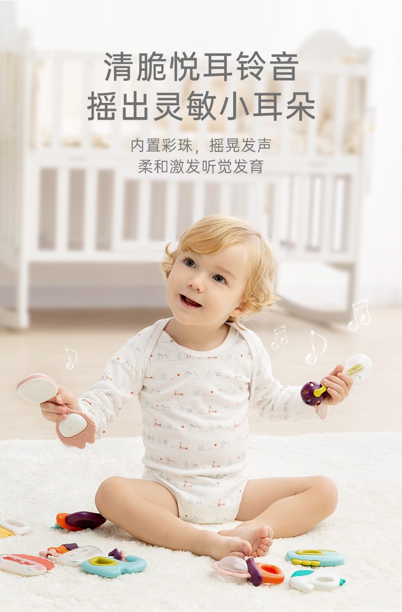 贝恩施摇铃婴儿玩具益智早教新生儿可啃咬牙胶宝宝0-3-6个月1岁一