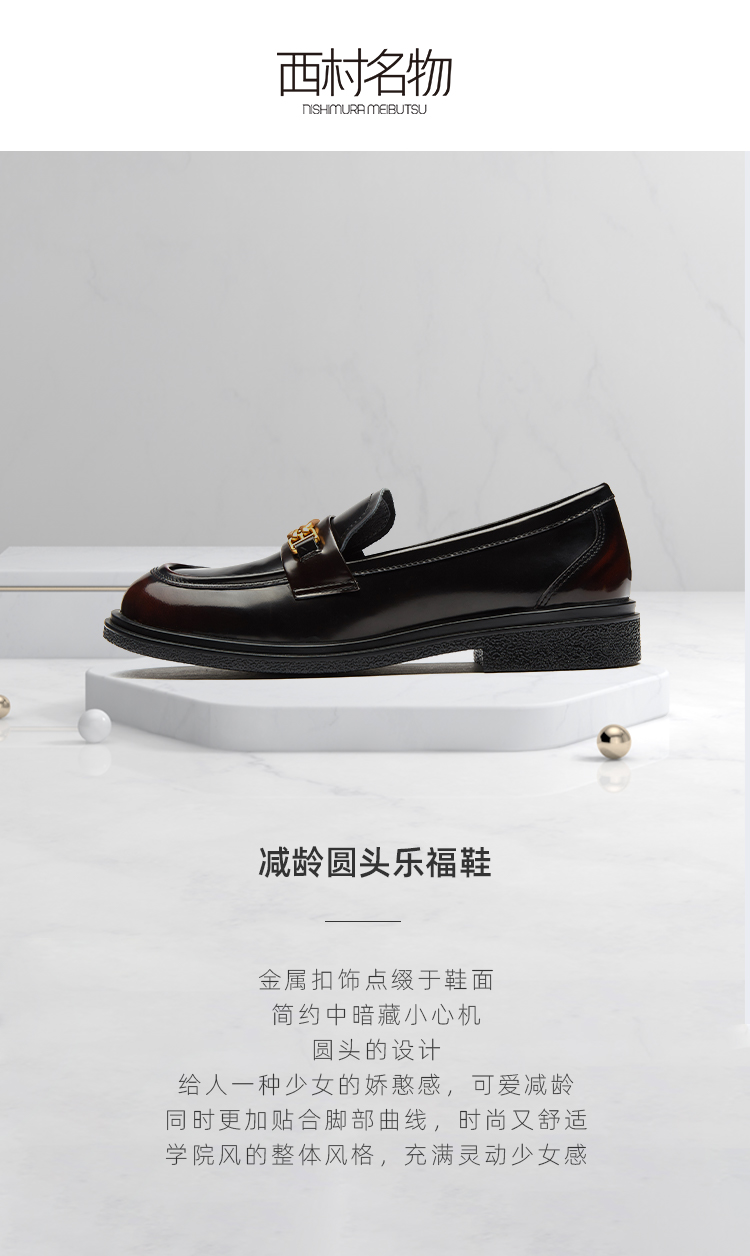 西村名物2021春季新款黑色小皮鞋JK鞋日系中跟乐福鞋制服鞋X21AM11301