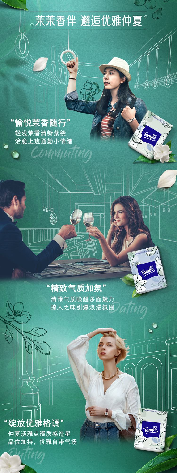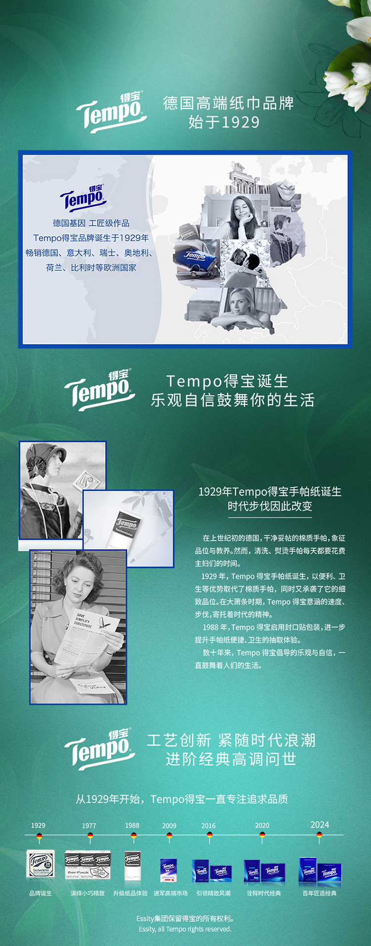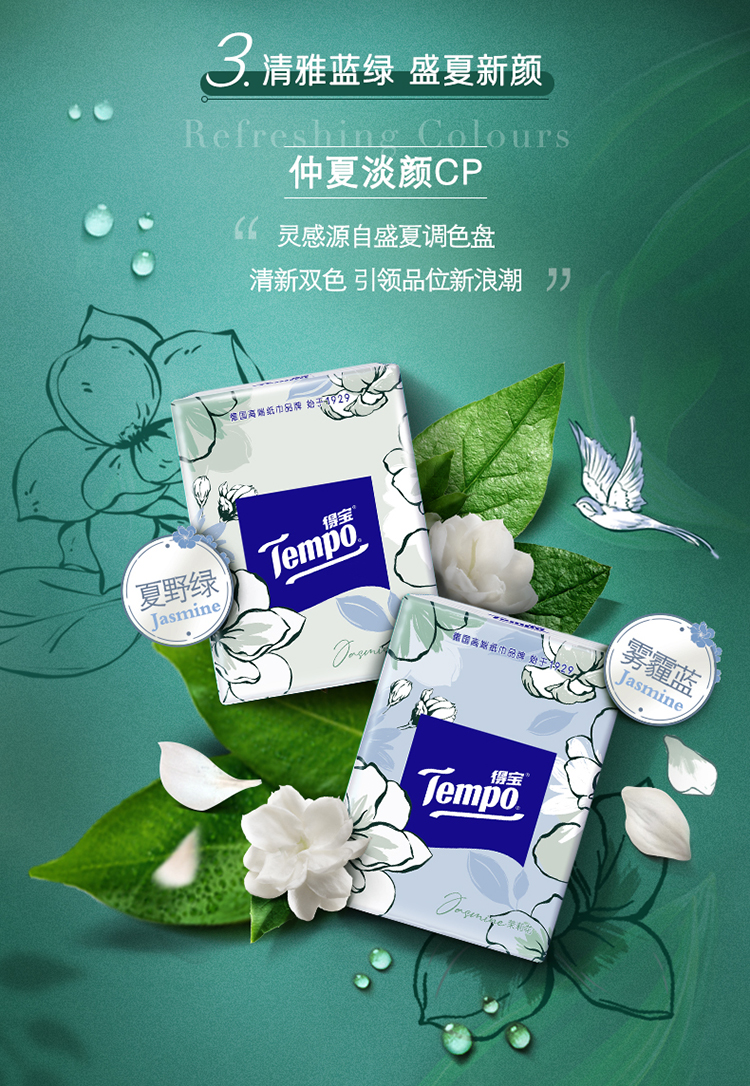 『得宝Tempo』手帕纸茉莉花味4层12包 纸巾小包便携装手帕纸餐巾纸(新旧包装随机发货/旧包装无印花)