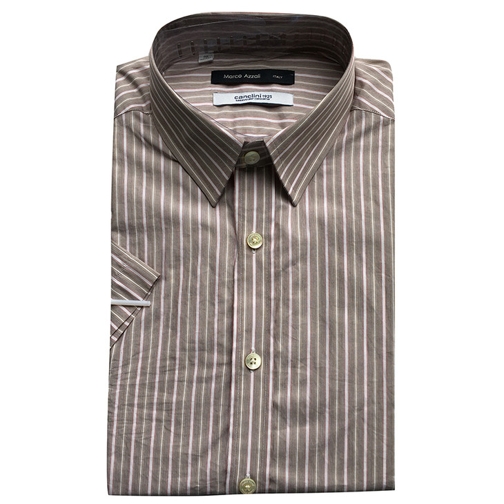 Marco Azzali 棕色竖条纹CANCLINI短袖衬衫 C3252500