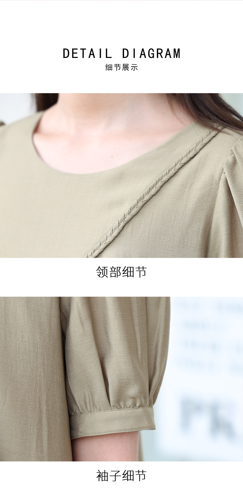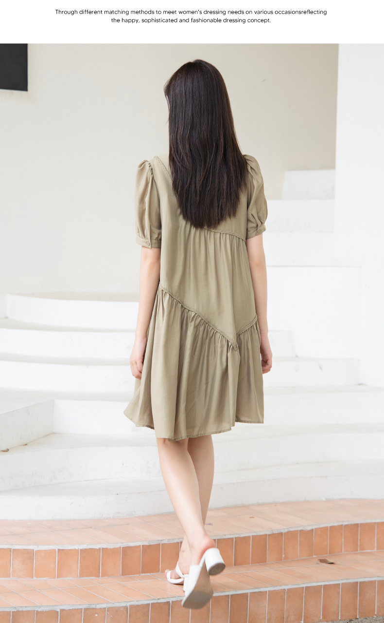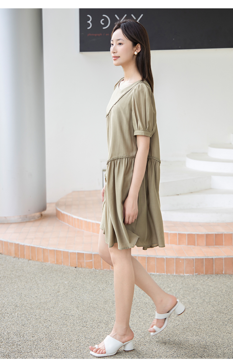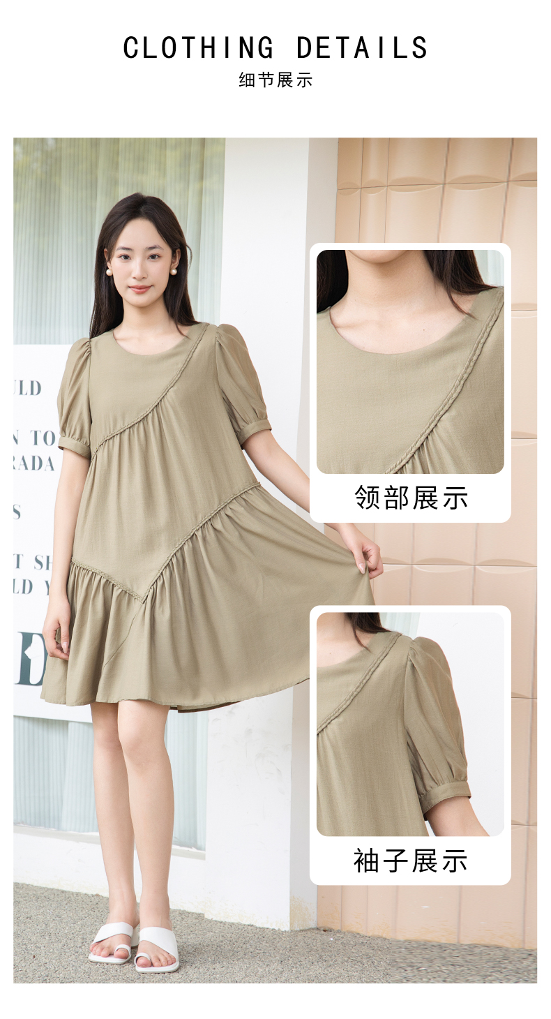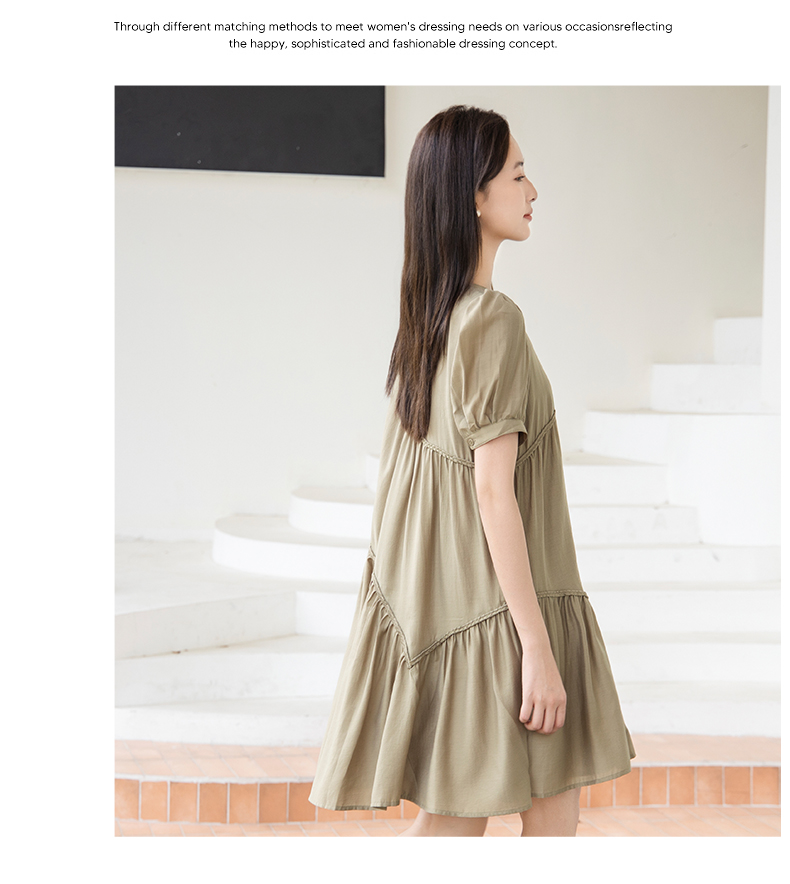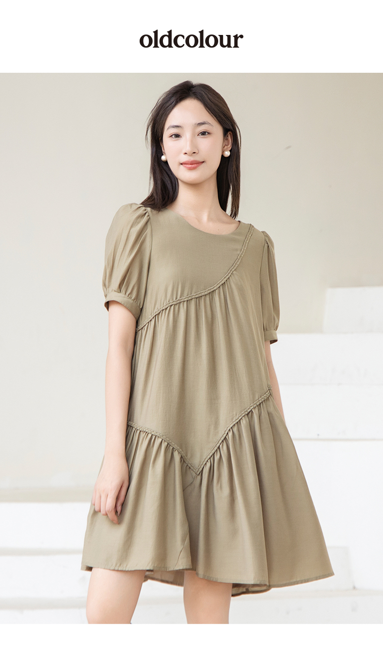 oldcolour夏季新款宽松短袖连衣裙女浅绿色泡泡袖短裙P25101532