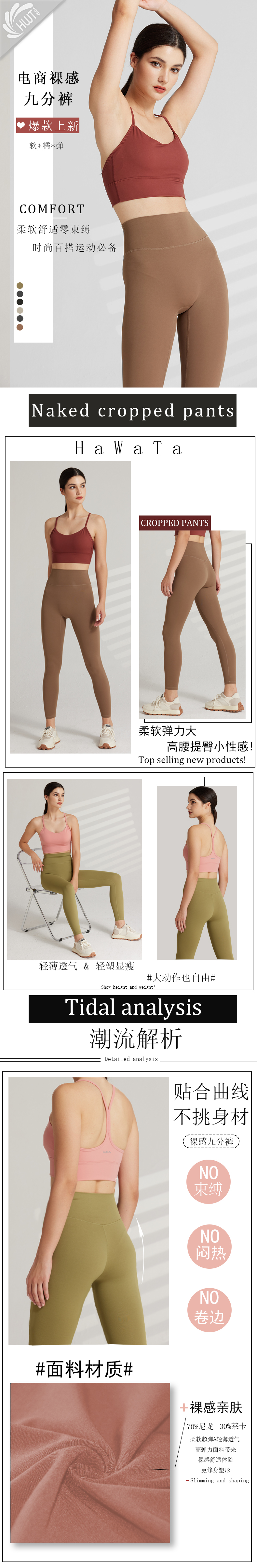 哈瓦塔电商裸感瑜伽裤女子速干跑步提臀紧身裤蜜桃臀健身裤九分裤