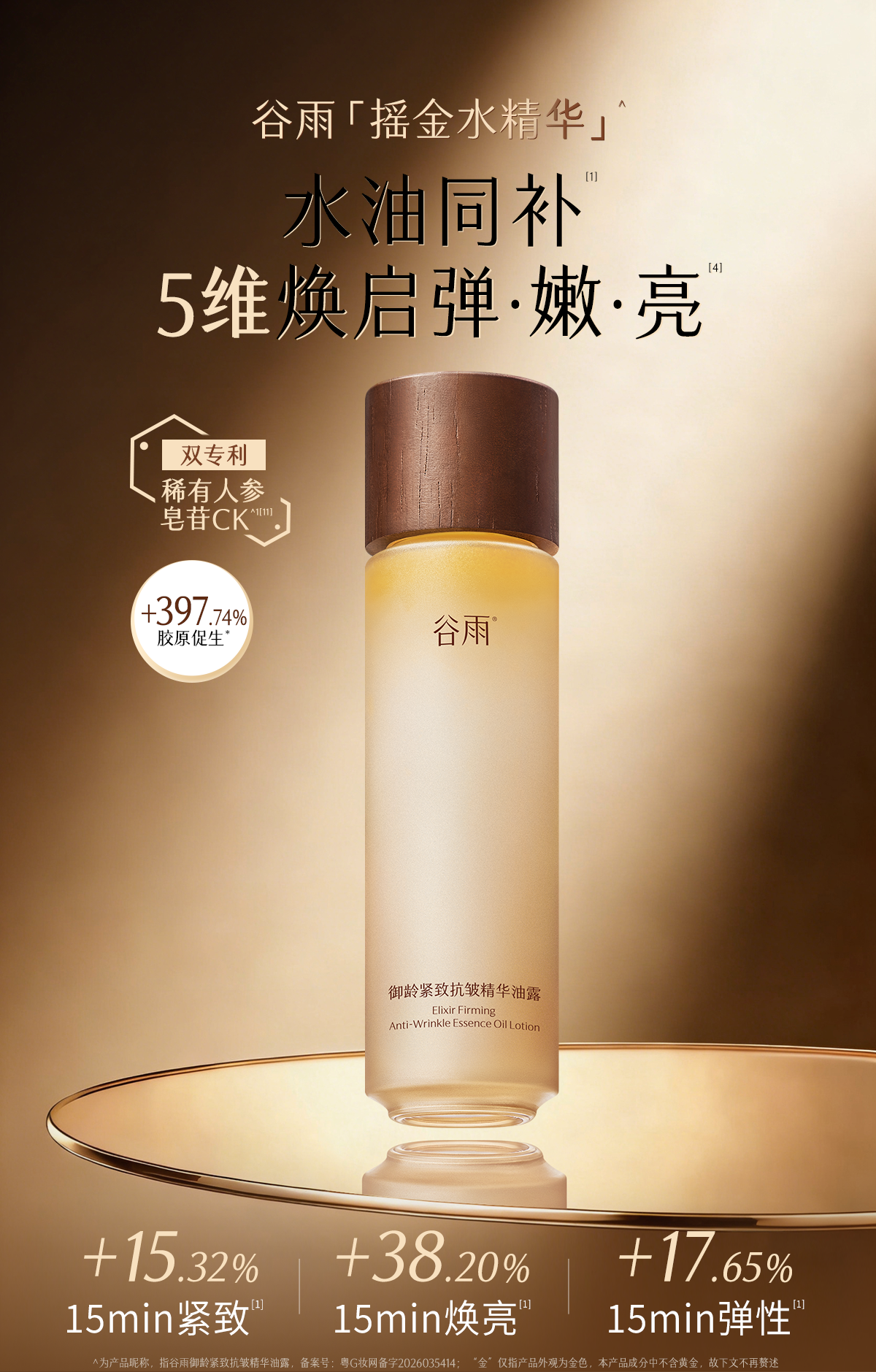 【三八焕新周】【新品上市前500单额外赠300积分】谷雨御龄紧致抗皱精华油露150ml 摇金水精华水油同补 5维焕启弹·嫩·亮