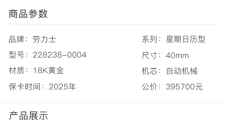 【预售】劳力士228238-0004 商品图1