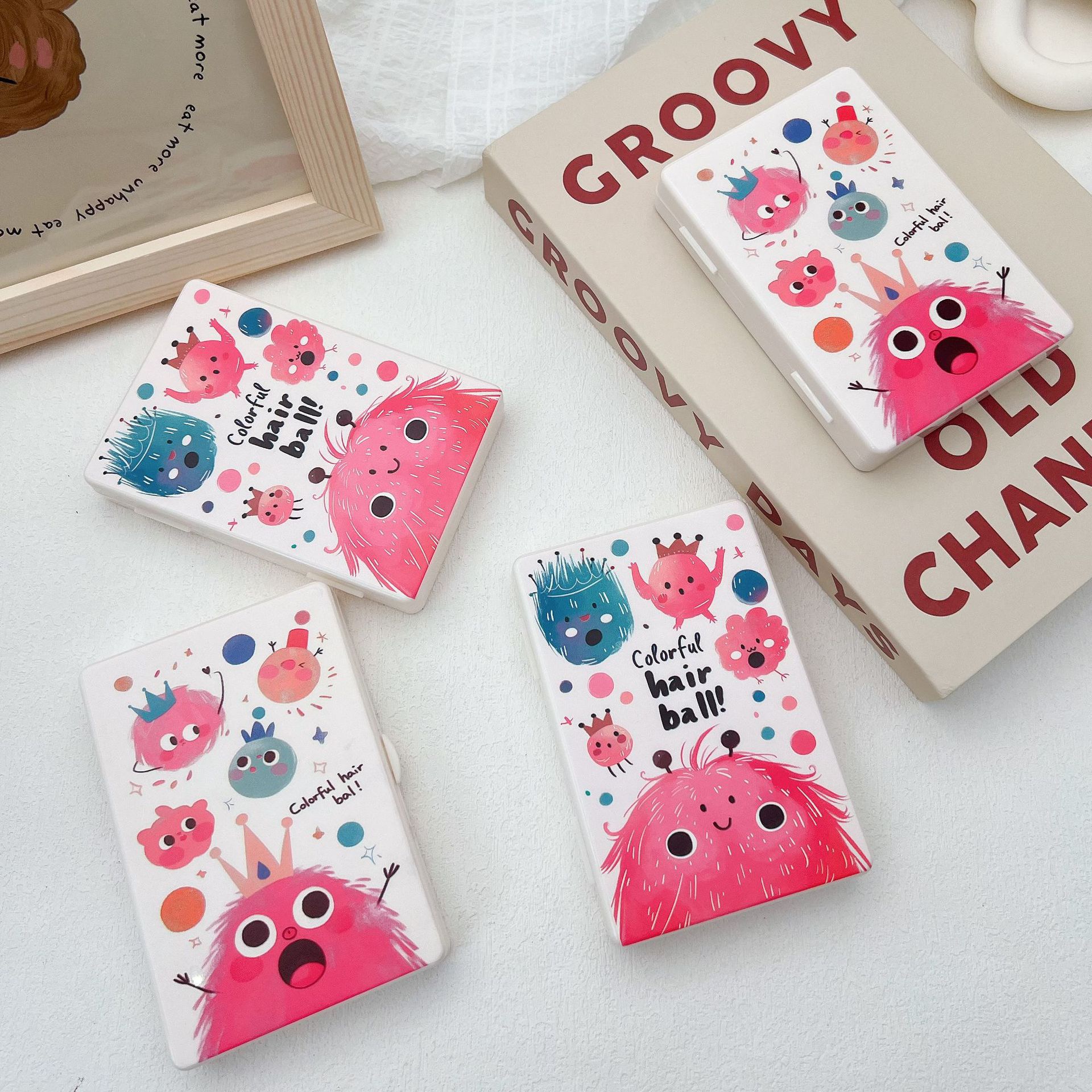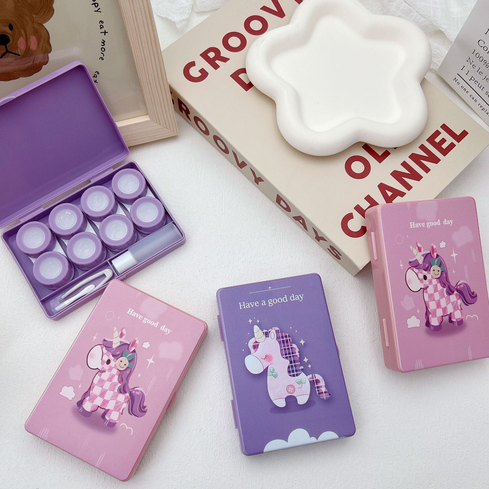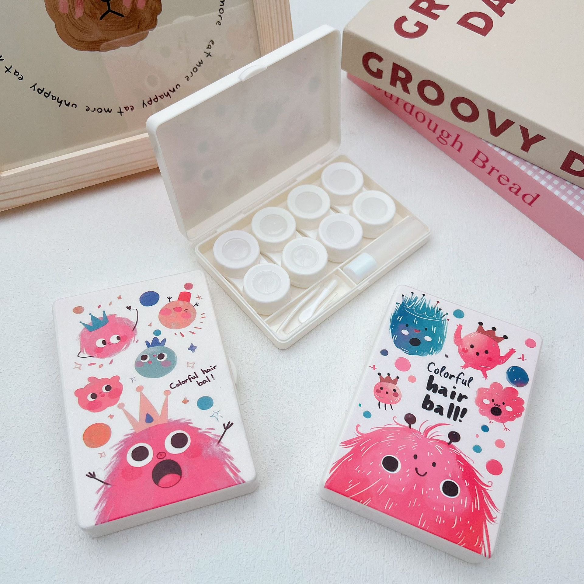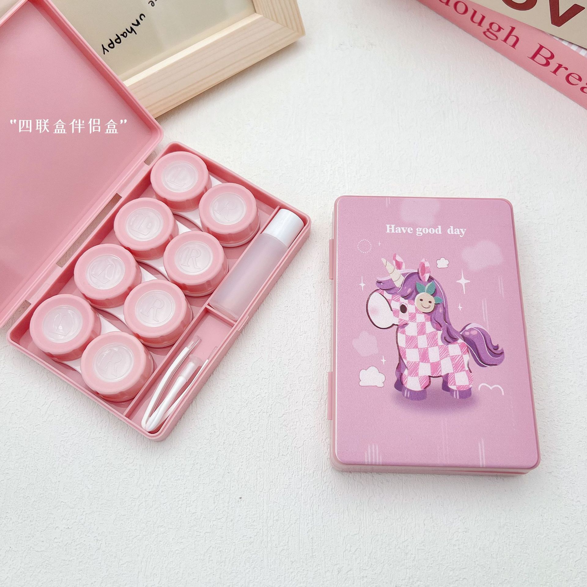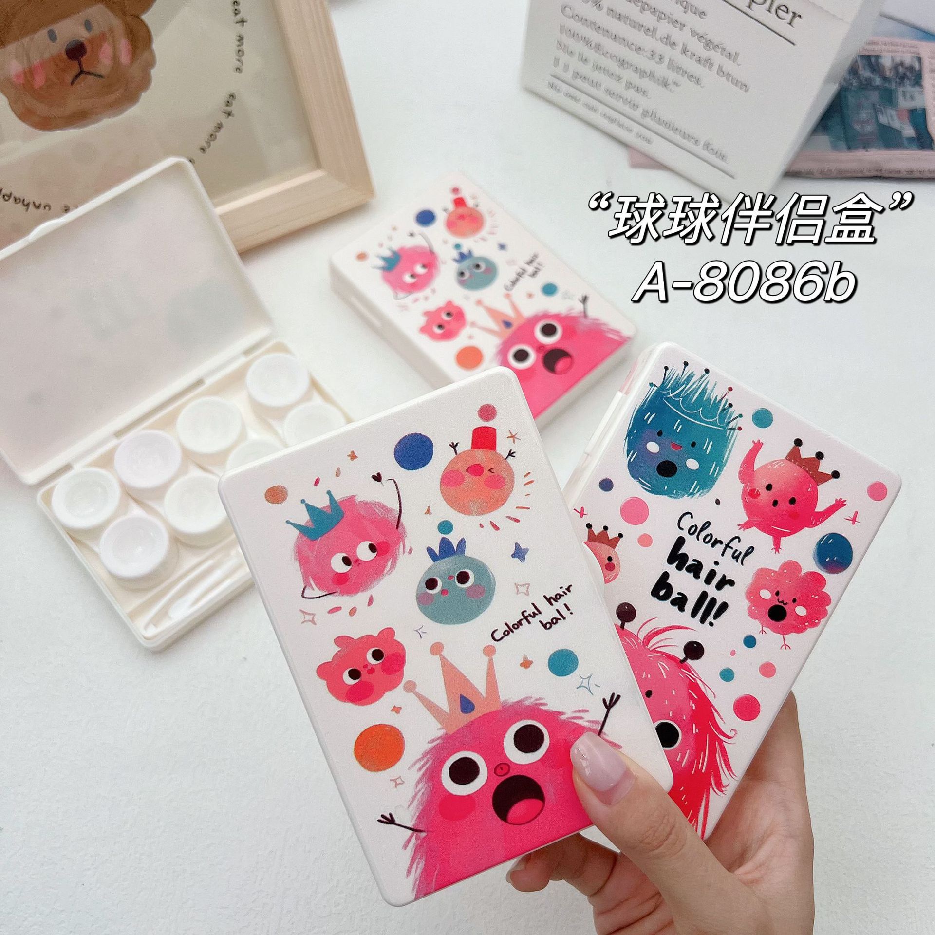 新款可爱卡通美瞳盒伴侣盒隐形双联眼镜盒8086四副装【图案混发】