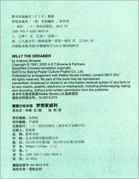 蒲蒲兰 梦想家威利 安东尼·布朗 3-4-5-6岁儿童读物 正版