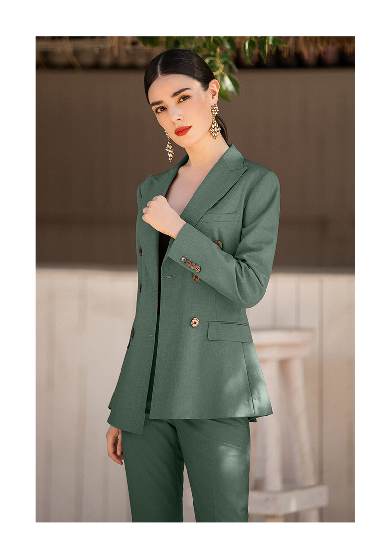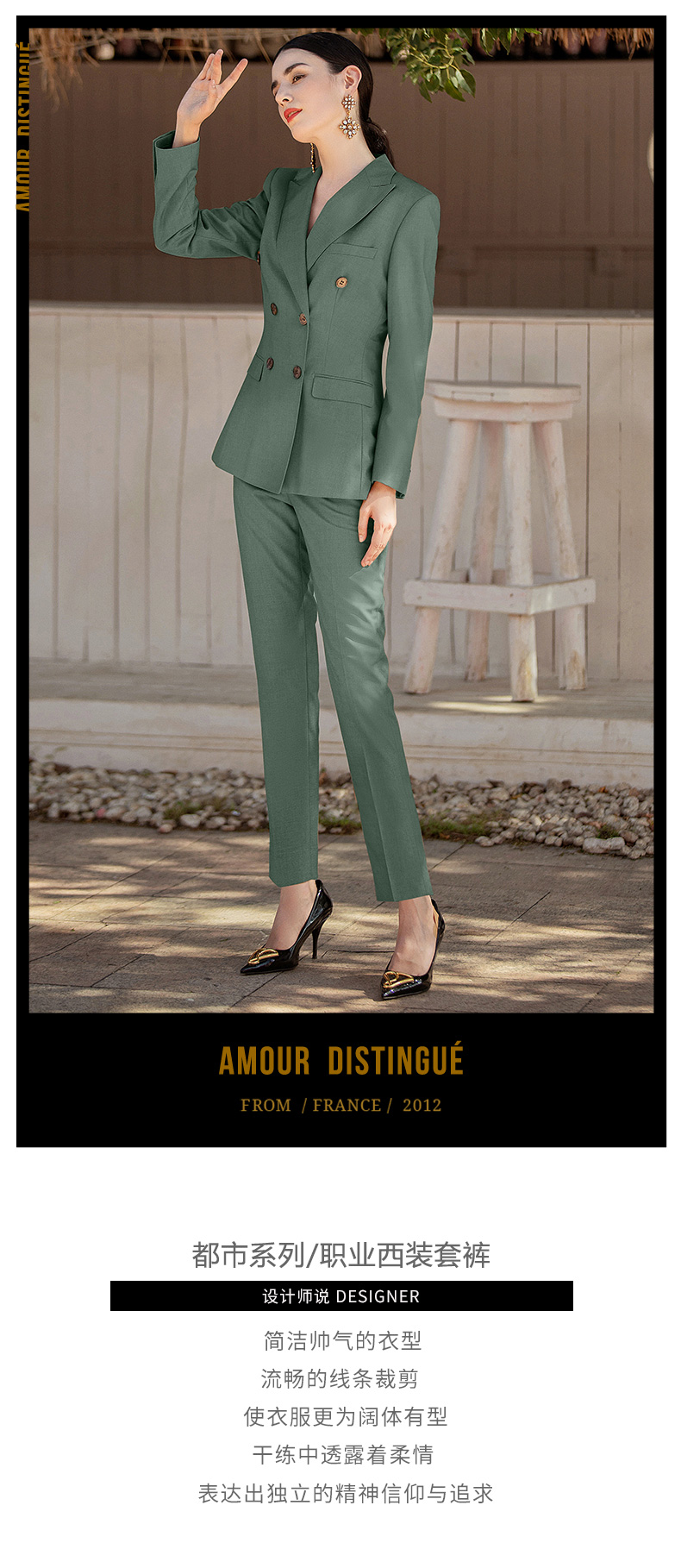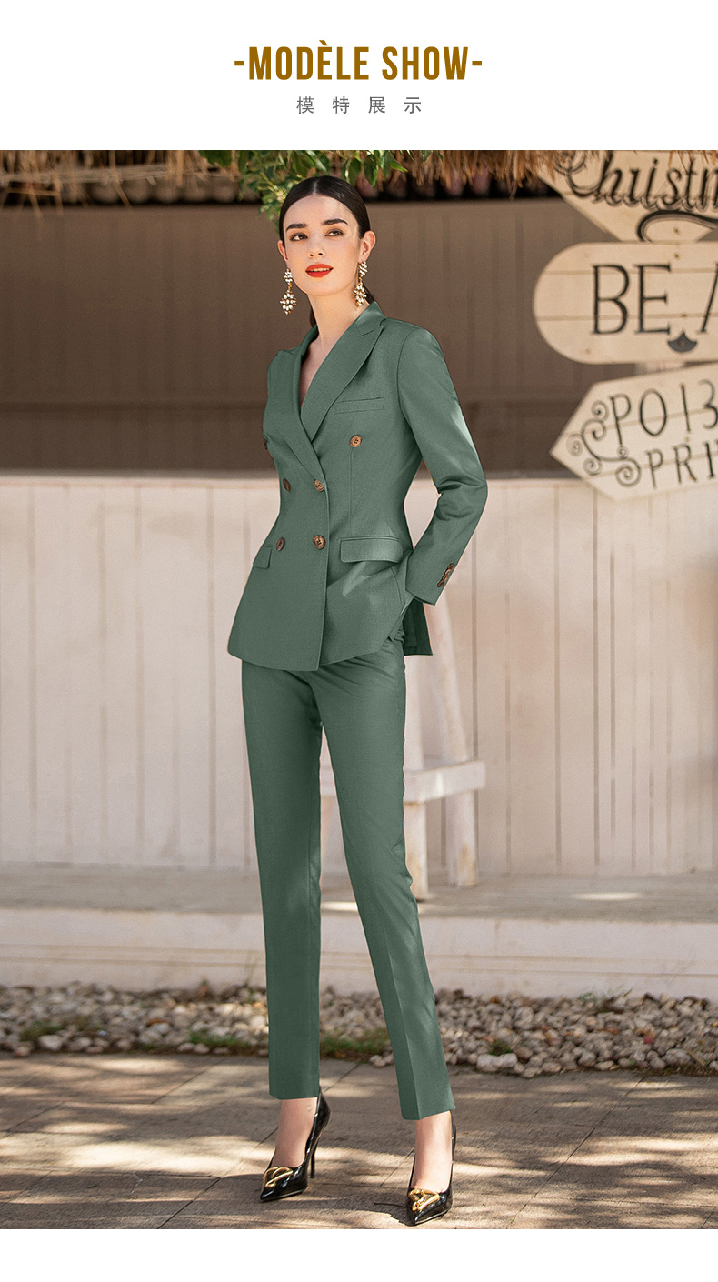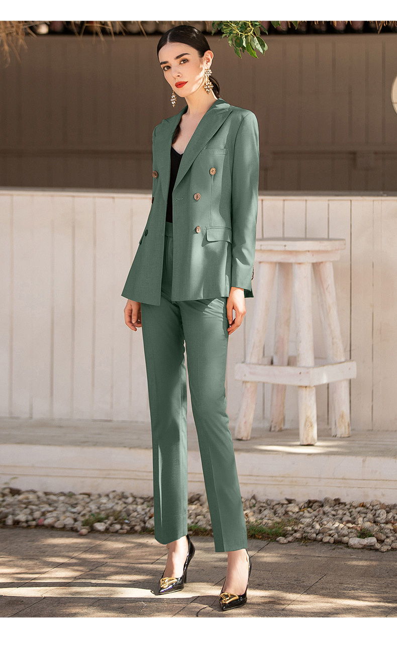 IWY/绿色双排扣显瘦西装套装女2022新款上班面试工作服商务工作服正装CP1522-