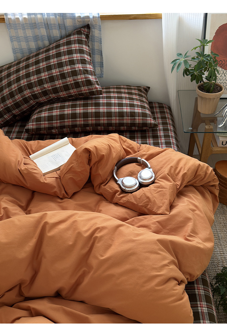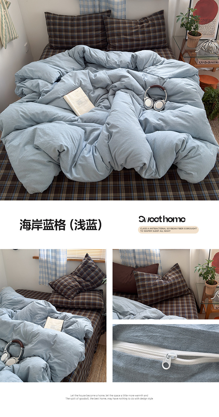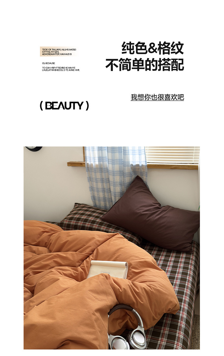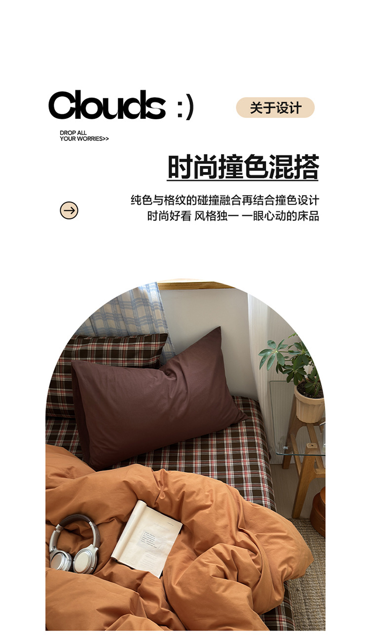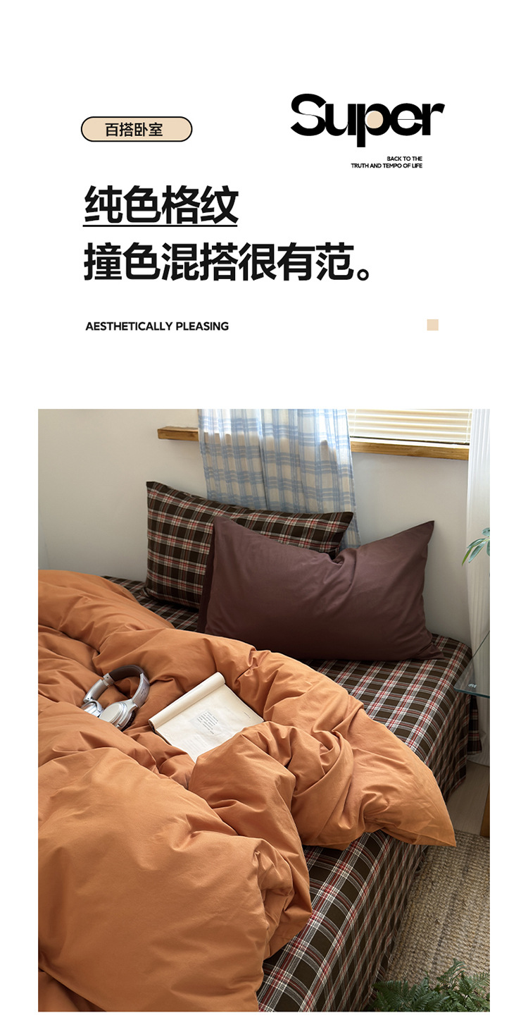100%棉四件套全棉混搭纯色格子床品套件