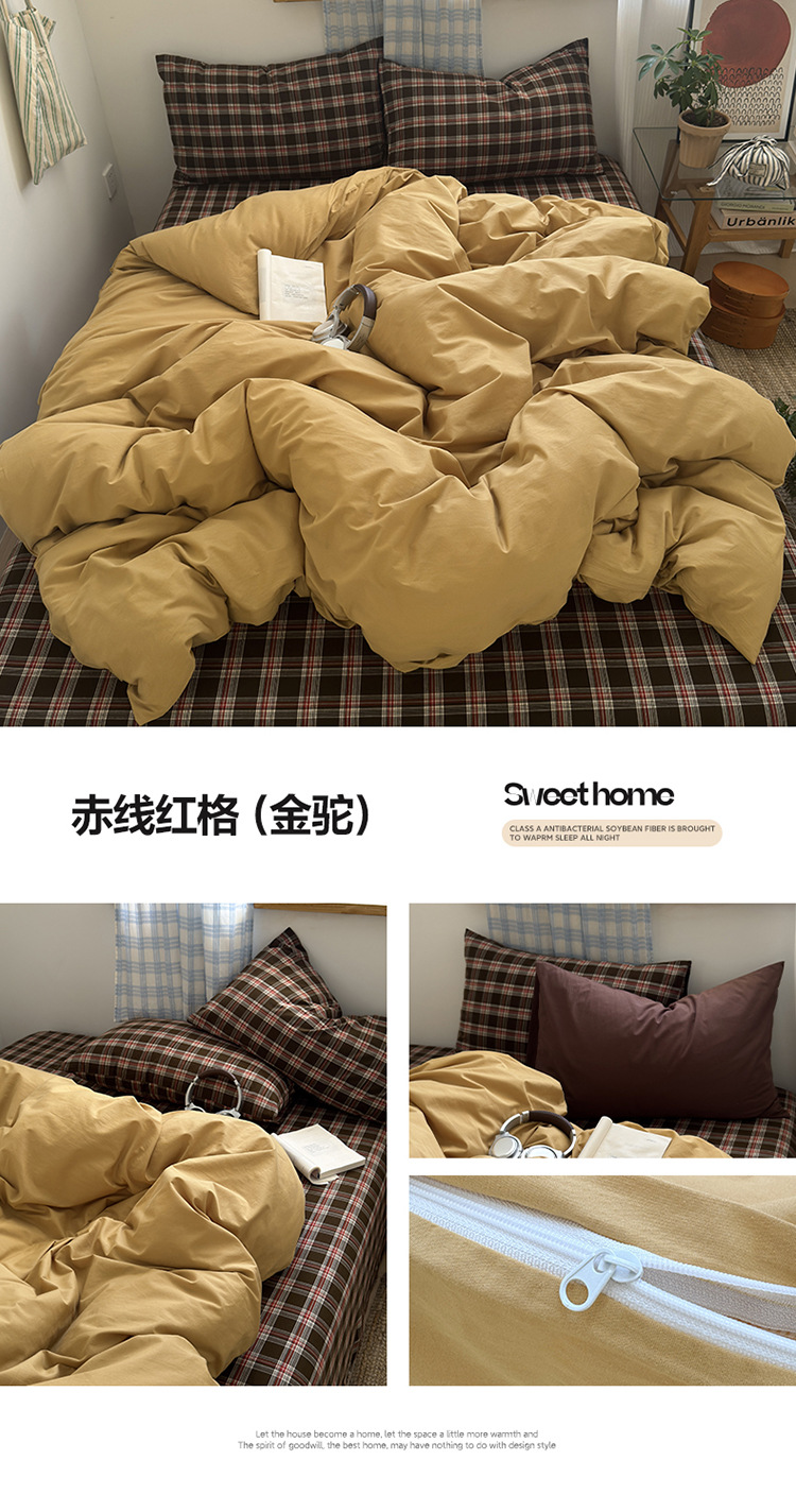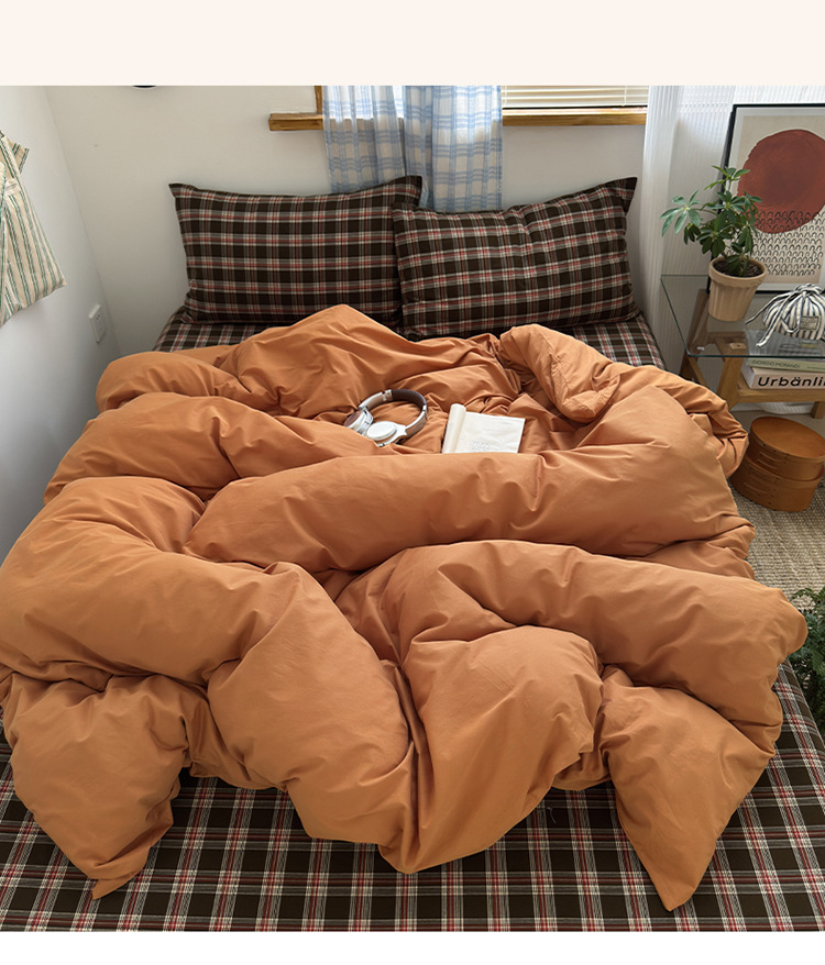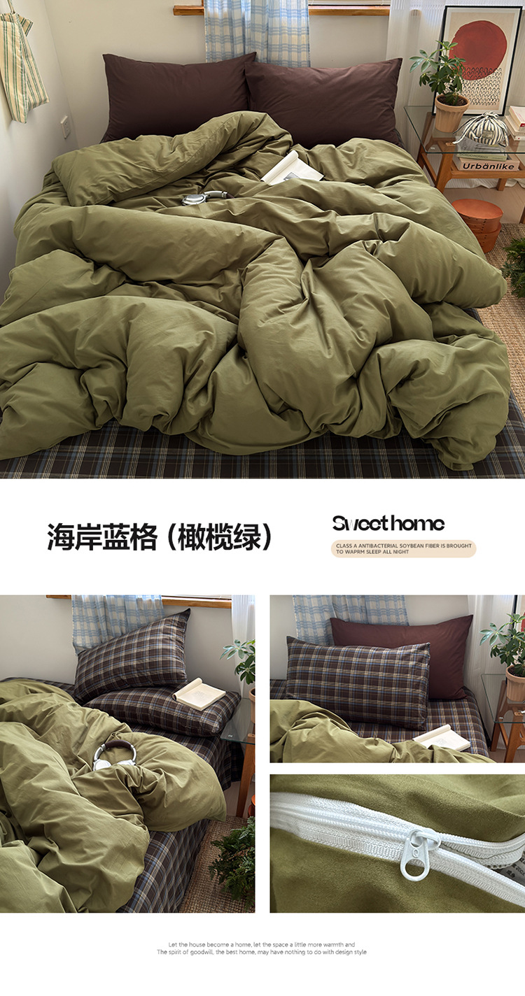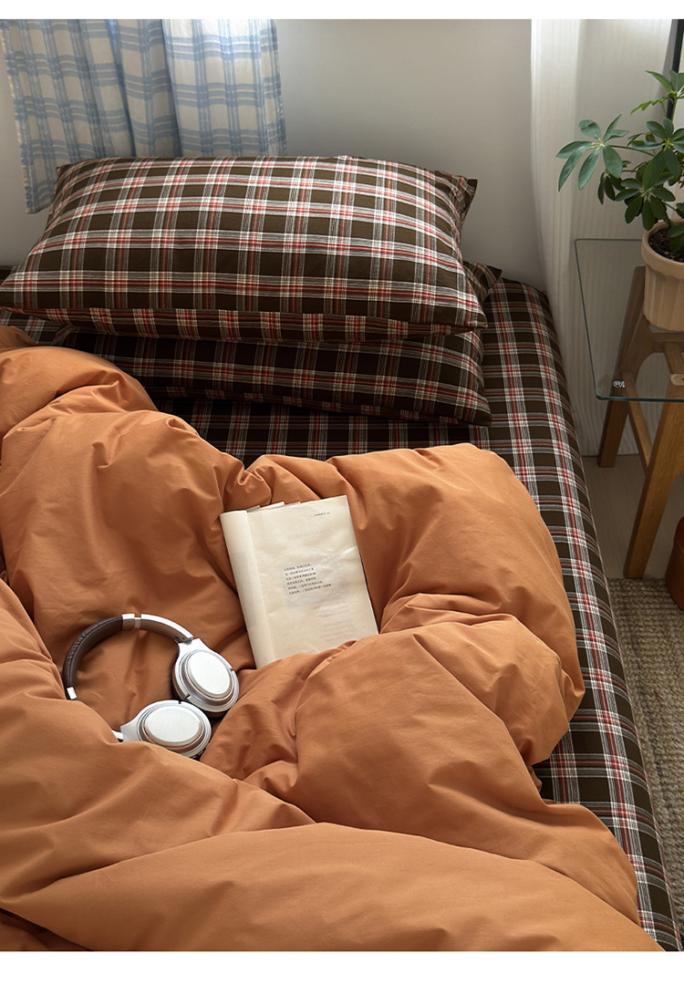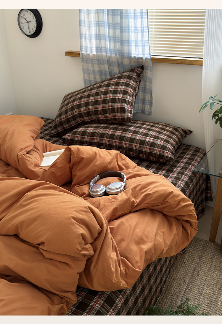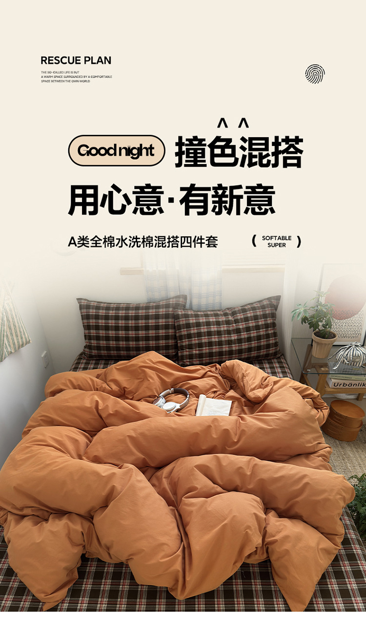 100%棉四件套全棉混搭纯色格子床品套件