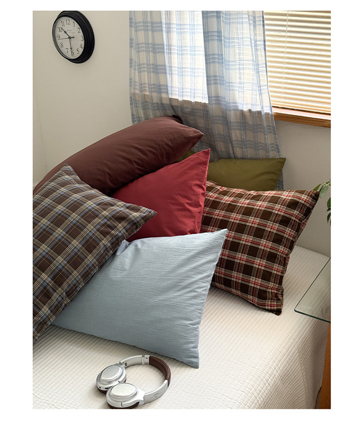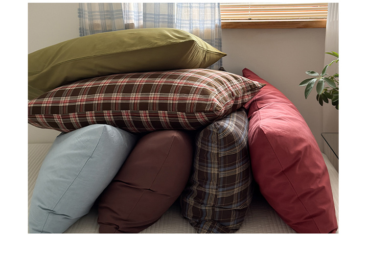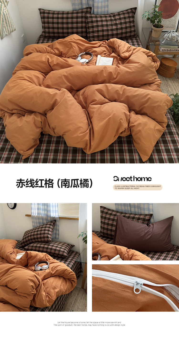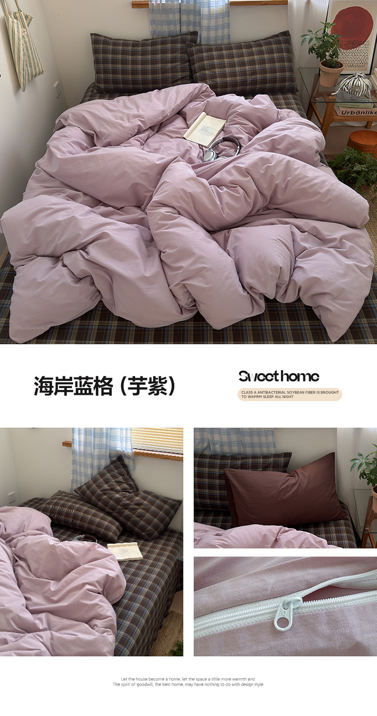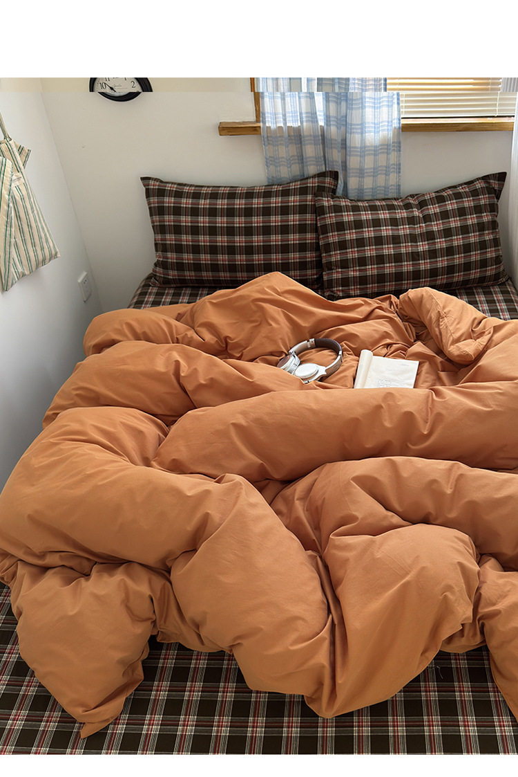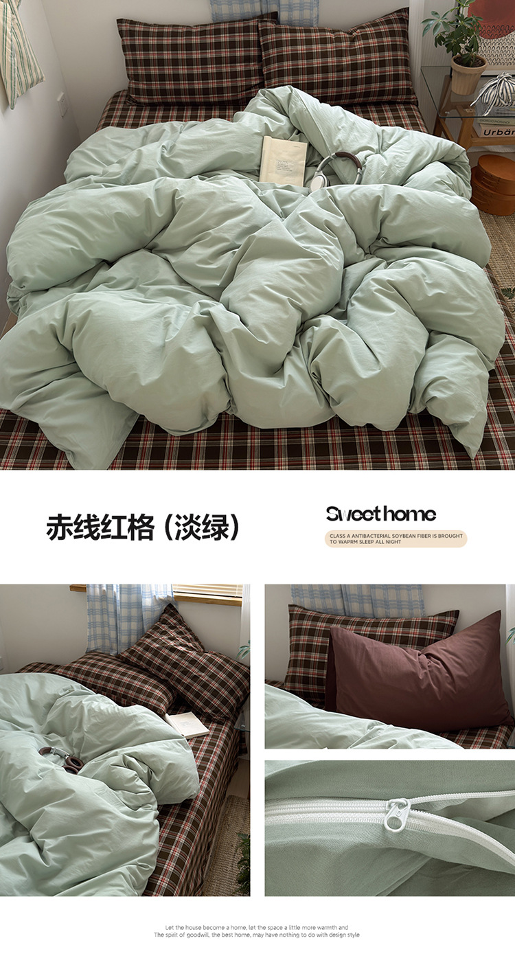 100%棉四件套全棉混搭纯色格子床品套件