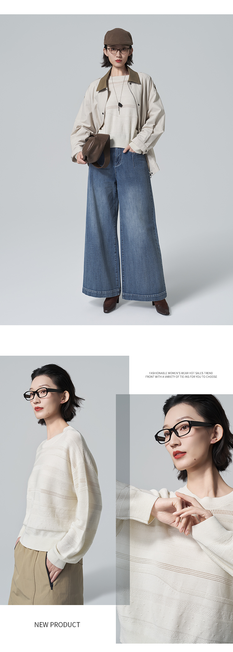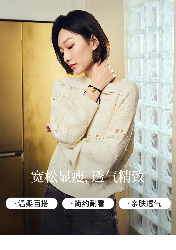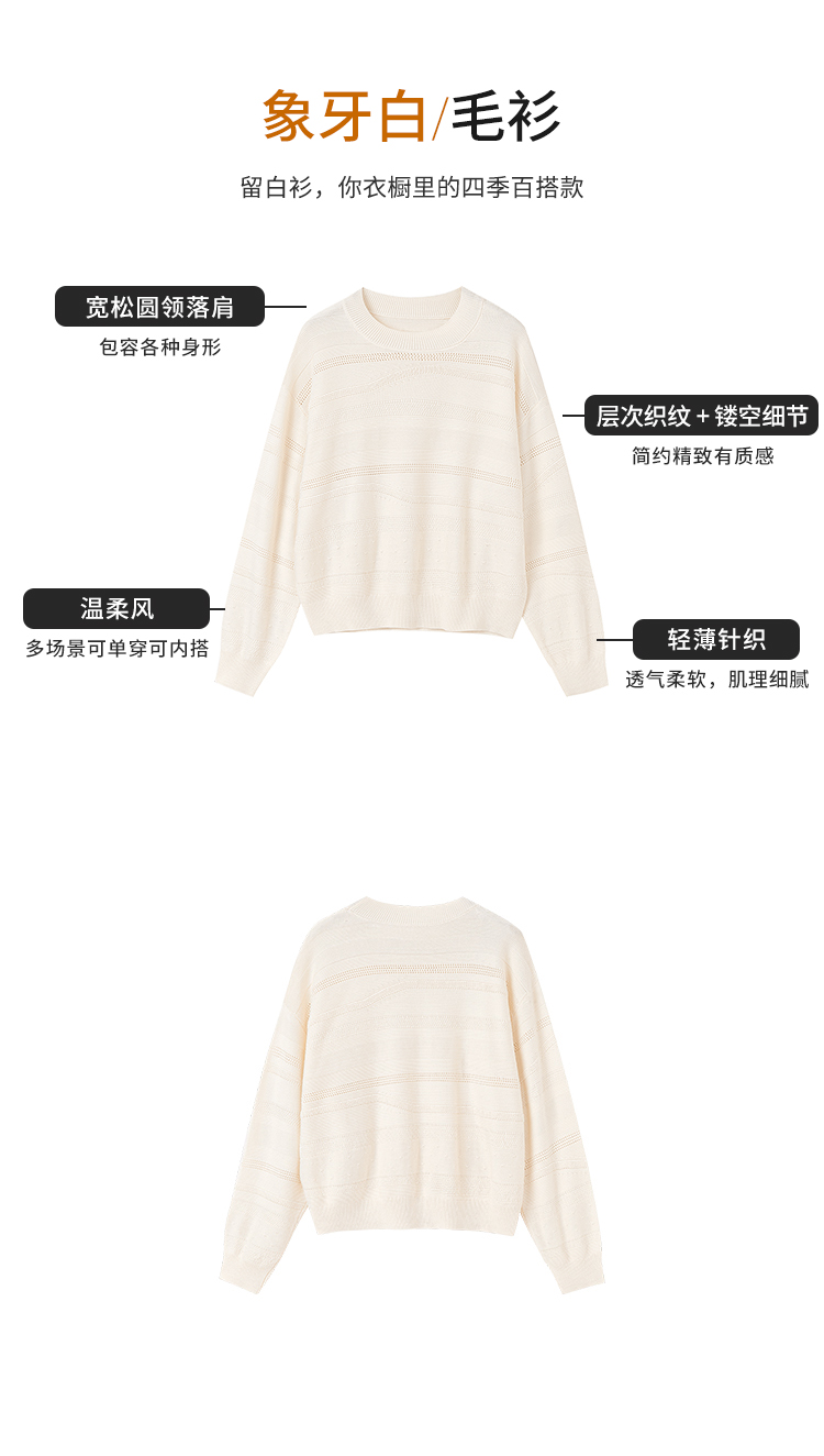 【商场同款】CNK6363 “ 留白毛衫 ”象牙白色温润雅致 不规则镂空条纹充满艺术性 宽松毛衫