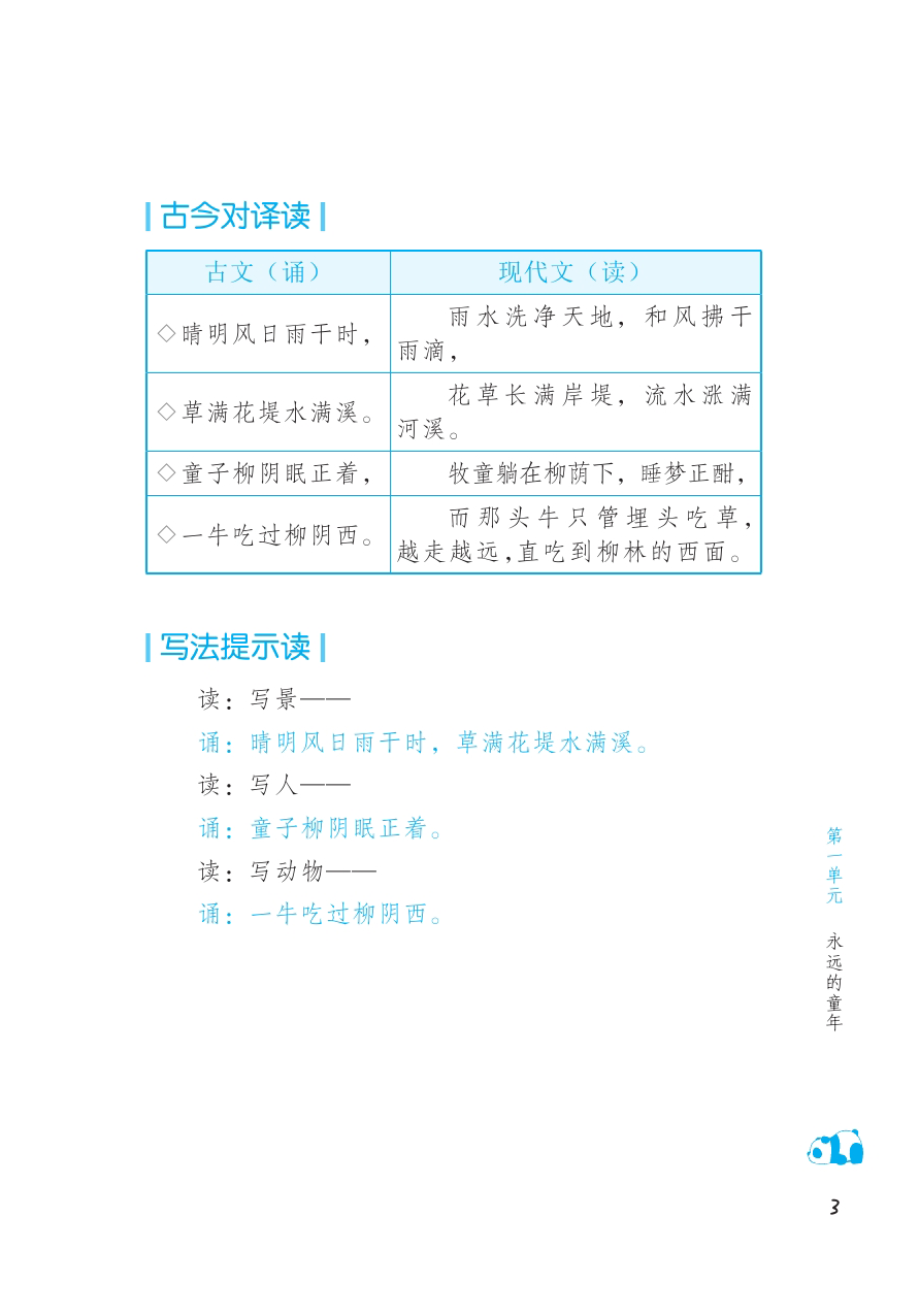 3.其他如对联、成语、谚语、小古文等,每册有25篇左右,约占30%。这些内容短小易于背诵,同时又蕴含了丰富的中国文化与智慧。