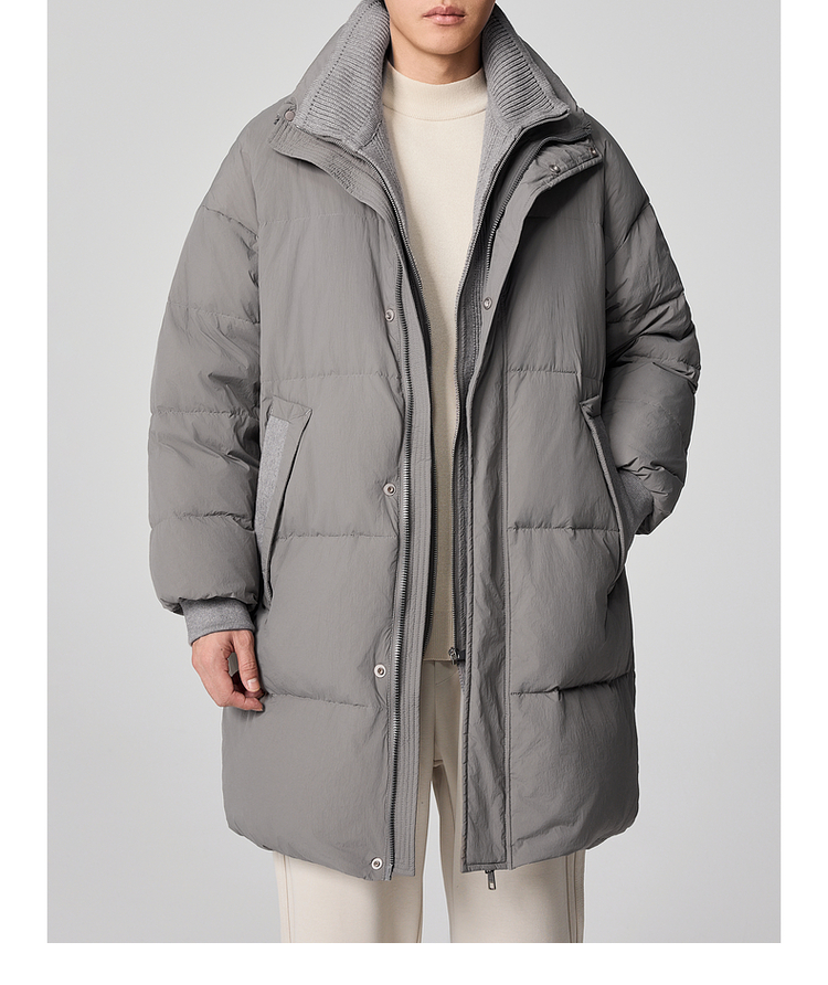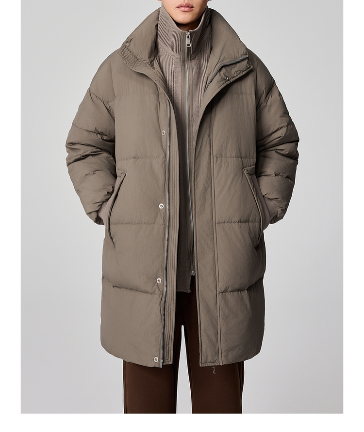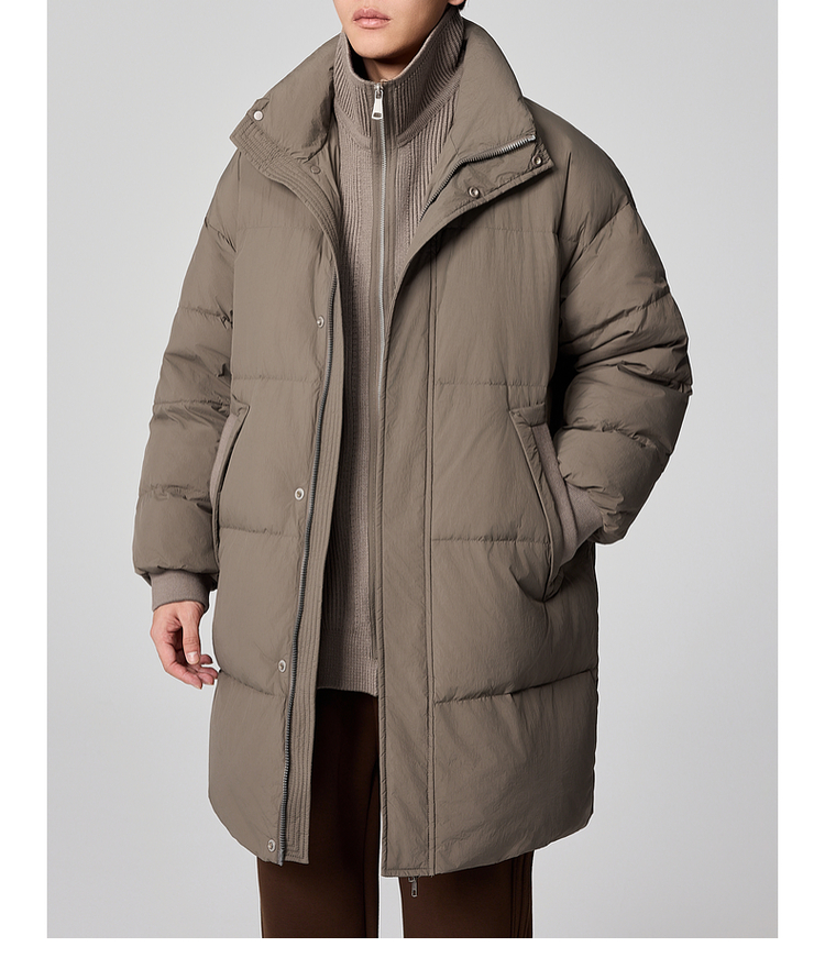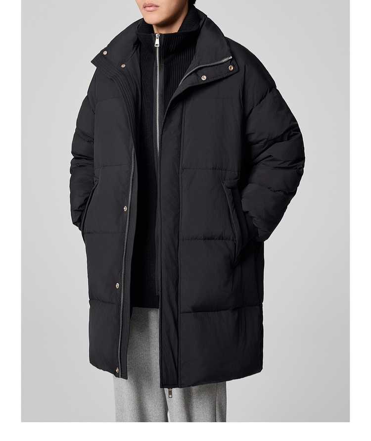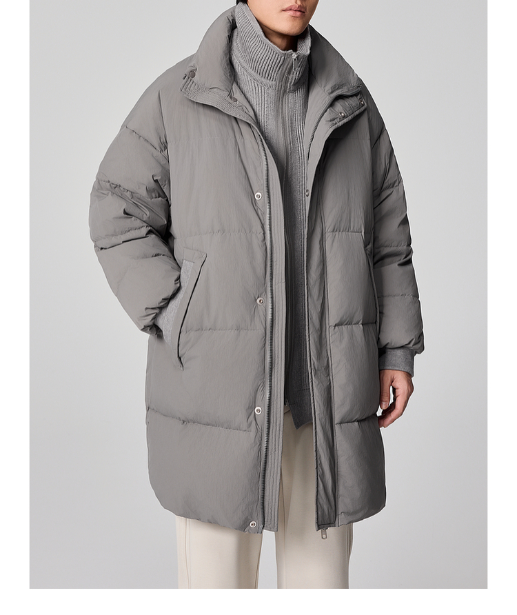 墨麦客男装毛织立领中长款男士羽绒服2024冬季新款鸭绒保暖外套。